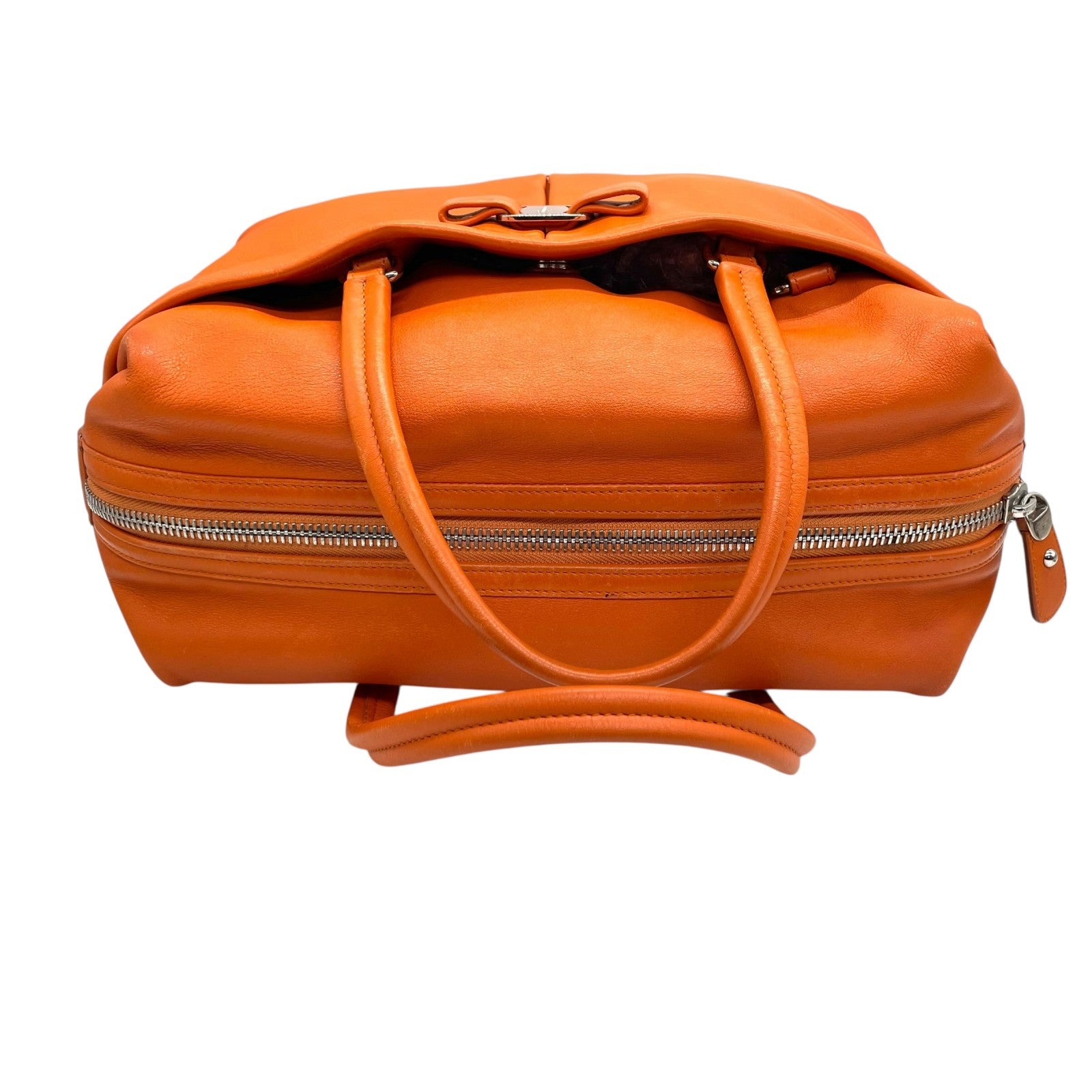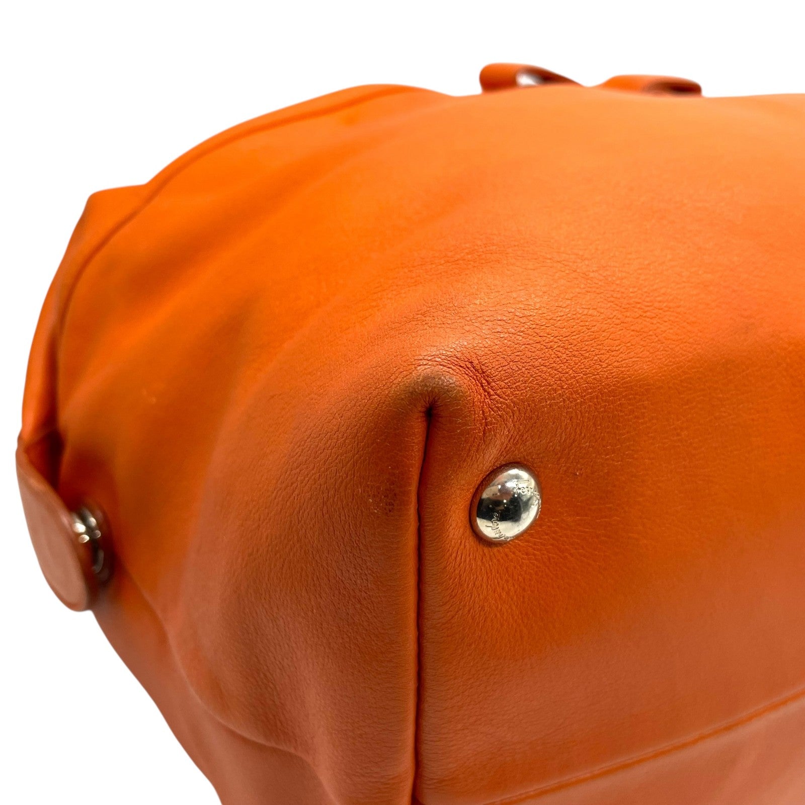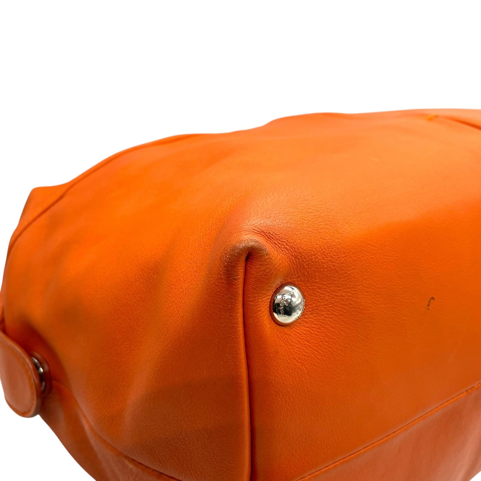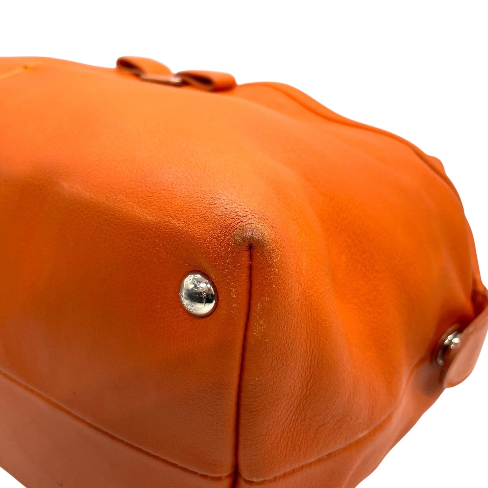 美品 Salvatore Ferragamo フェラガモ ヴァラリボン ハンドバッグ オレンジ レザー シルバー金具 レディース ヴィンテージ A