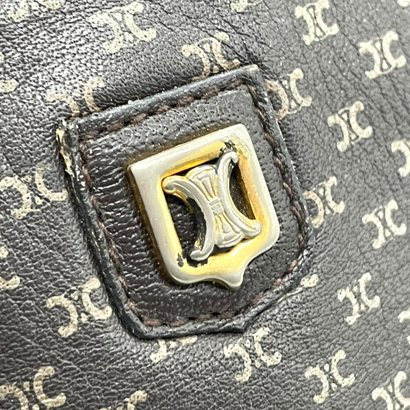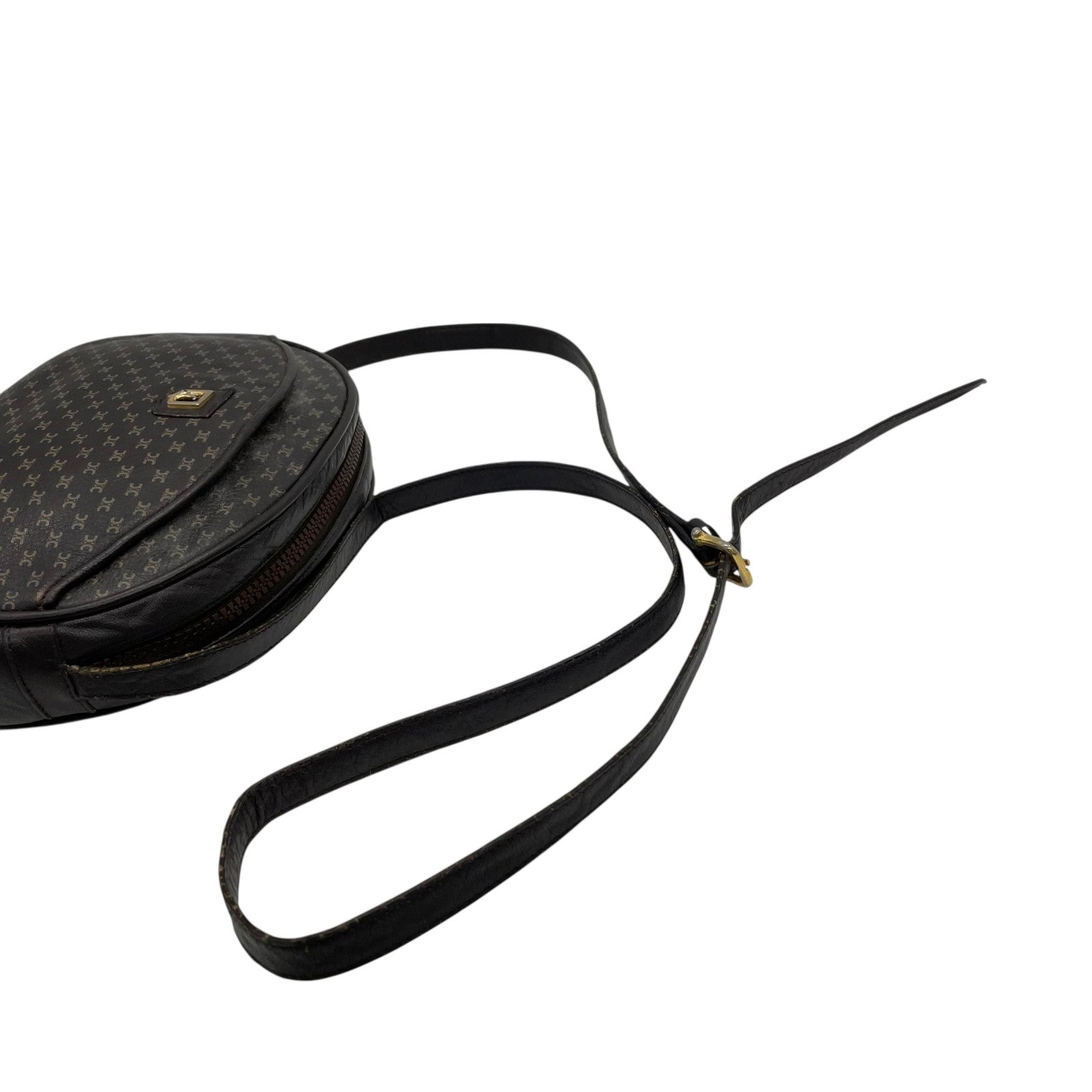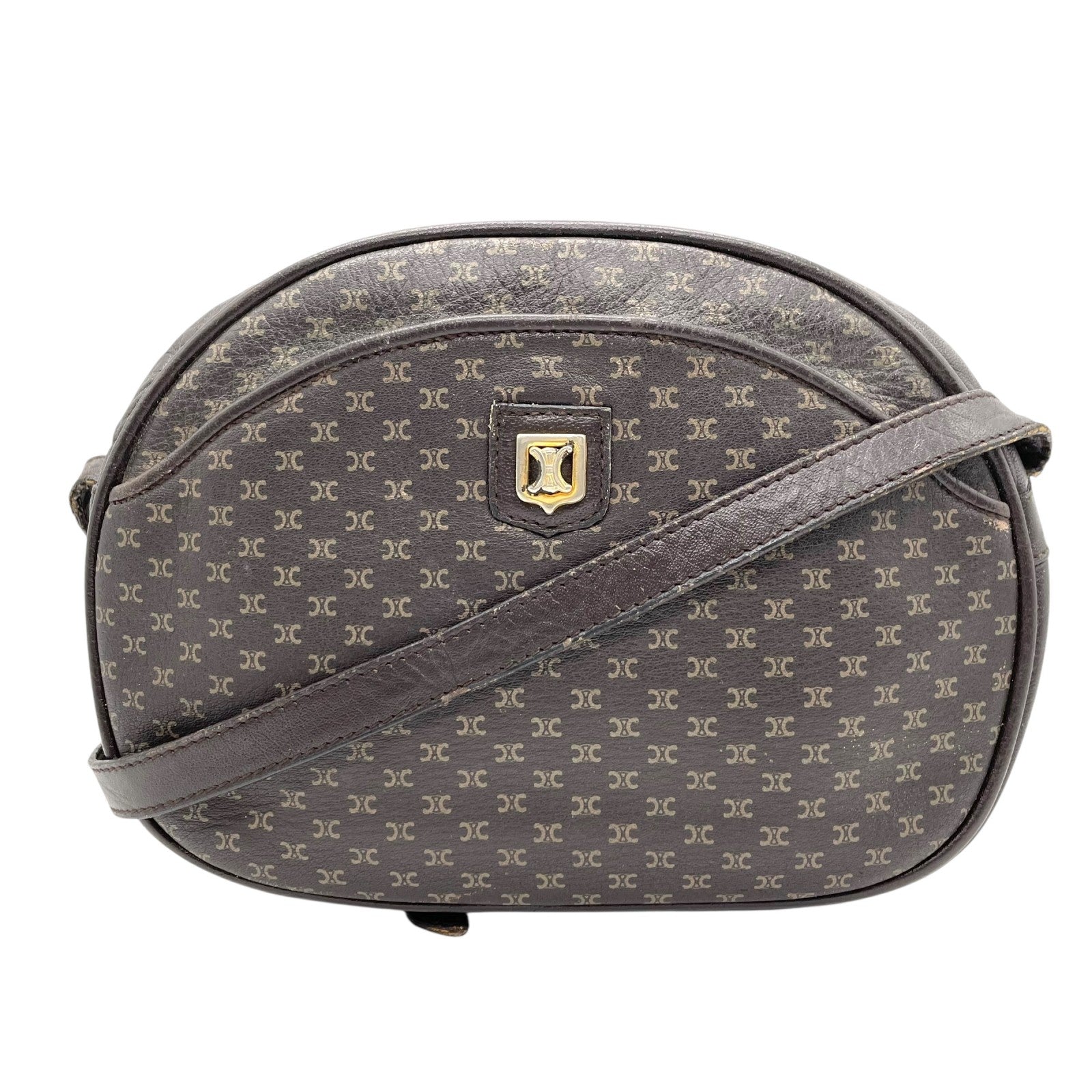 CELINE オールドセリーヌ マカダム柄 トリオンフ ショルダーバッグ 茶 ブラウン レザー ゴールド金具 斜め掛け可 ミニバッグ ポシェット レディース ヴィンテージ B1