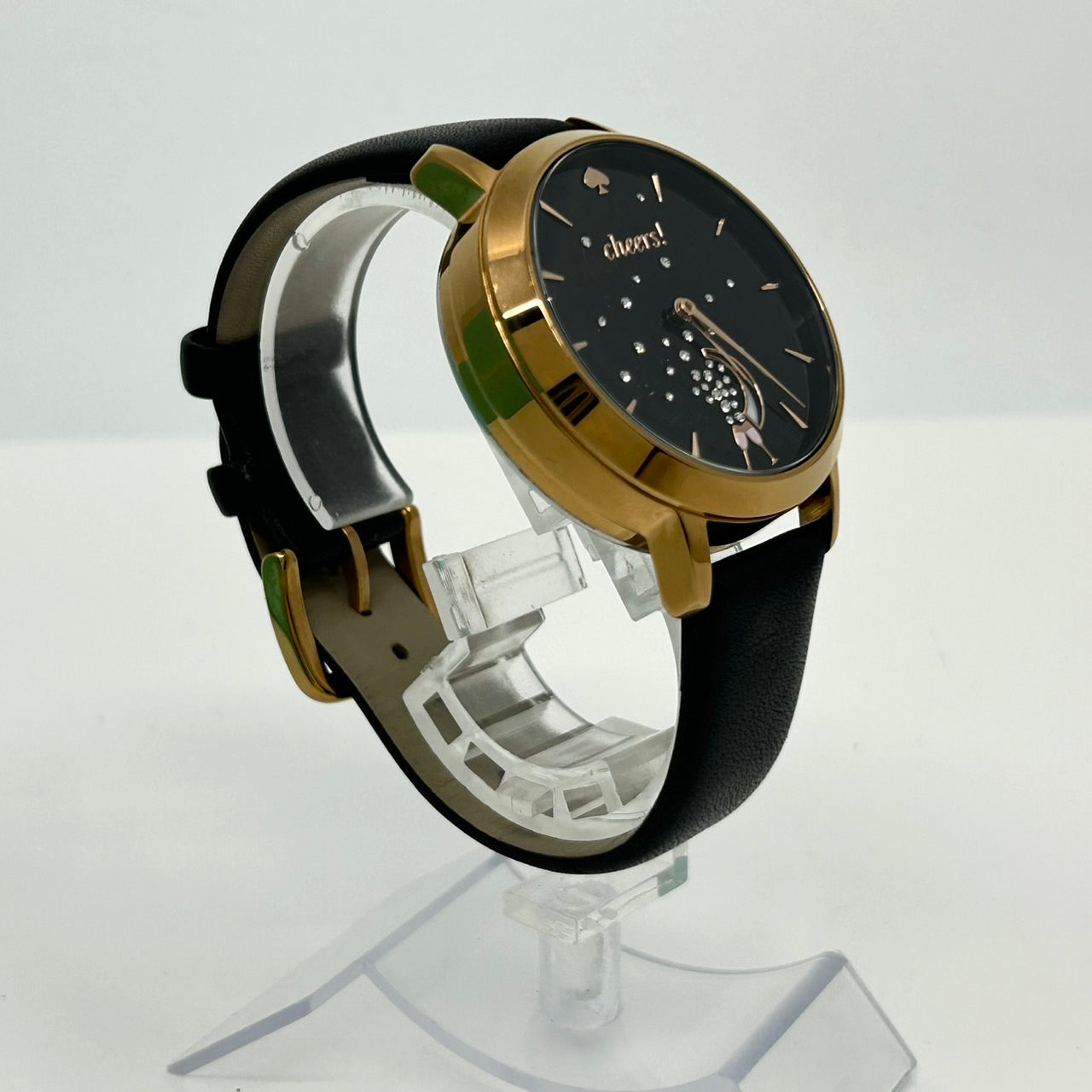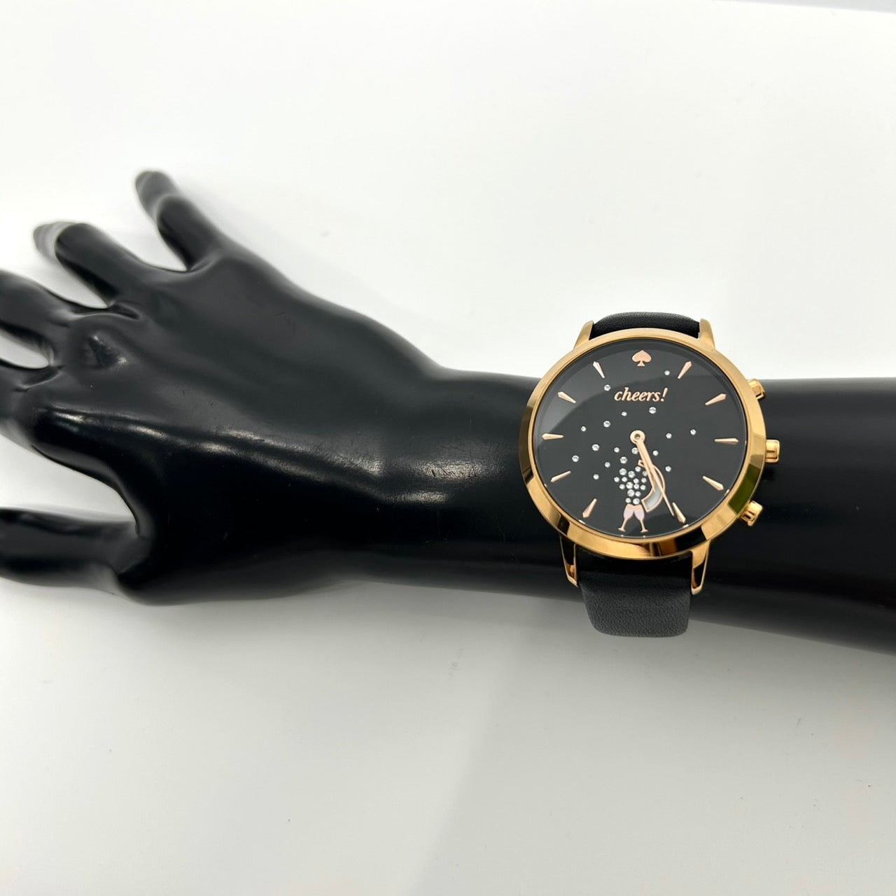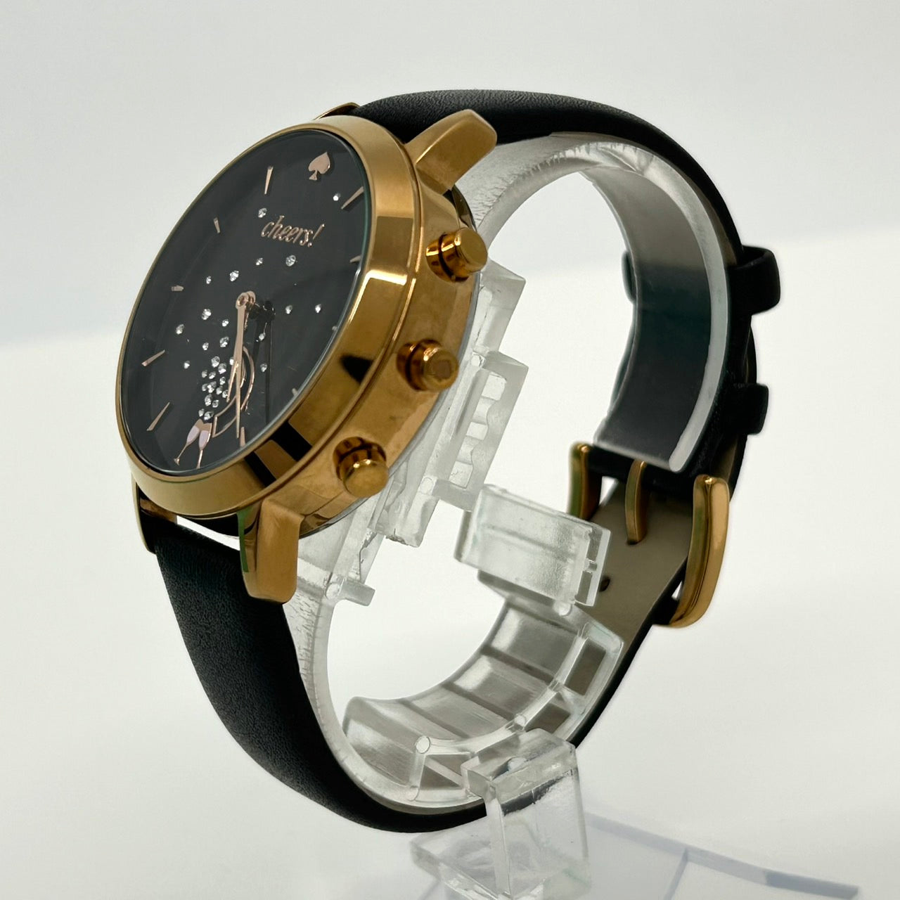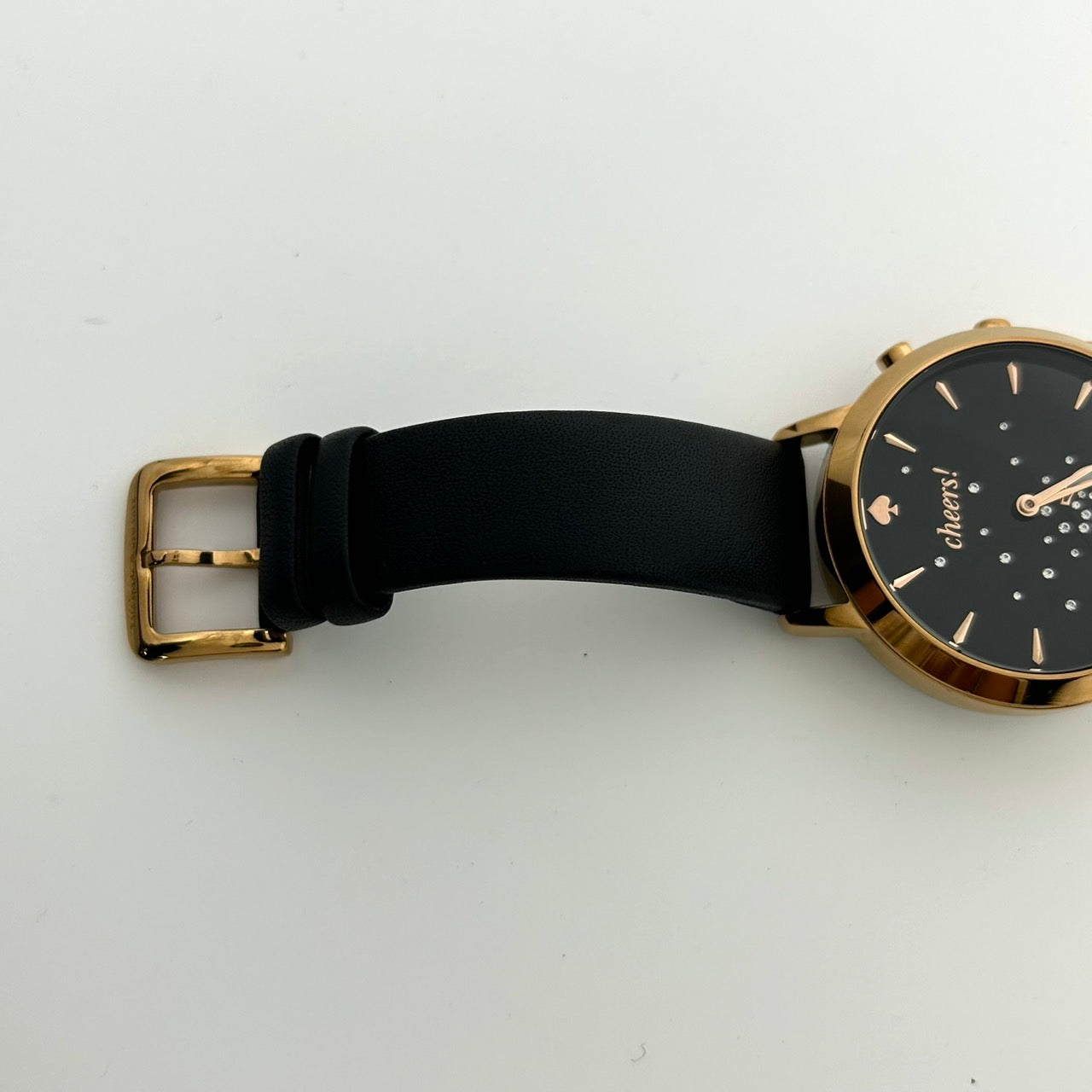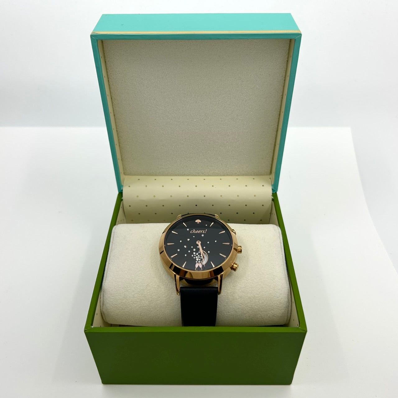 【電池交換済/稼働品/美品/箱付】 Kate Spade ケイトスペード スマートウォッチ KST23100 レディース 腕時計 ハイブリッド アナログ cheers! シャンパン ブラック文字盤 ゴールド ブラックレザーベルト エレガント フェミニン G