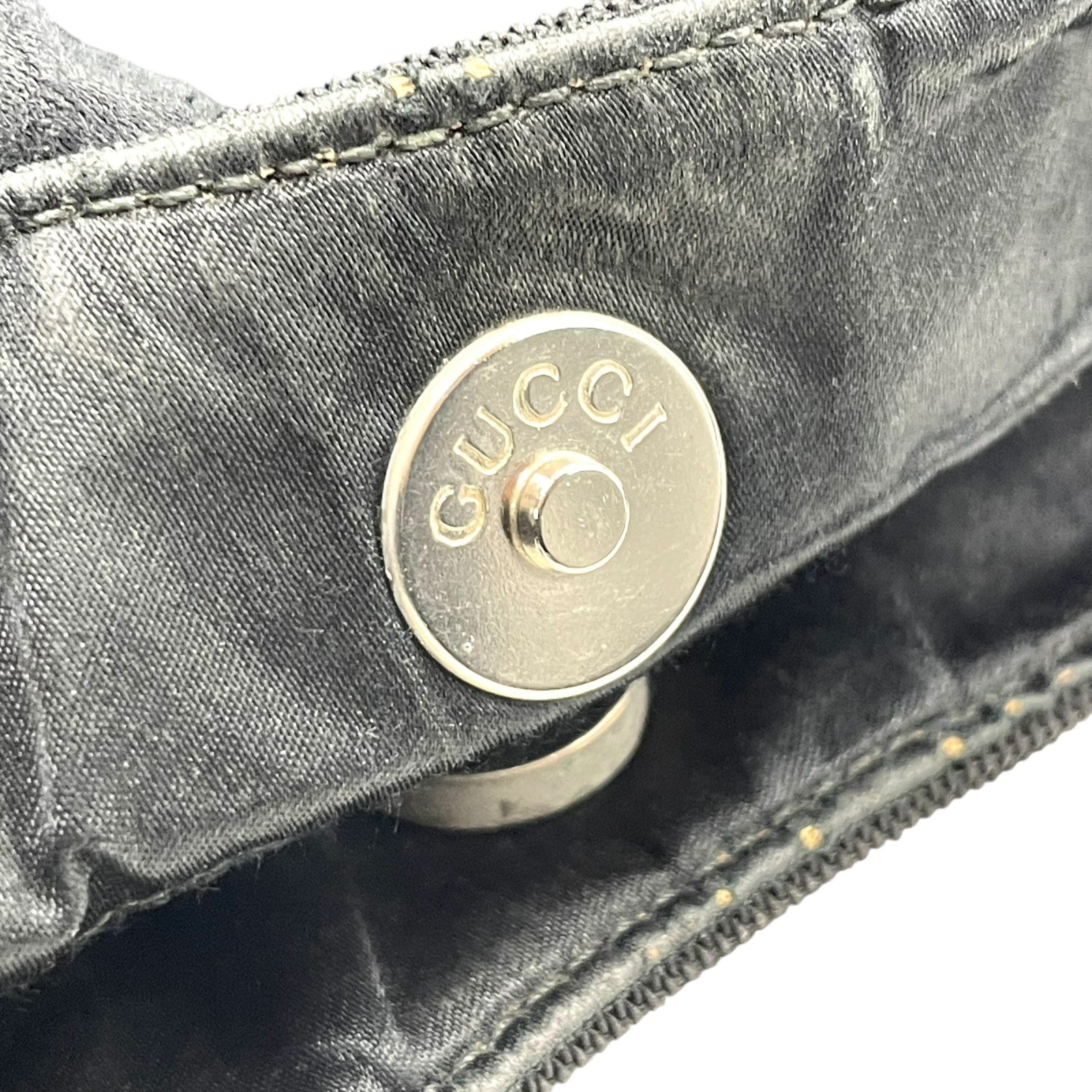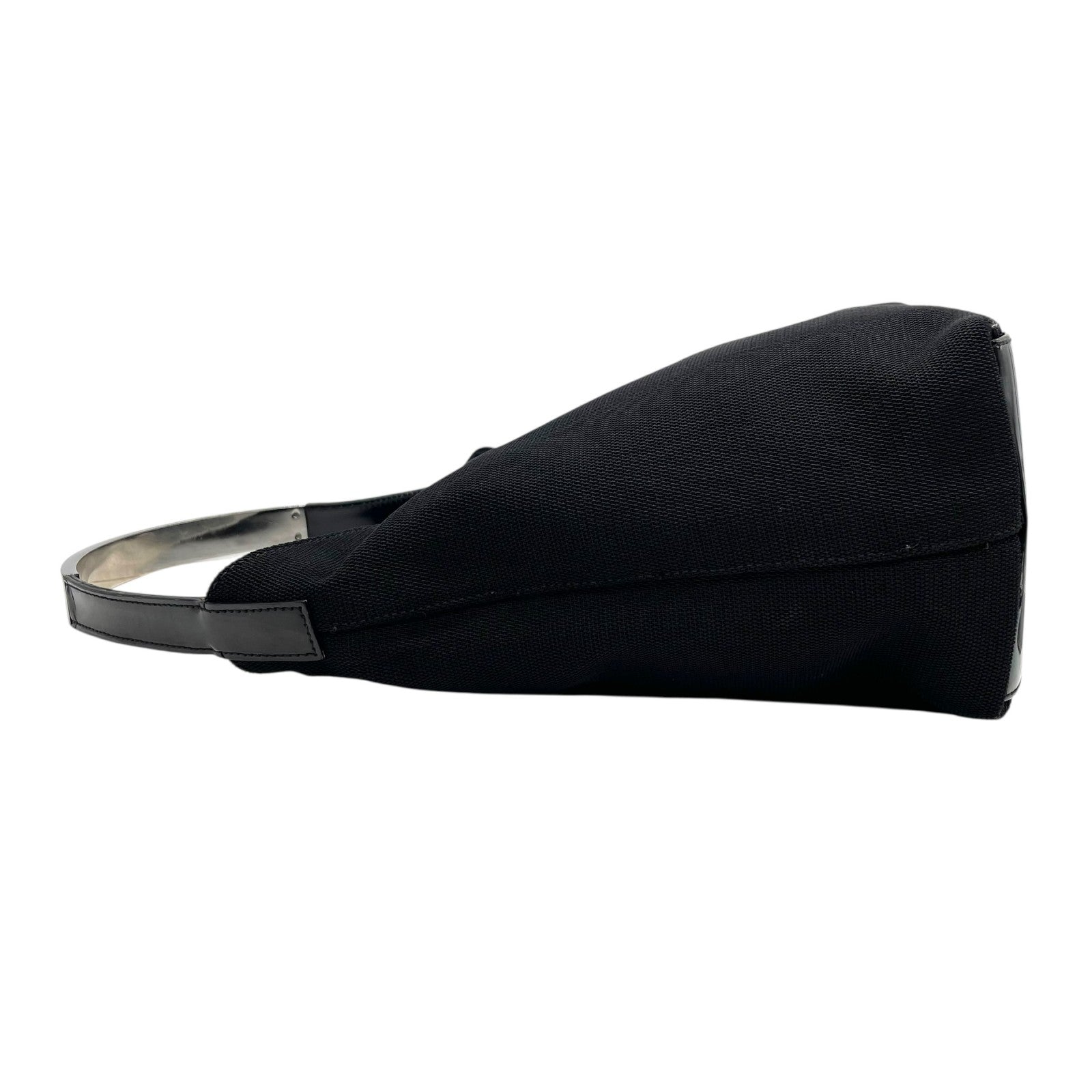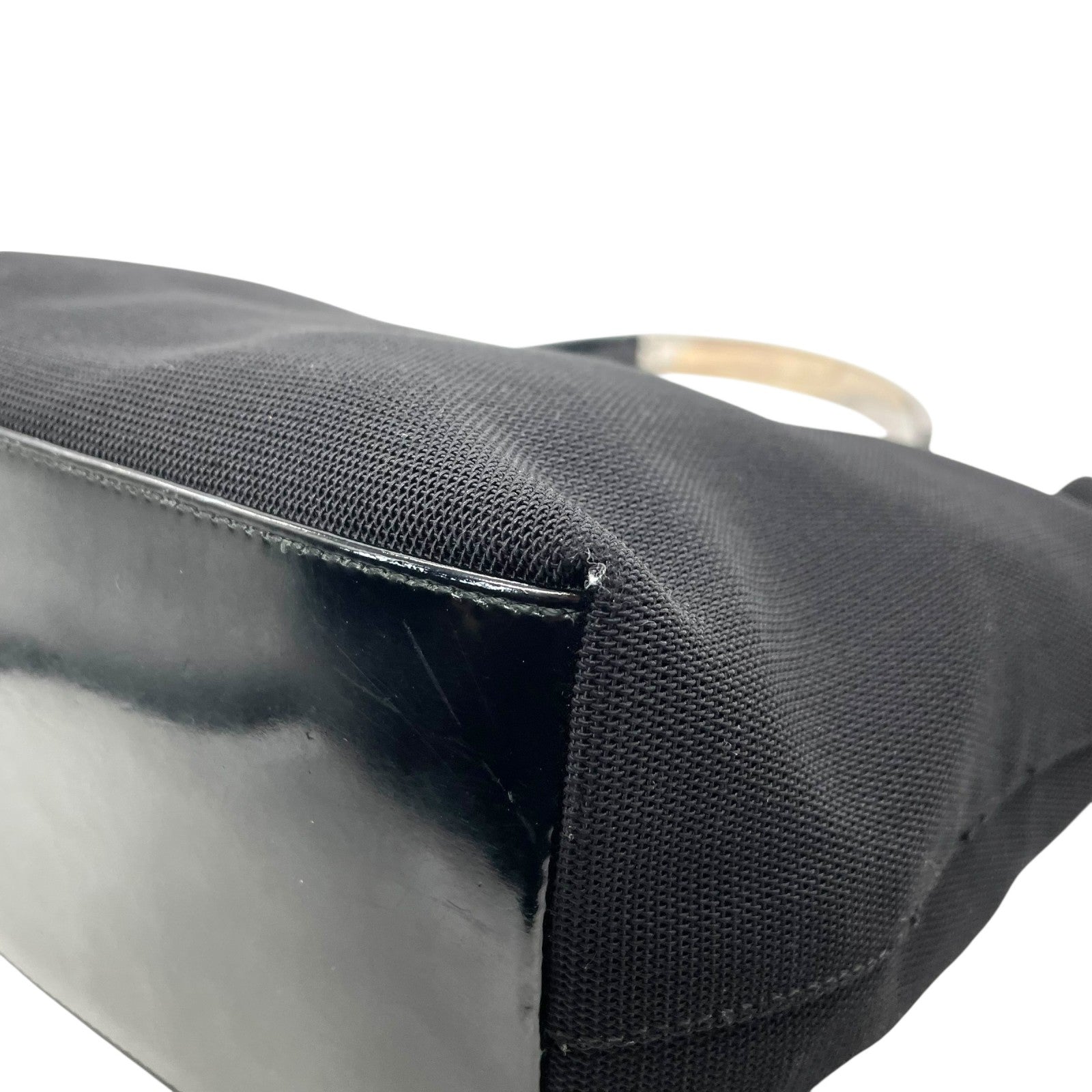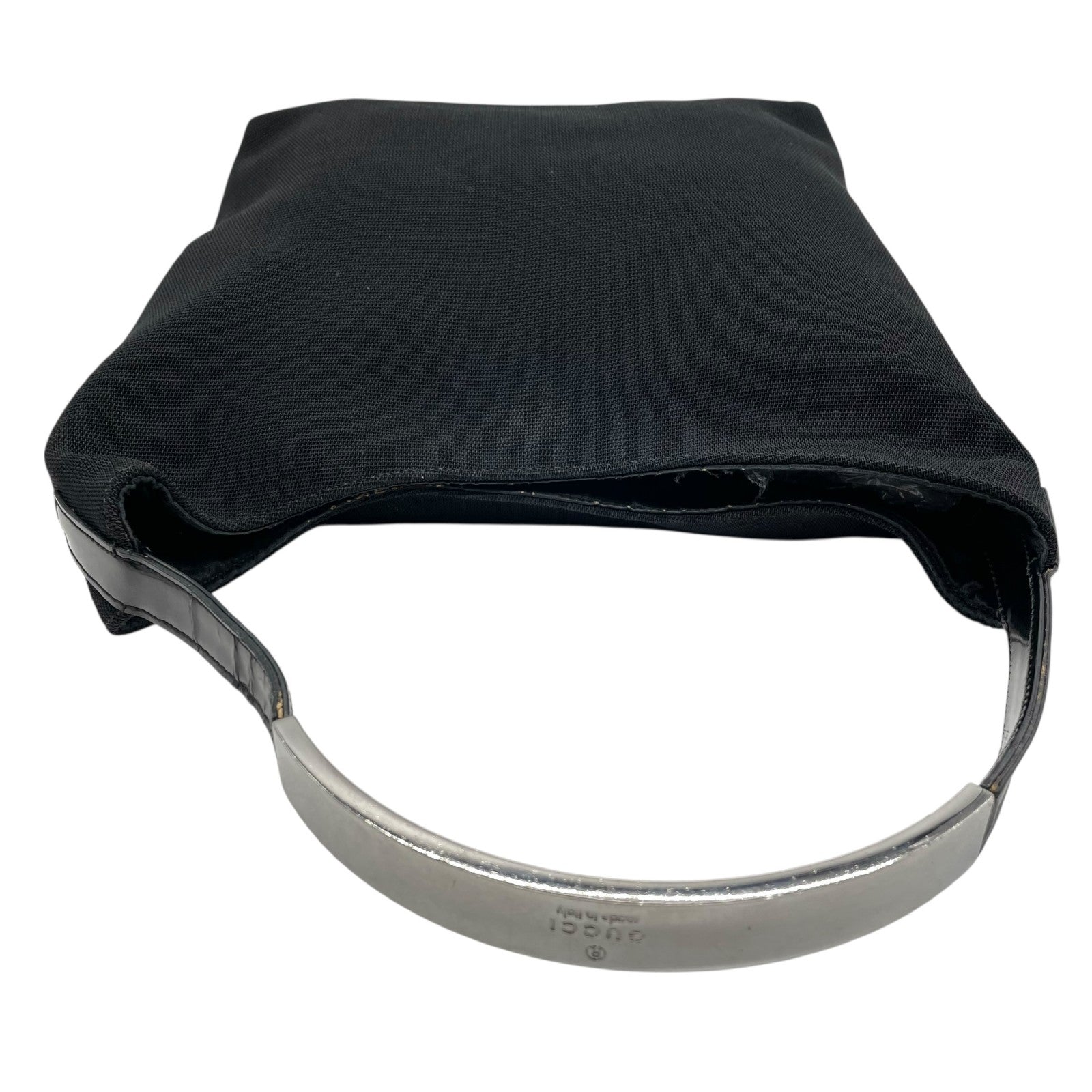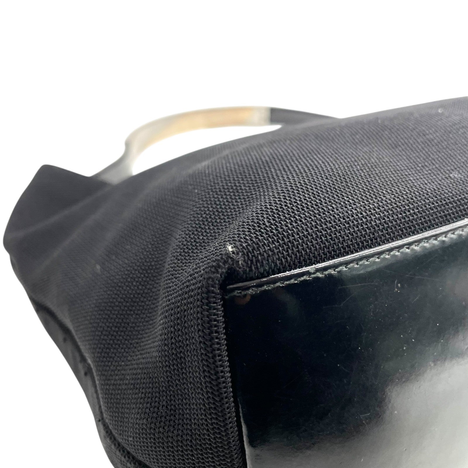 GUCCI グッチ ワンショルダーバッグ ハンドバッグ 黒 ブラック シルバー金具 キャンバス パテントレザー メタルハンドル ロゴプレート 肩掛け可 マグネット開閉 ホーボー レディース D6