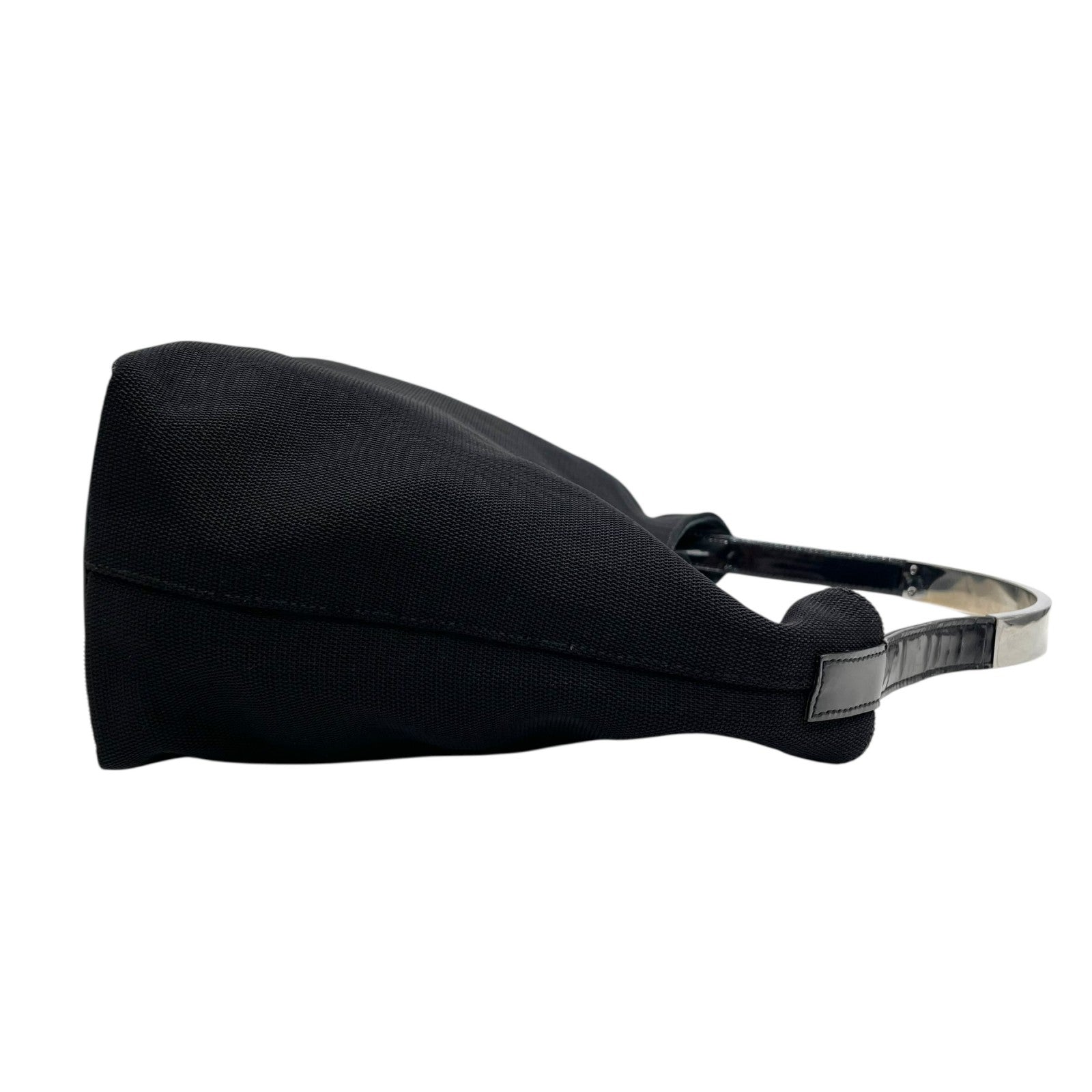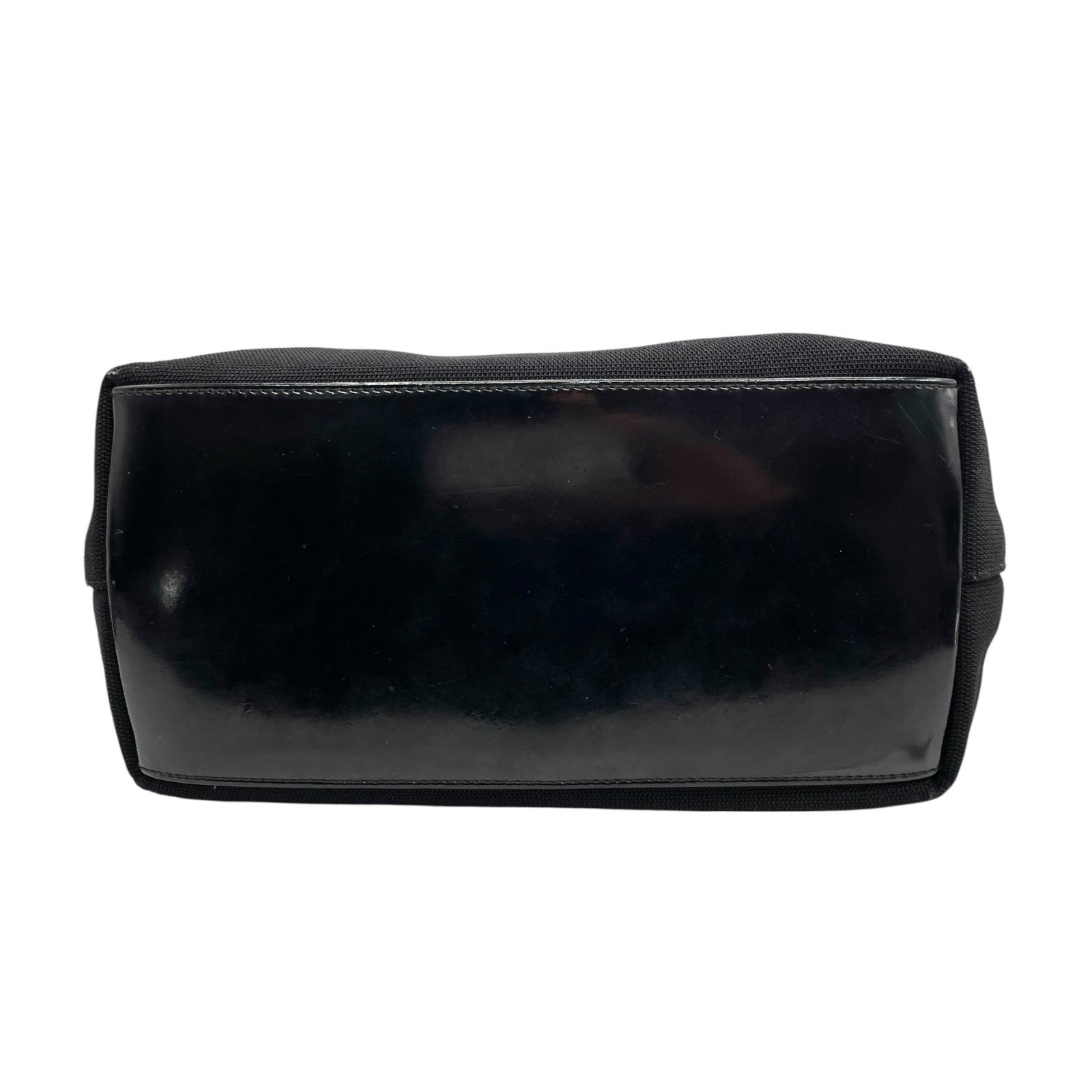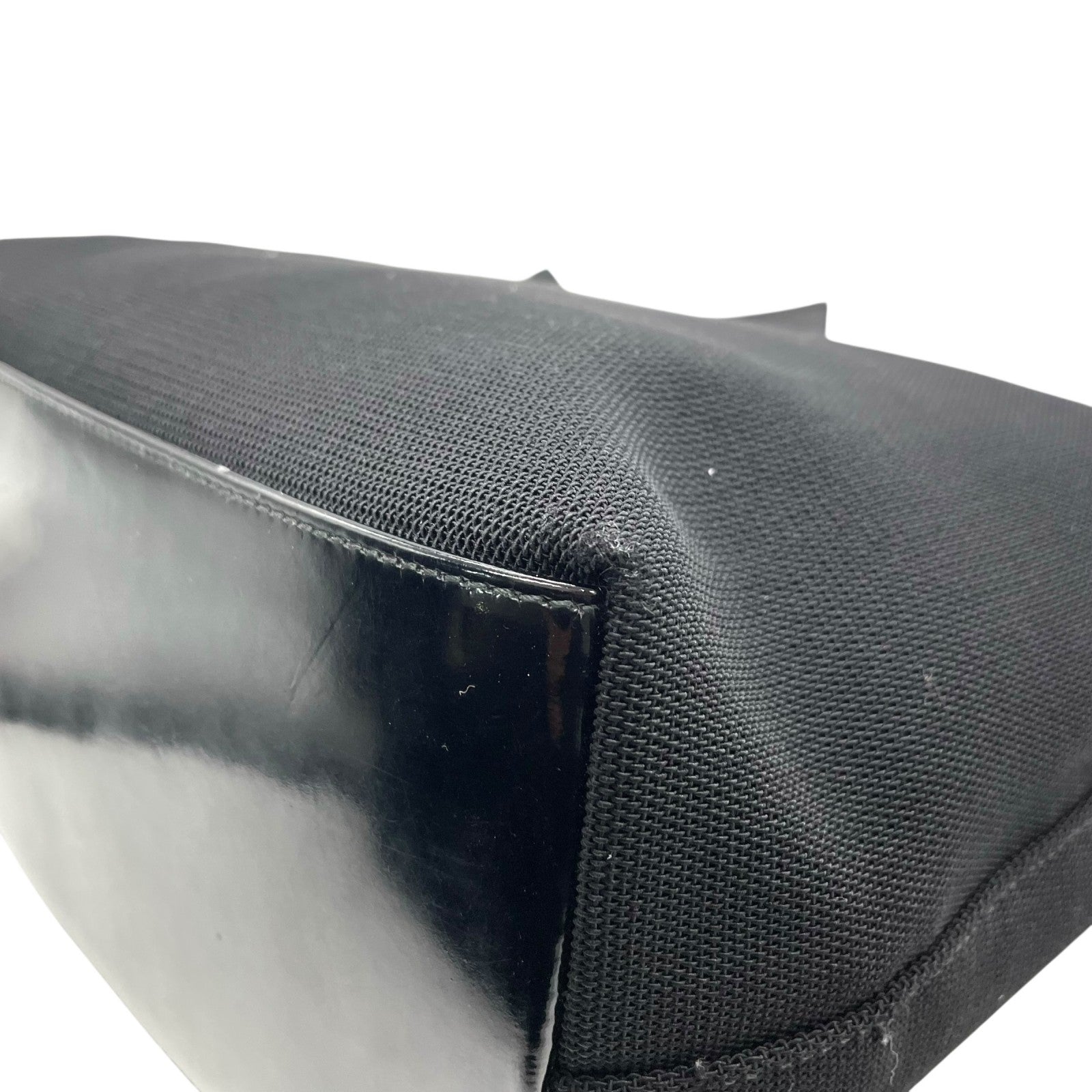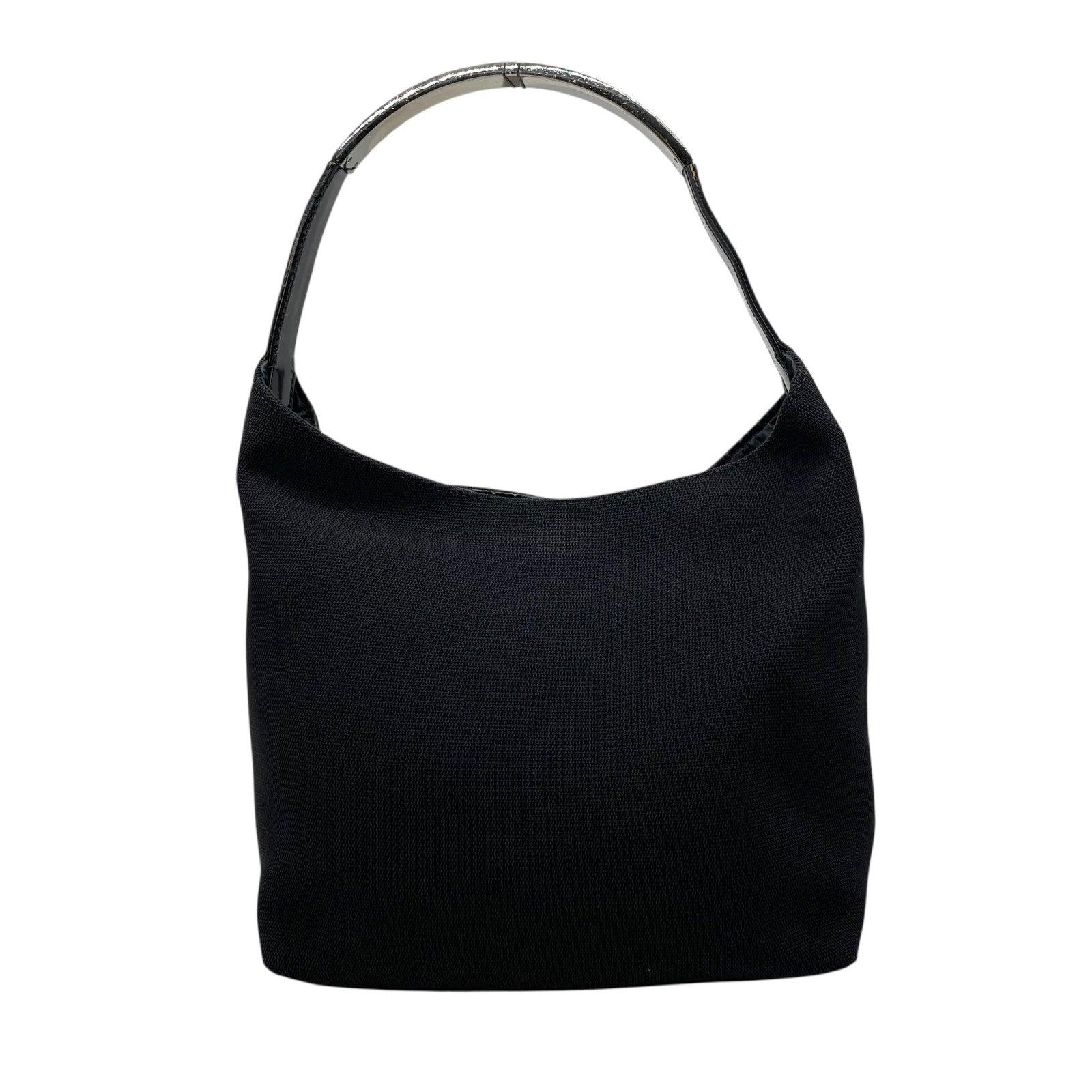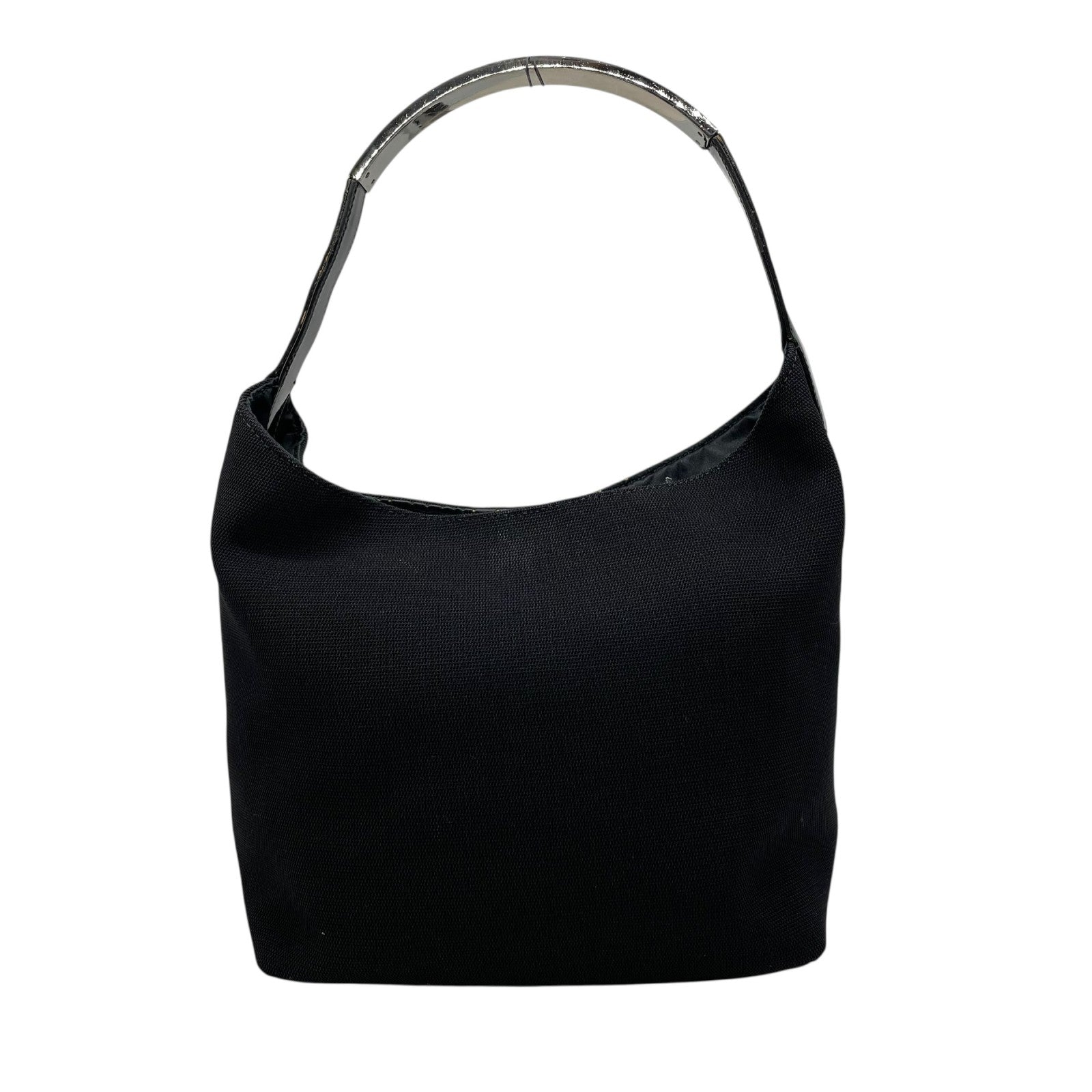 GUCCI グッチ ワンショルダーバッグ ハンドバッグ 黒 ブラック シルバー金具 キャンバス パテントレザー メタルハンドル ロゴプレート 肩掛け可 マグネット開閉 ホーボー レディース D6