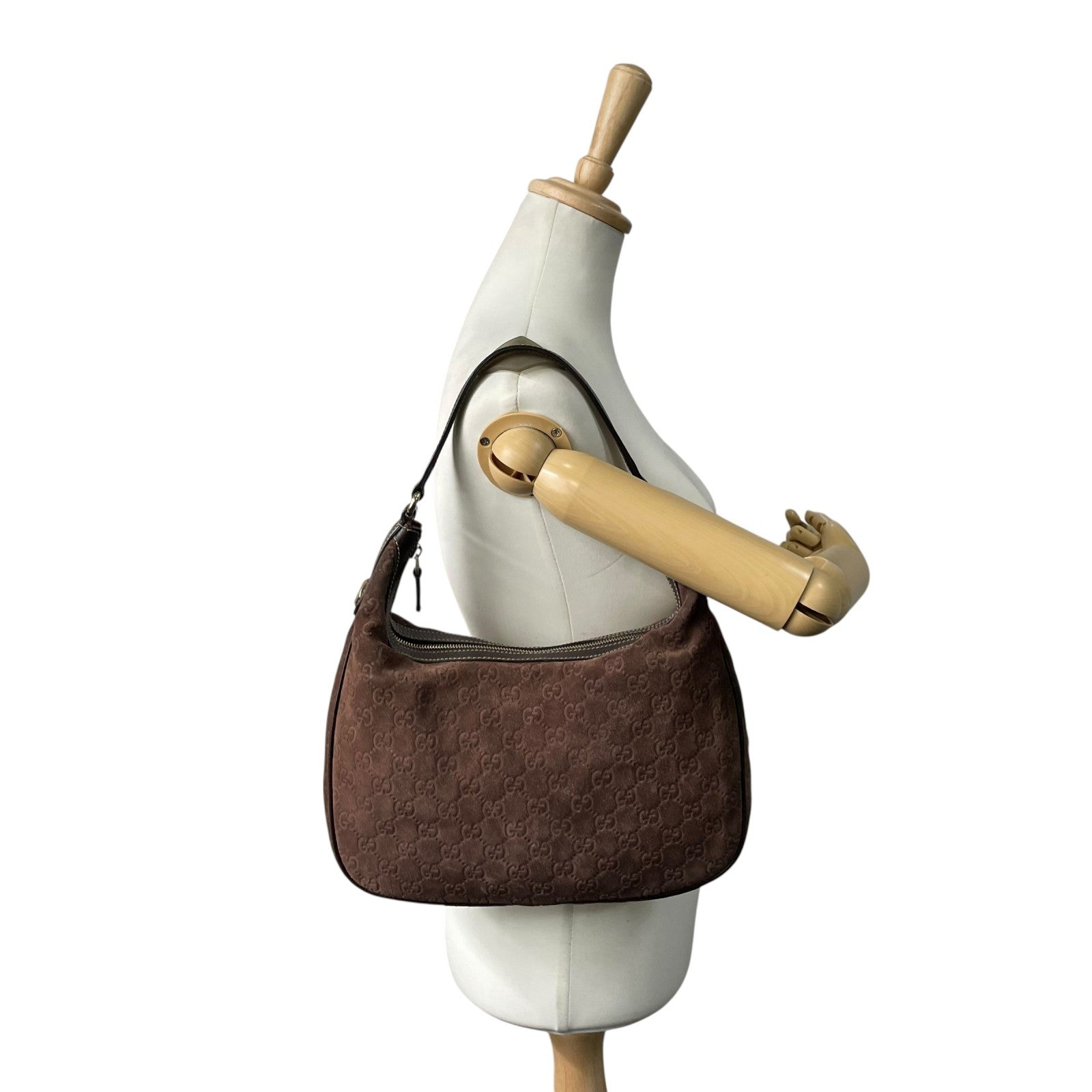 希少 GUCCI グッチ ワンショルダー ショルダーバッグ GG柄 スエード×レザー ブラウン 茶色 エンボス Y2K 153010 肩掛け B3
