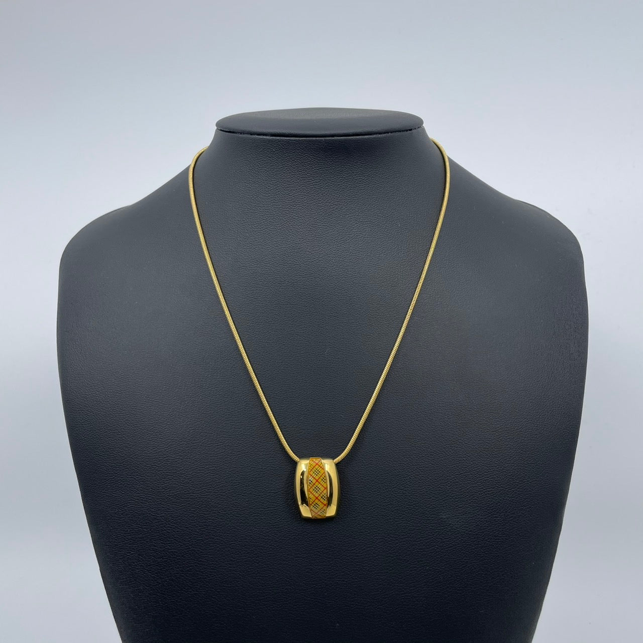 美品 BURBERRY バーバリー ヴィンテージ ネックレス ペンダント ノバチェック スクエア ゴールドカラー アクセサリー ジュエリー レディース アジャスター付き I1