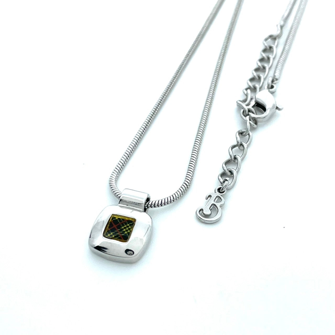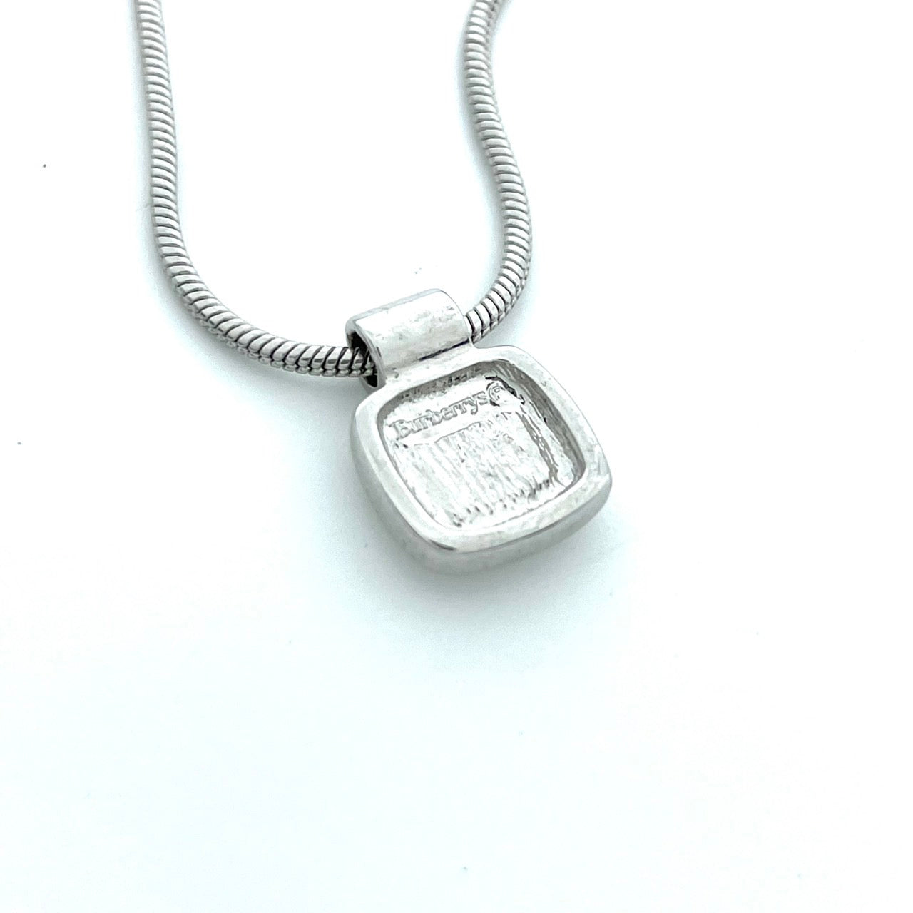 美品 BURBERRY バーバリー ヴィンテージ ネックレス ペンダント ノバチェック スクエア シルバーカラー アクセサリー ジュエリー レディース アジャスター付き I1
