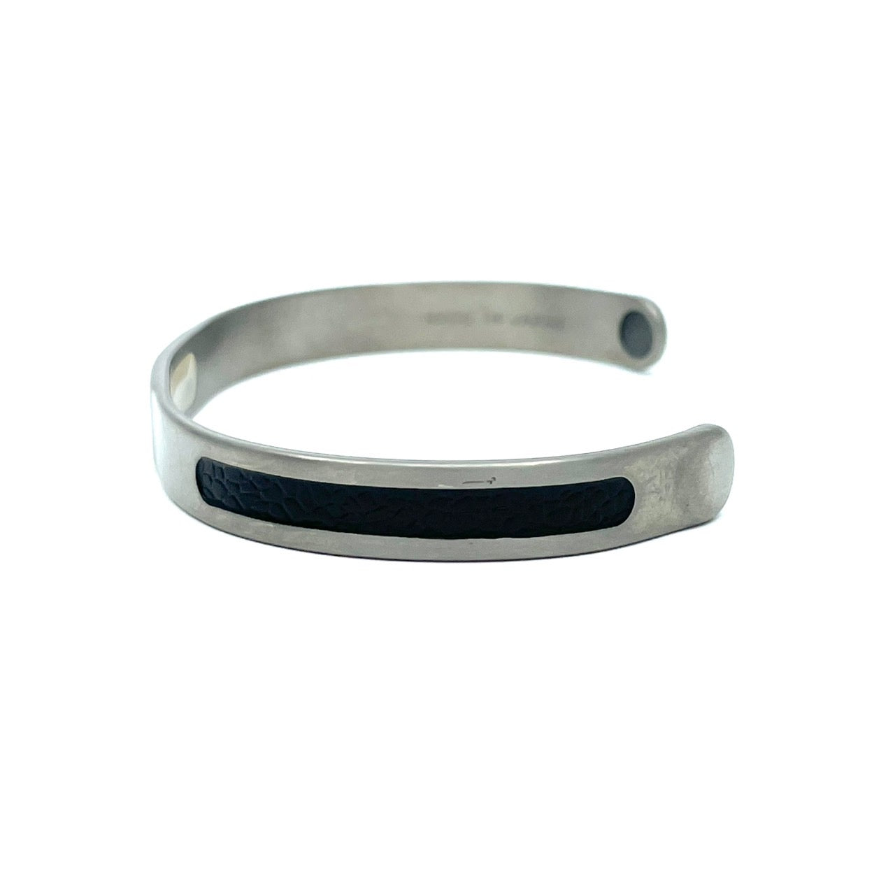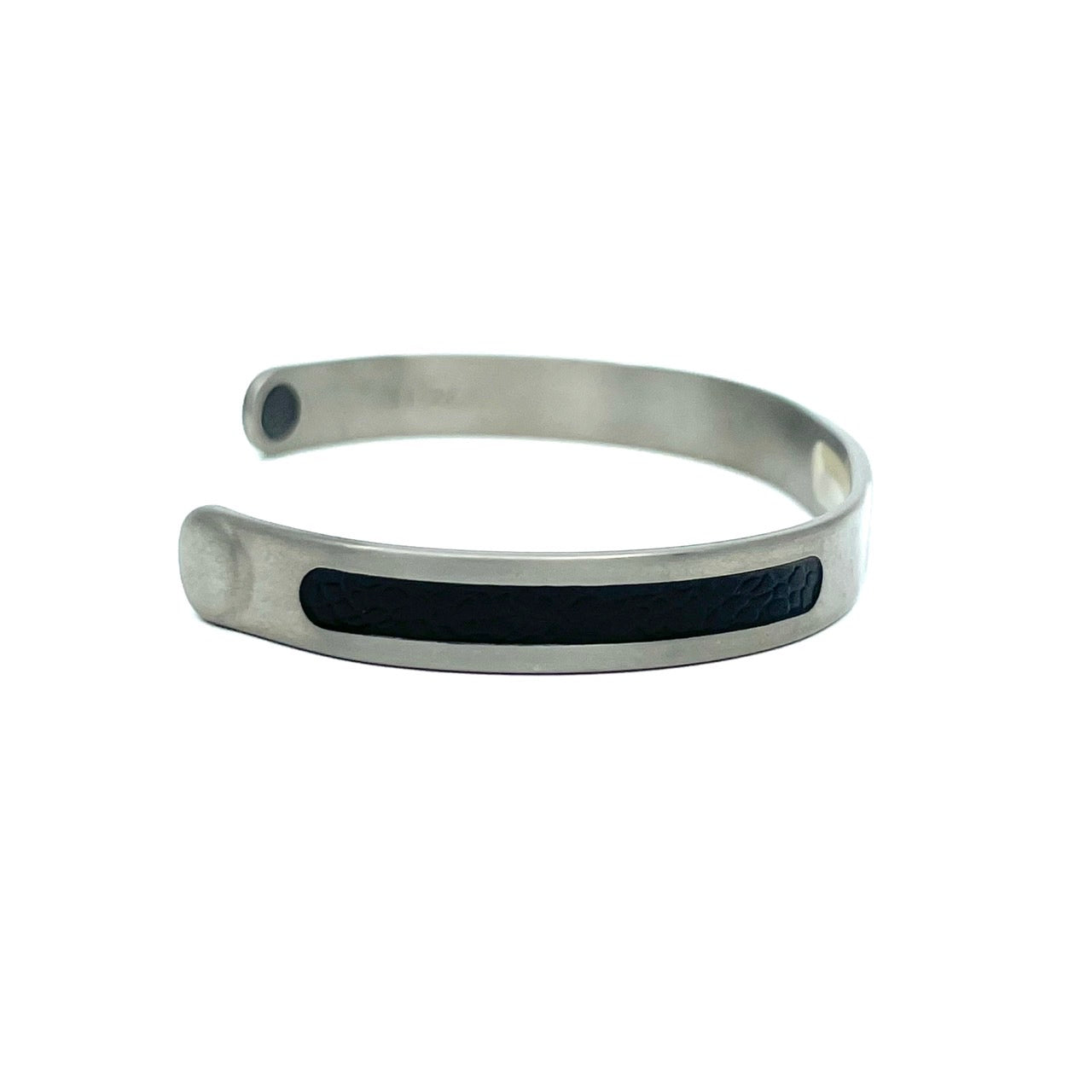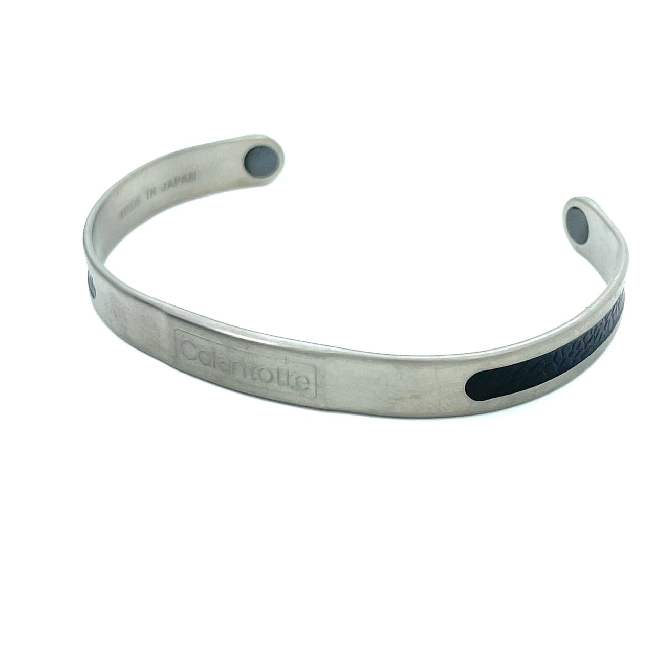 美品 ColanTotte コラントッテ ブレスレット バングル シルバーカラー マグチタン ブラック 黒 アクセサリー メンズ I1