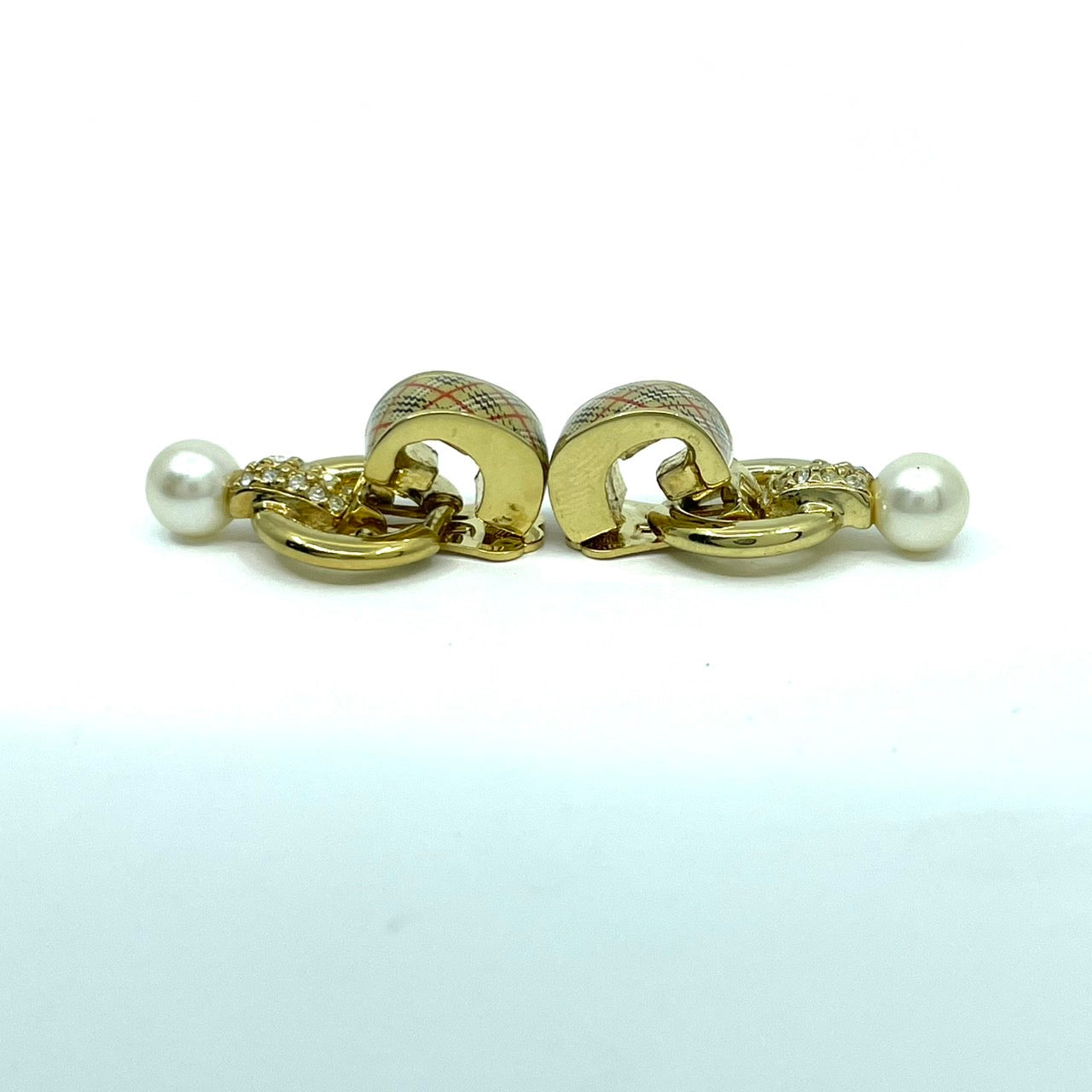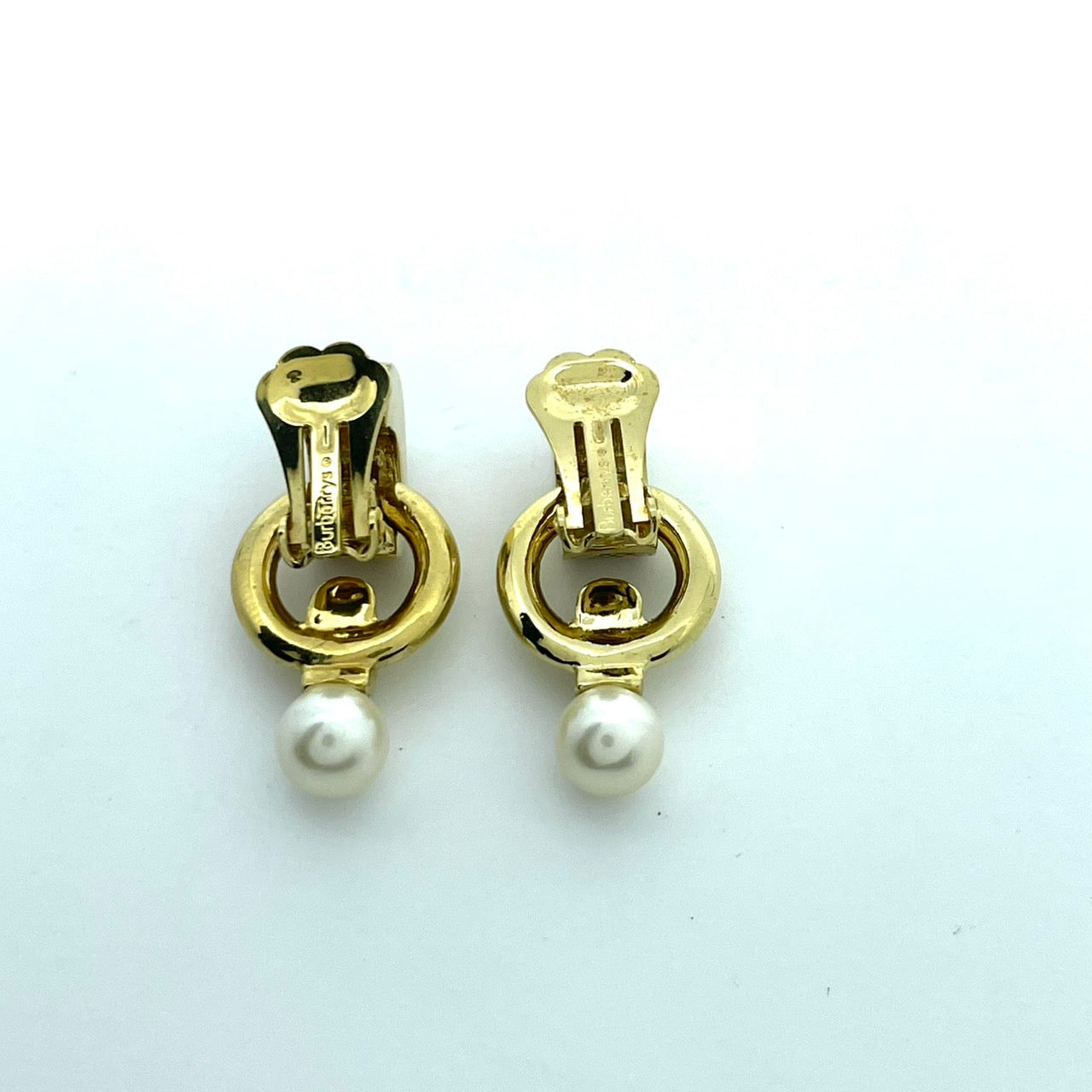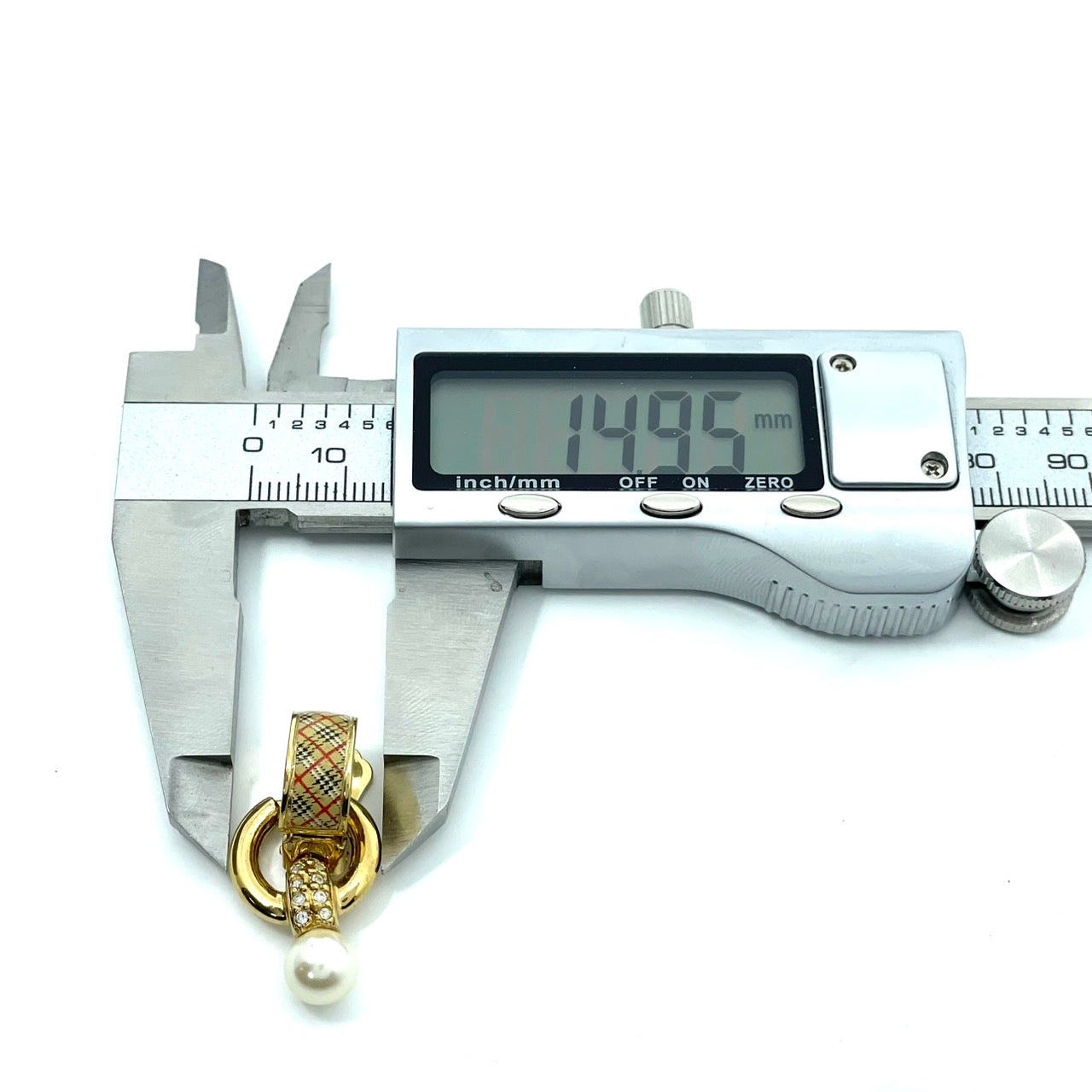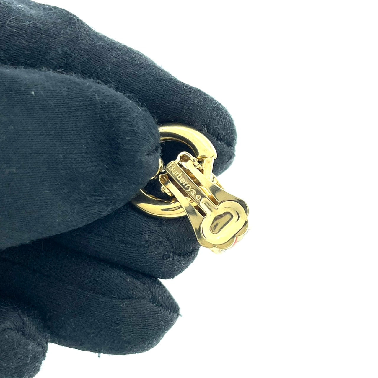 美品 BURBERRY バーバリー ノバチェック イヤリング ゴールド×クリスタル パール調チャーム ヴィンテージ アクセサリー 正規品 金 ラインストーン I1
