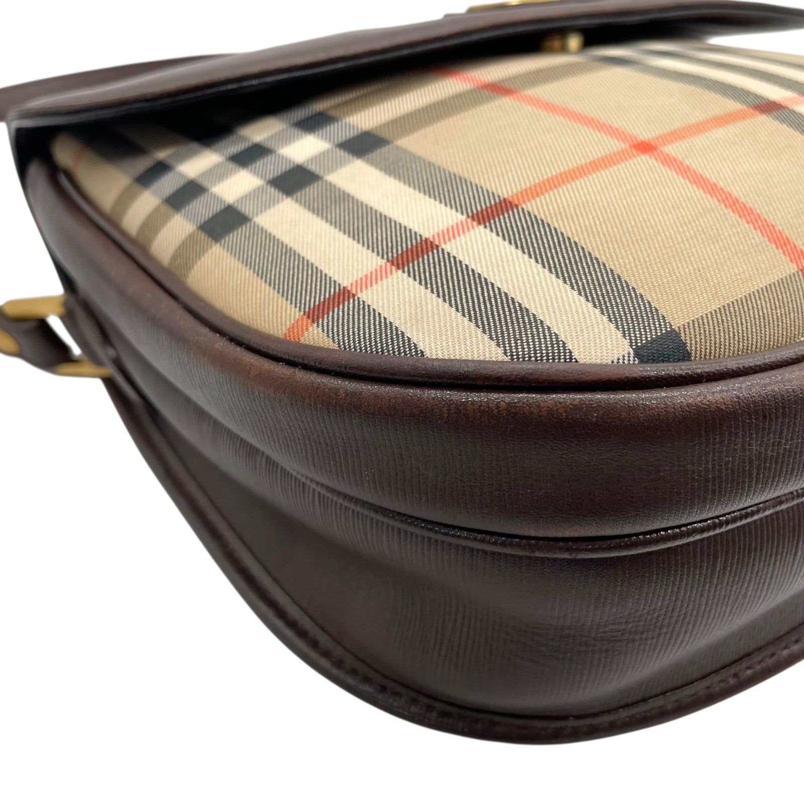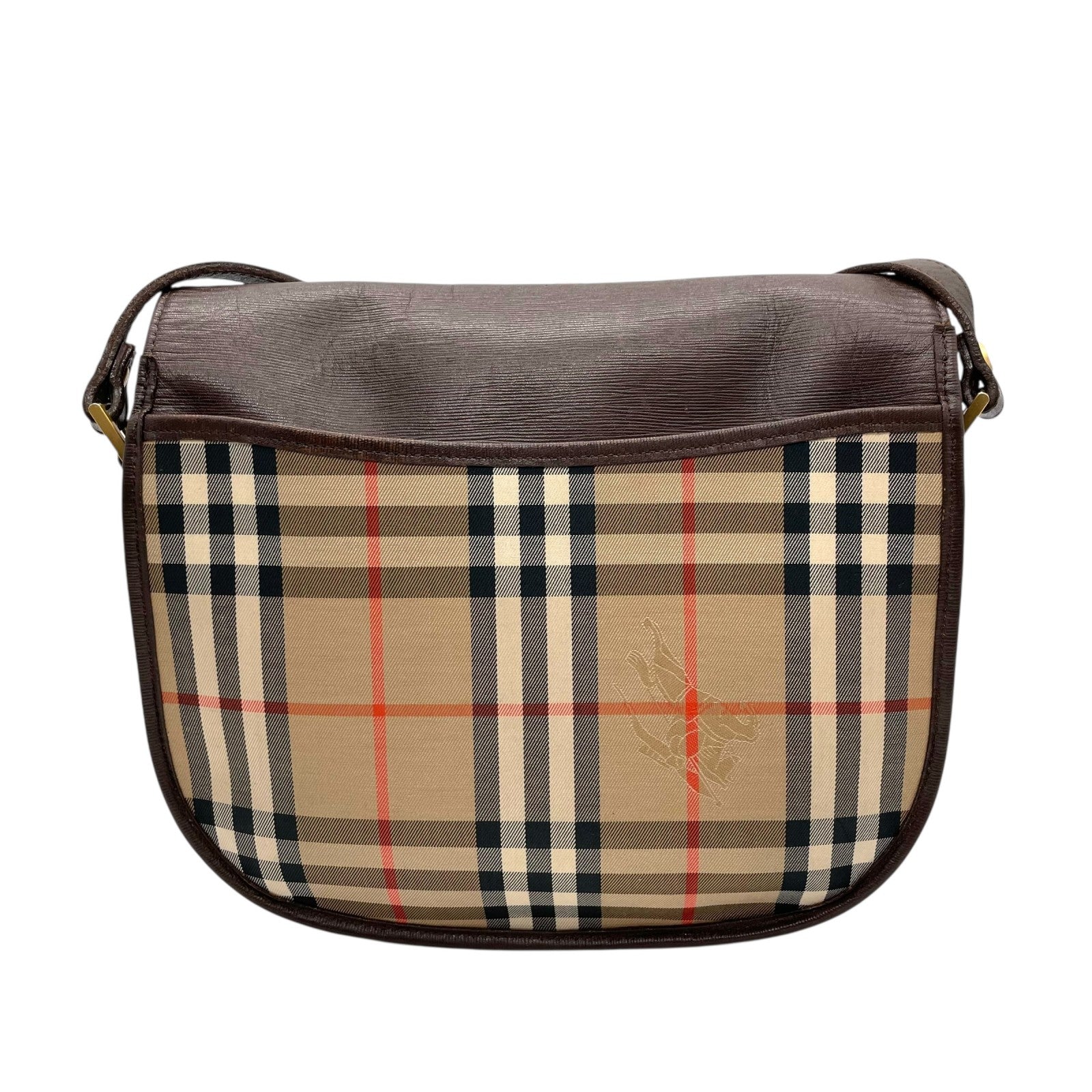 Burberry バーバリー ショルダーバッグ サコッシュ フラップ ノバチェック キャンバス×レザー ブラウン ホースロゴ シャドーホース ゴールド金具 クロスボディ ヴィンテージ アーカイブ ユニセックス K2