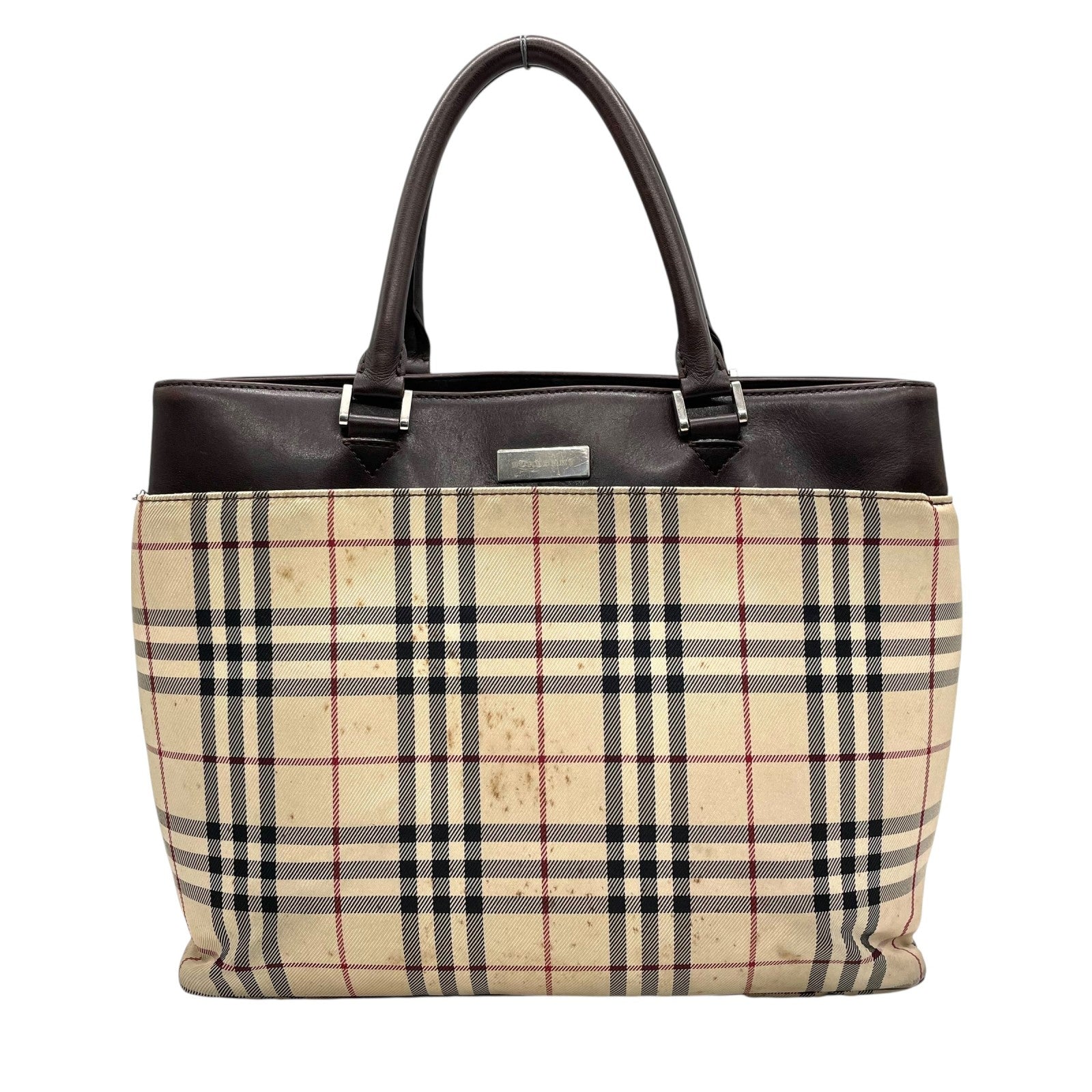 BURBERRY バーバリー ハンドバッグ トートバッグ ノバチェック チェック柄 ベージュ ブラウン キャンバス レザー シルバー金具 ロゴプレート レディース C2