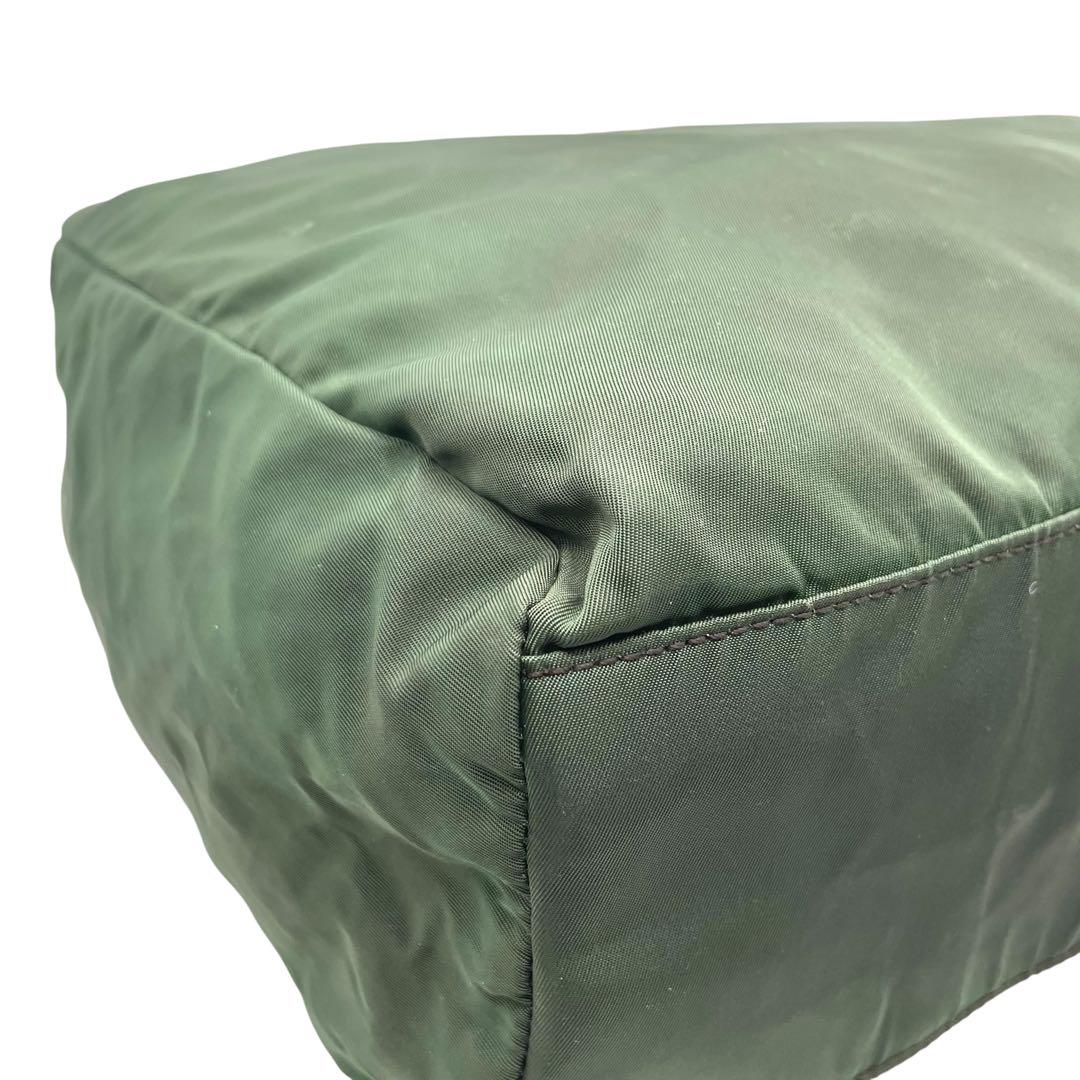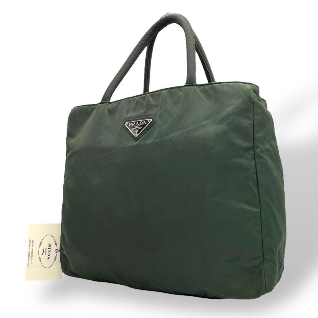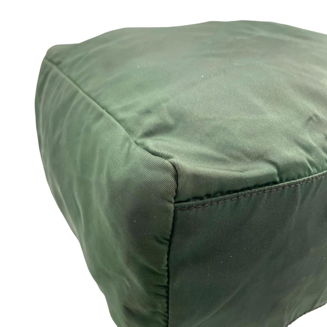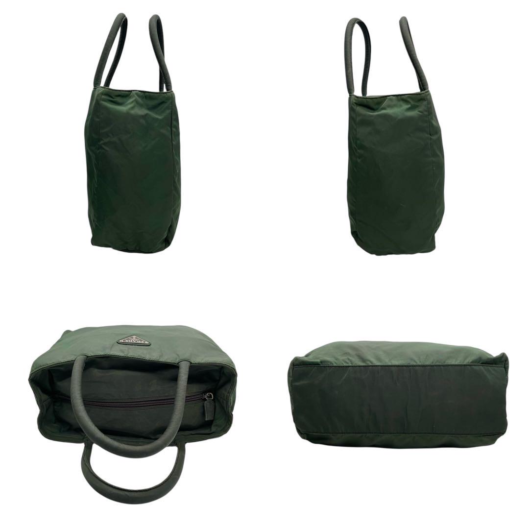 プラダ テスートナイロン ハンドバッグ 三角ロゴ カーキ グリーン トライアングル トートバッグ コンパクト ナイロン シルバー金具 PRADA レディース