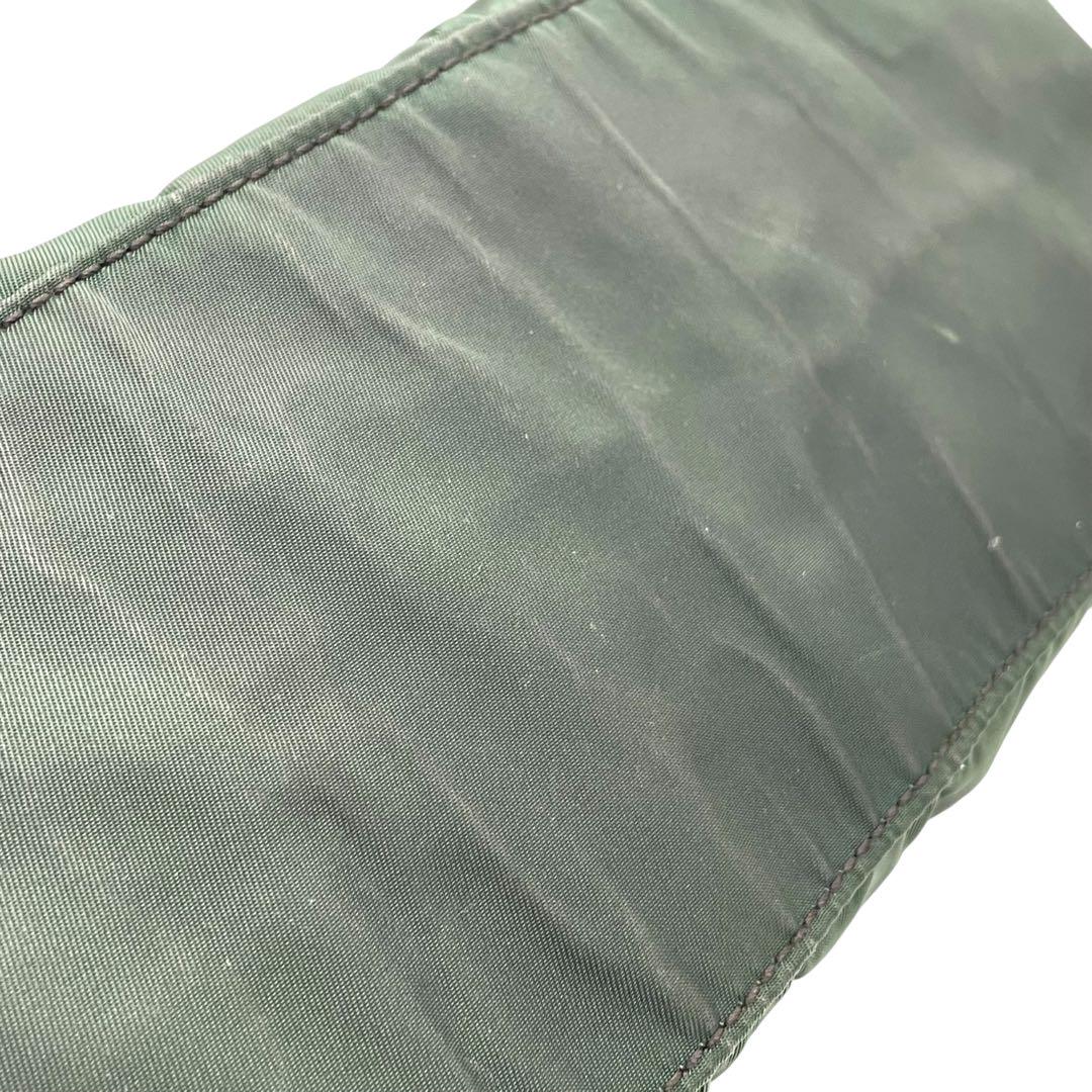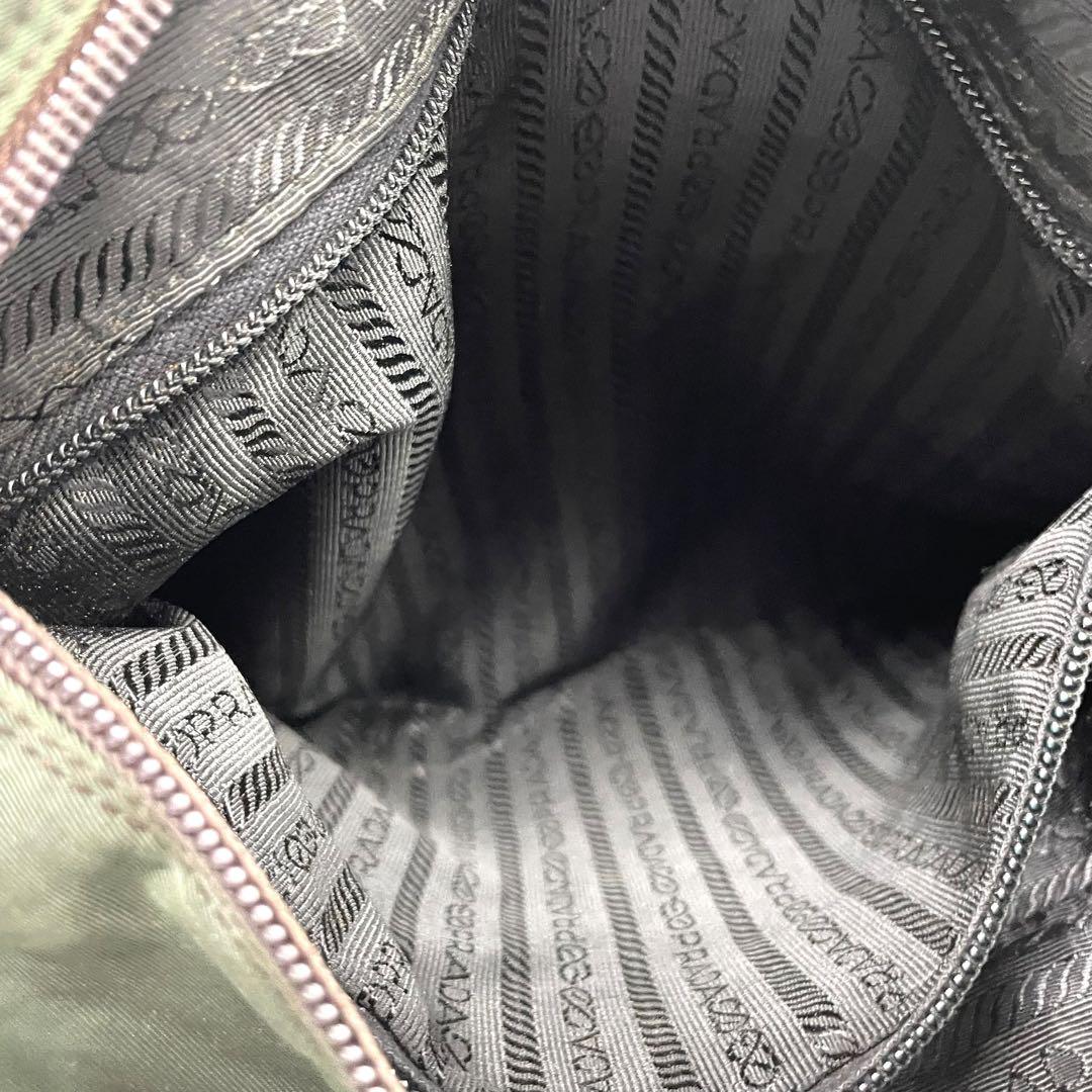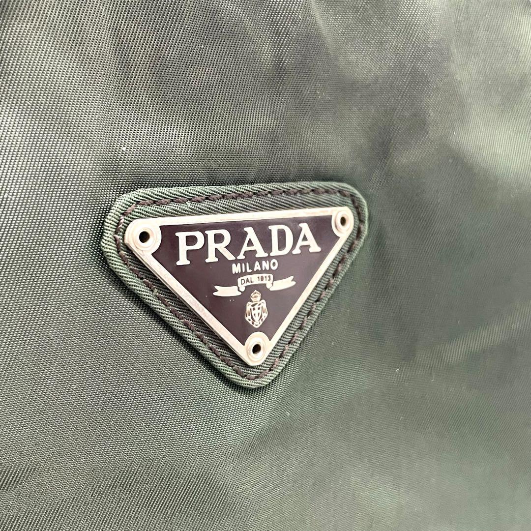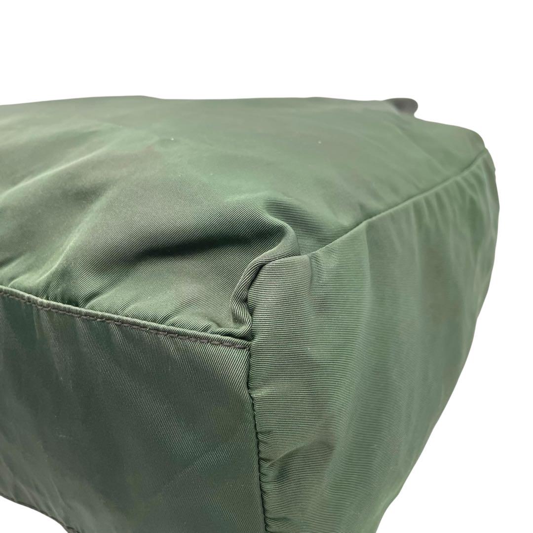 プラダ テスートナイロン ハンドバッグ 三角ロゴ カーキ グリーン トライアングル トートバッグ コンパクト ナイロン シルバー金具 PRADA レディース