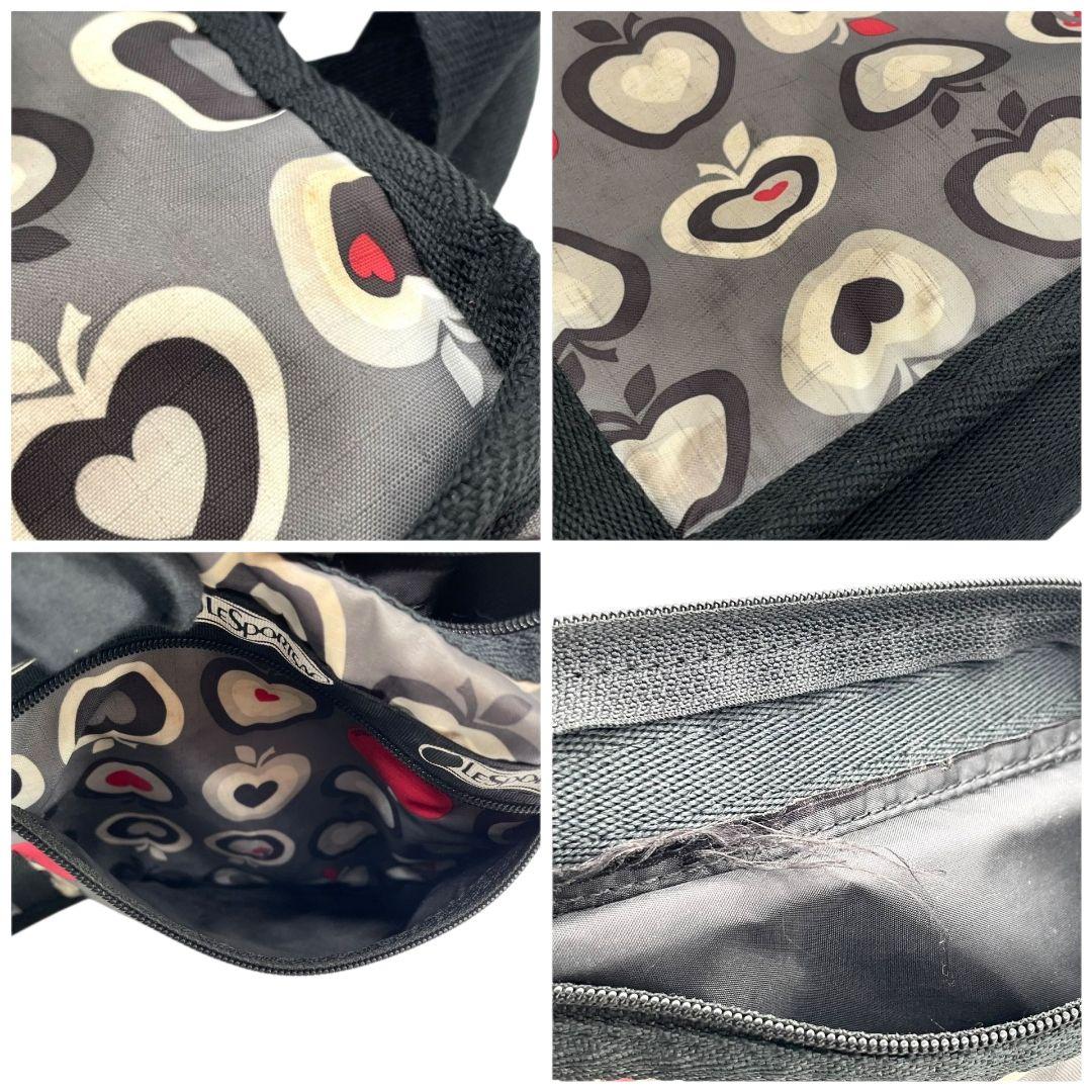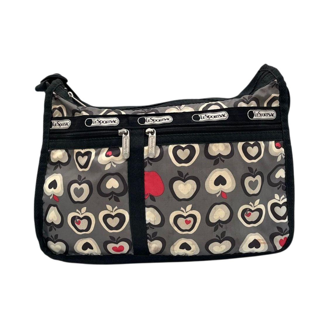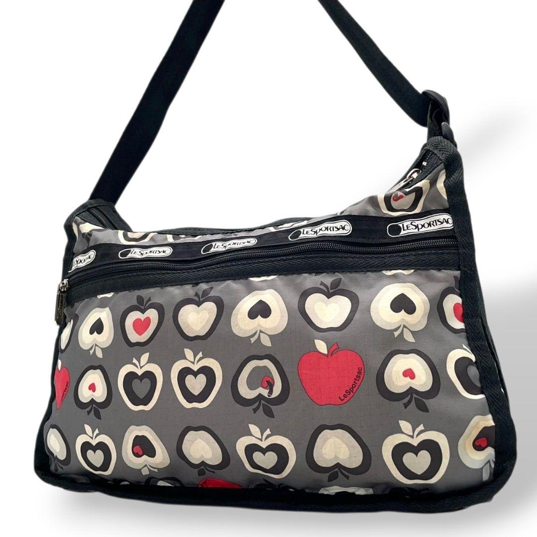 レスポートサック ショルダーバッグ グレー 総柄 リンゴ 斜め掛け可 T4 ナイロン LeSportsac ロゴ レッド