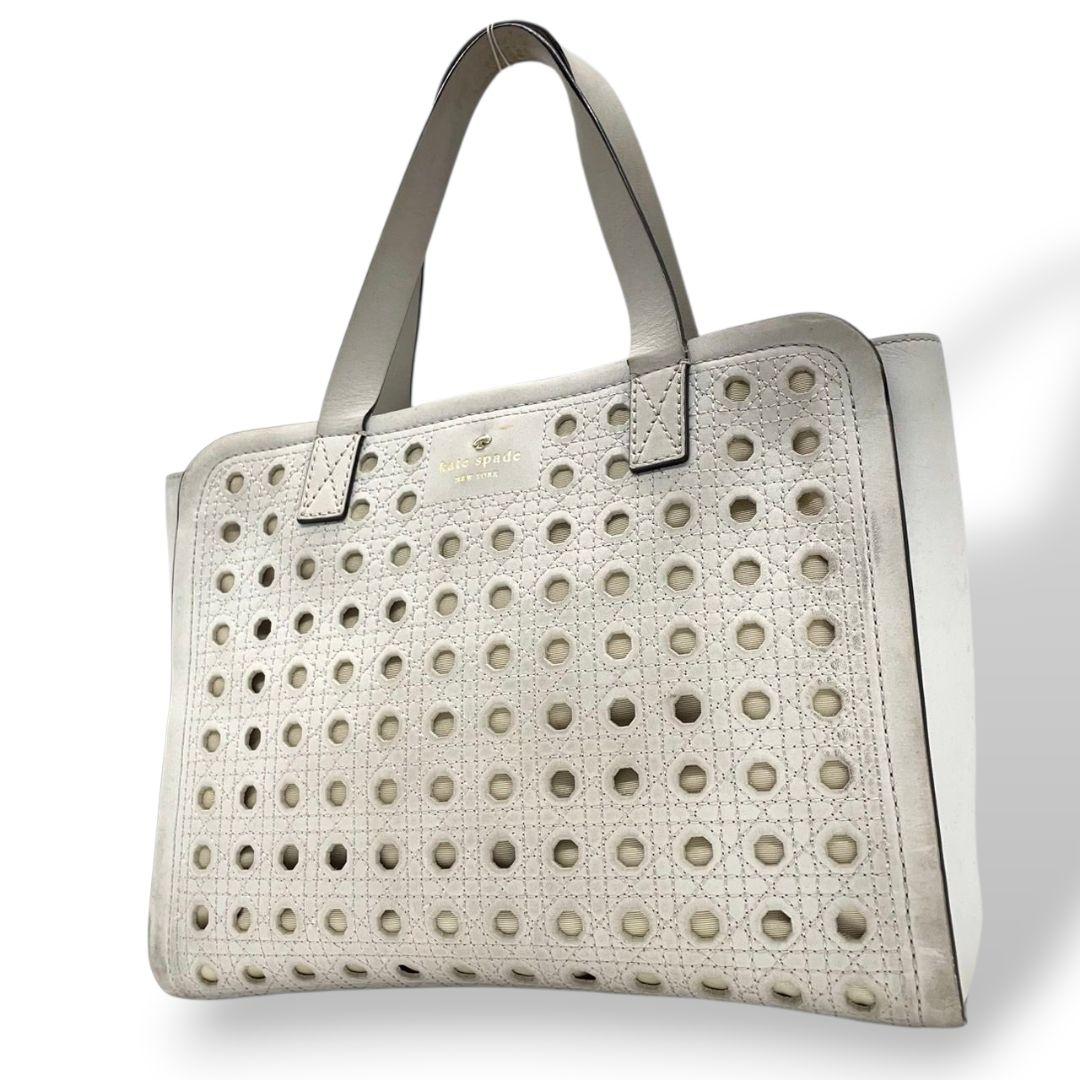 ケイトスペード トートバッグ 白 ロゴ パンチング ワンショルダー A4収納 T4 ハンドバッグ kate spade レザー 本革 肩掛け可 肩かけ可 ゴールド金具 ホワイト