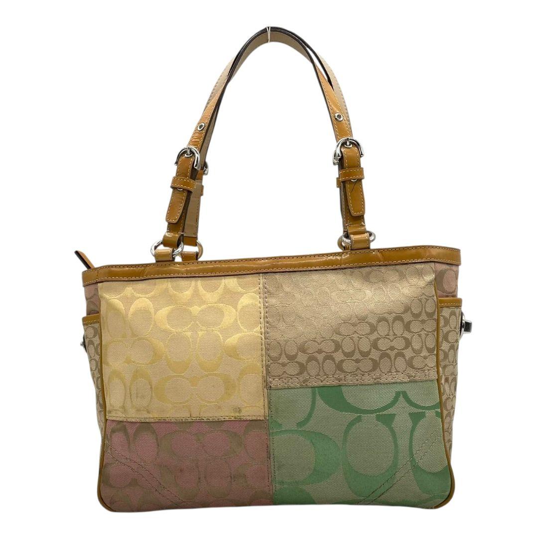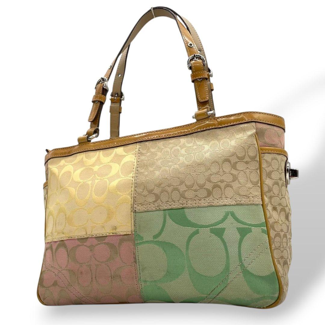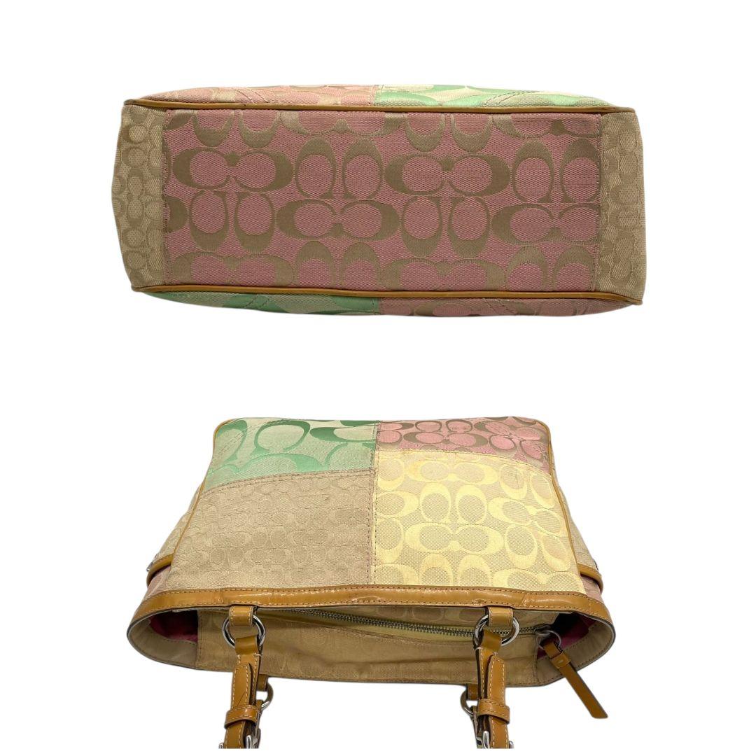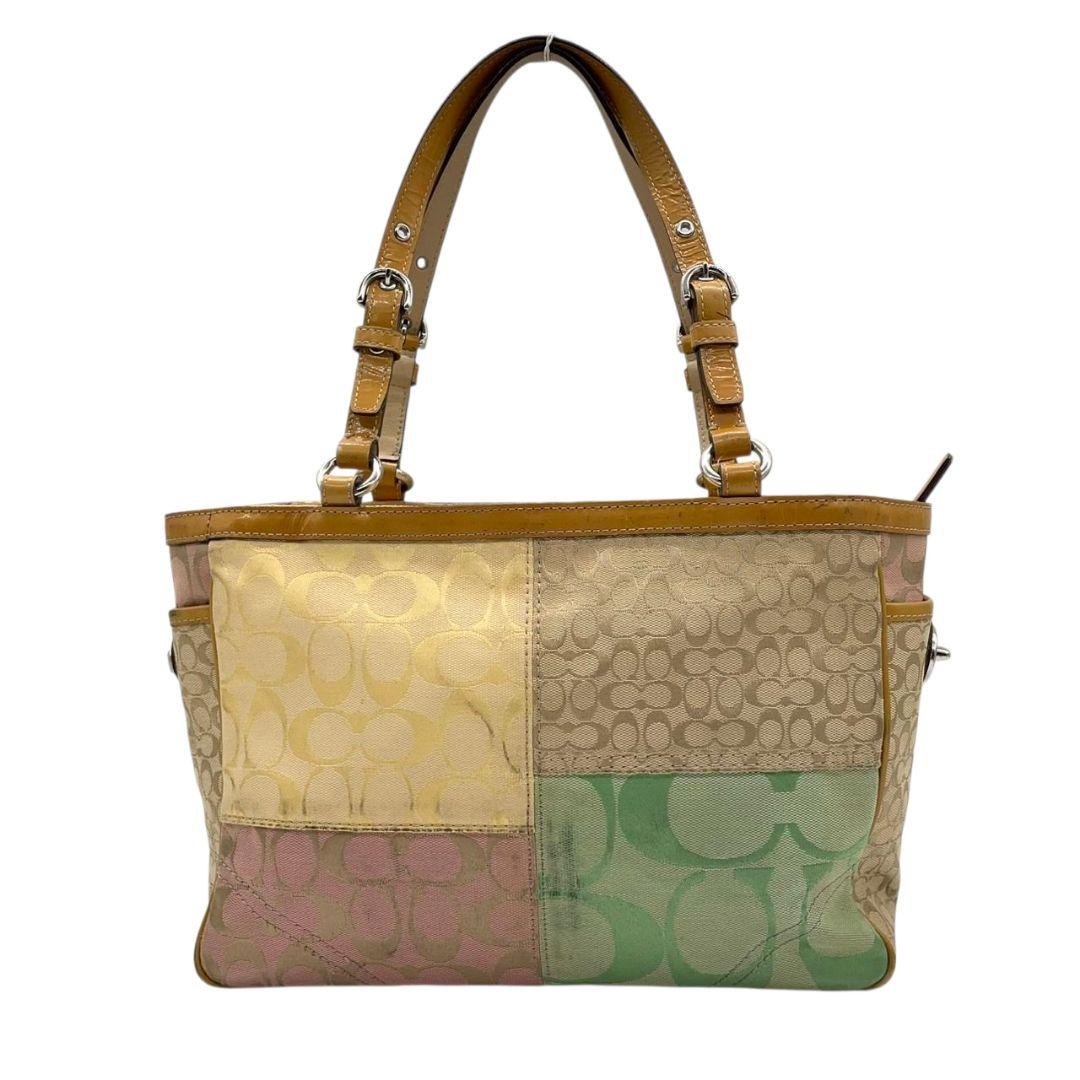 コーチ ハンドバッグ マルチカラー パッチワーク シグネチャー ワンショルダー T4 トートバッグ キャンバス パテントレザー 本革 肩掛け可 肩かけ可 シルバー金具 F14868 ピンク イエロー グリーン COACH