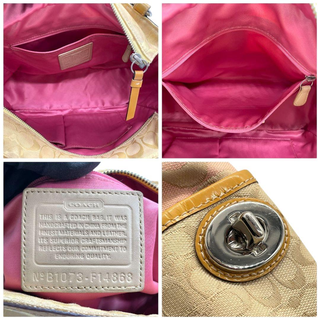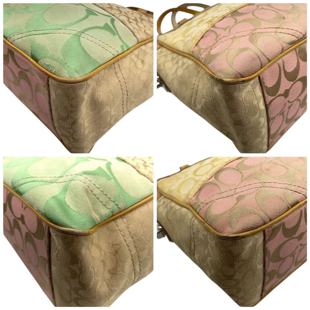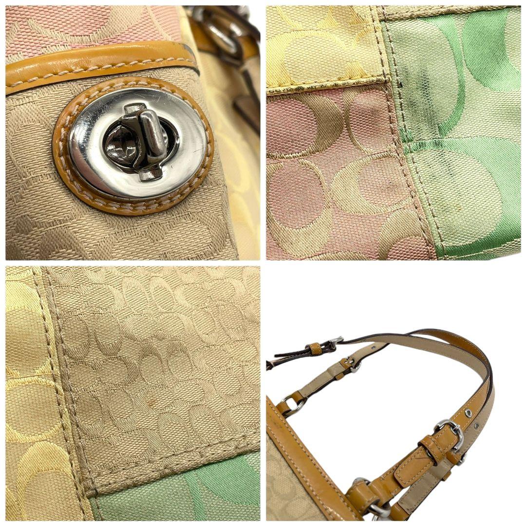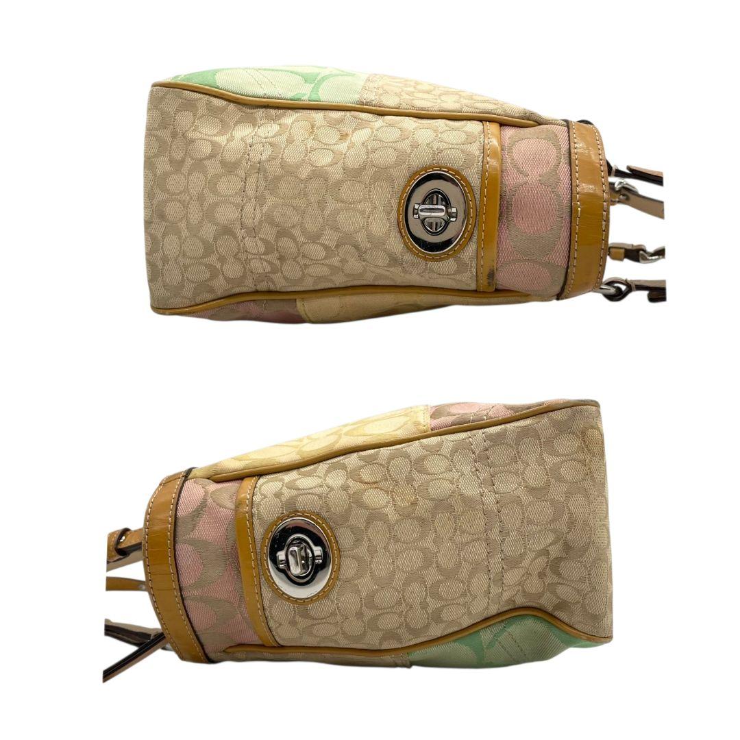 コーチ ハンドバッグ マルチカラー パッチワーク シグネチャー ワンショルダー T4 トートバッグ キャンバス パテントレザー 本革 肩掛け可 肩かけ可 シルバー金具 F14868 ピンク イエロー グリーン COACH
