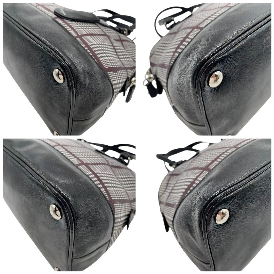 美品 コーチ ハンドバッグ 黒 チェック 総柄 PVC レザー 本革 T1 トートバッグ COACH シルバー金具 ロゴプレート ロゴタグ 自立可 F32841 ブラック ホワイト