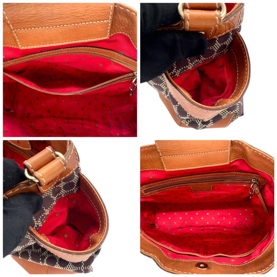 ケイトスペード kate spade ハンドバッグ 茶 ブラウン 総柄 A4収納 ワンショルダー トートバッグ キャンバス レザー 本革 肩掛け可 ロゴプレート T1 レディース