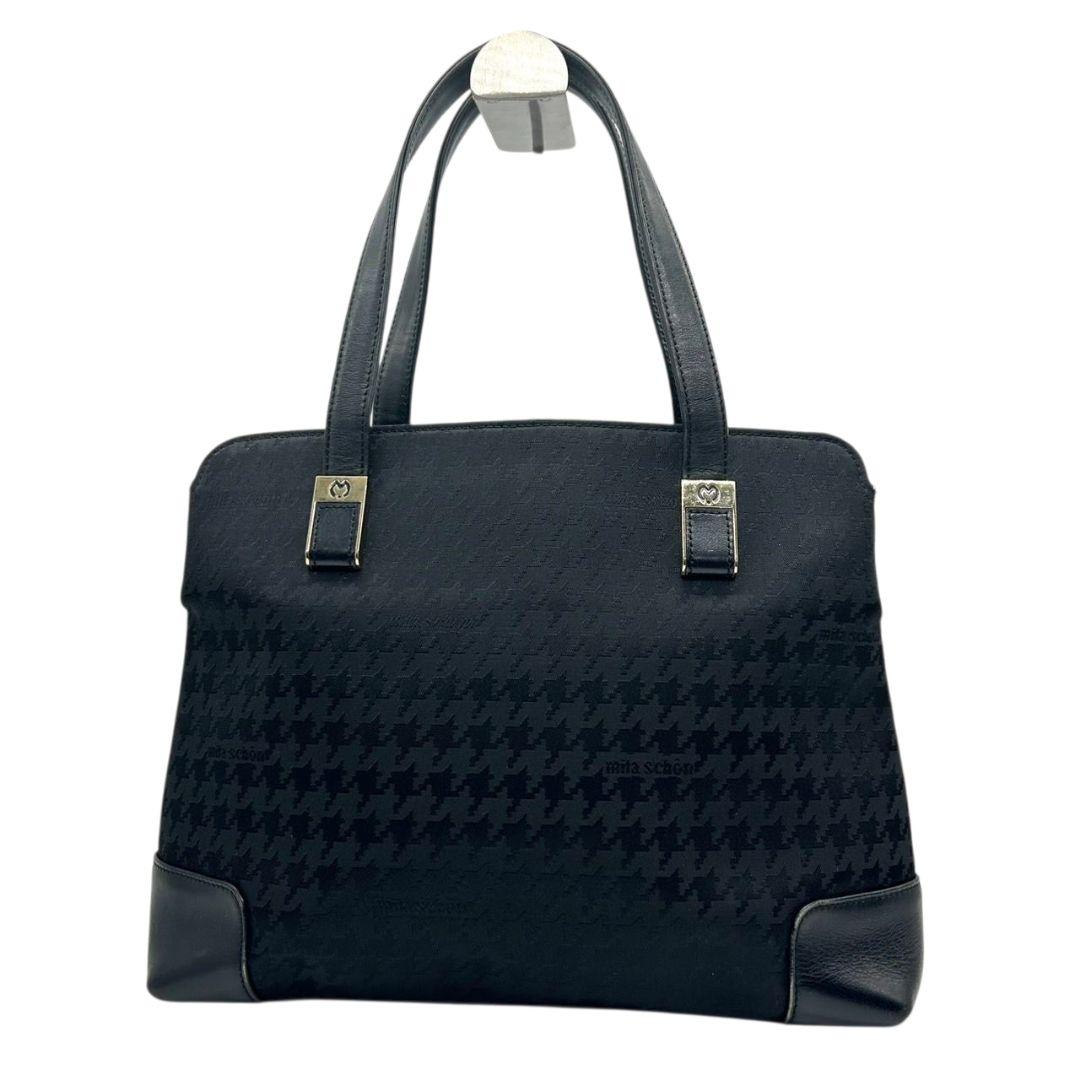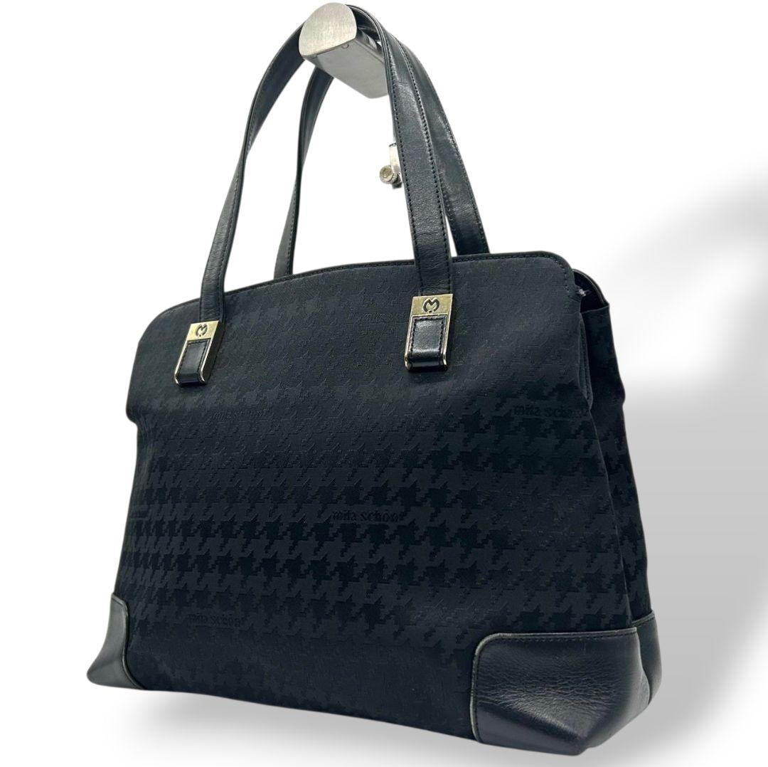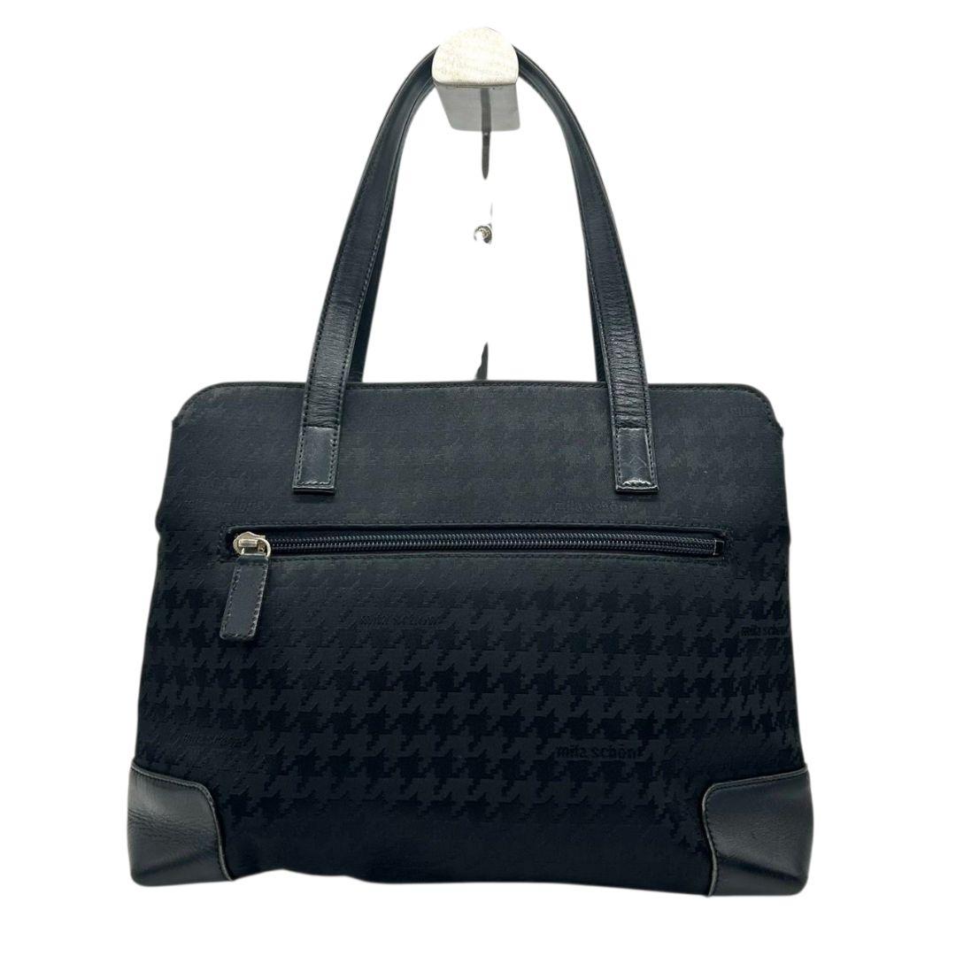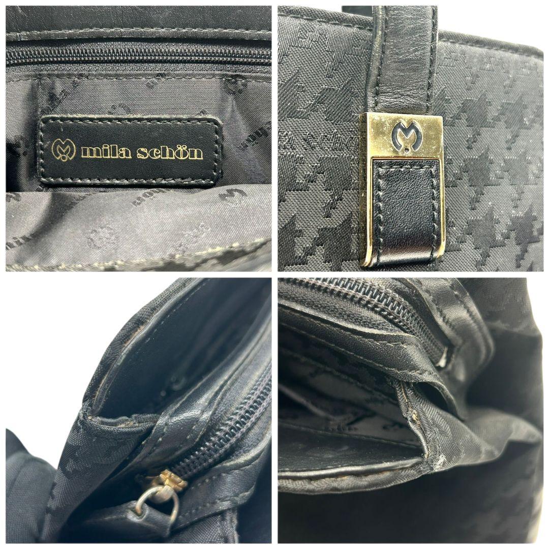 ミラショーン ハンドバッグ 黒 ブラック 千鳥格子 ワンショルダー トートバッグ 自立可 肩掛け可 ナイロン レザー 本革 ゴールド金具 ロゴ s62 mila schon 上品 高級