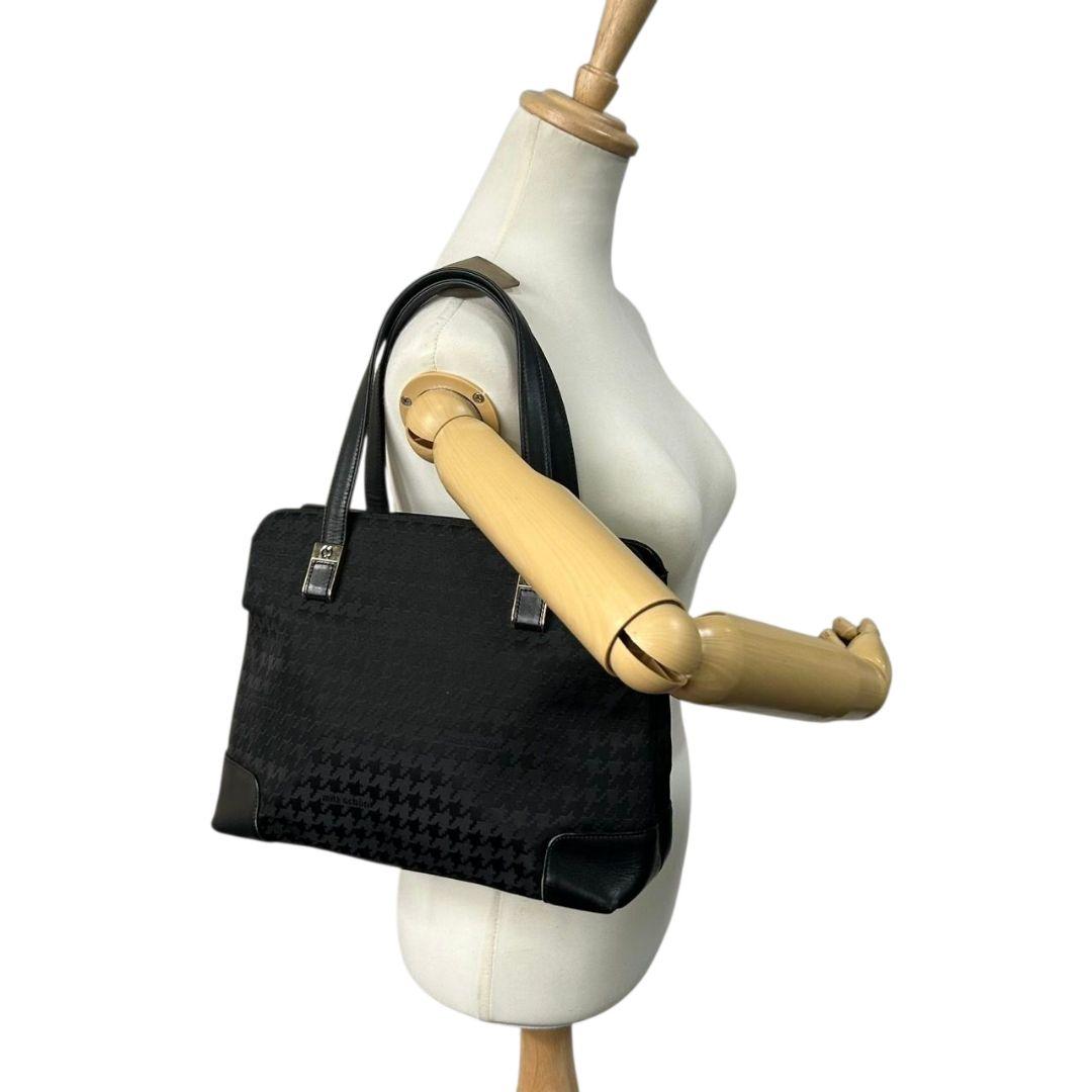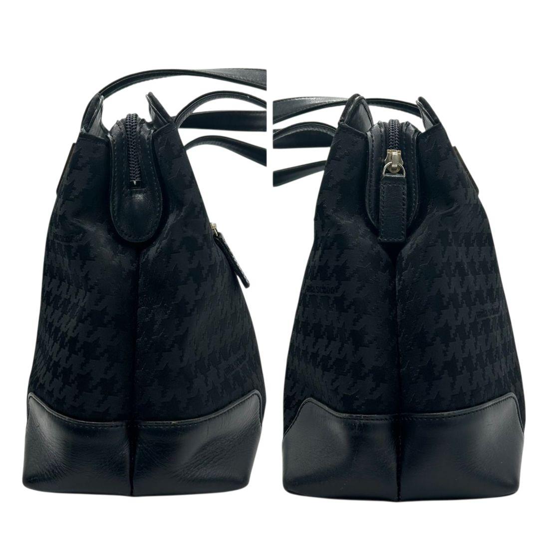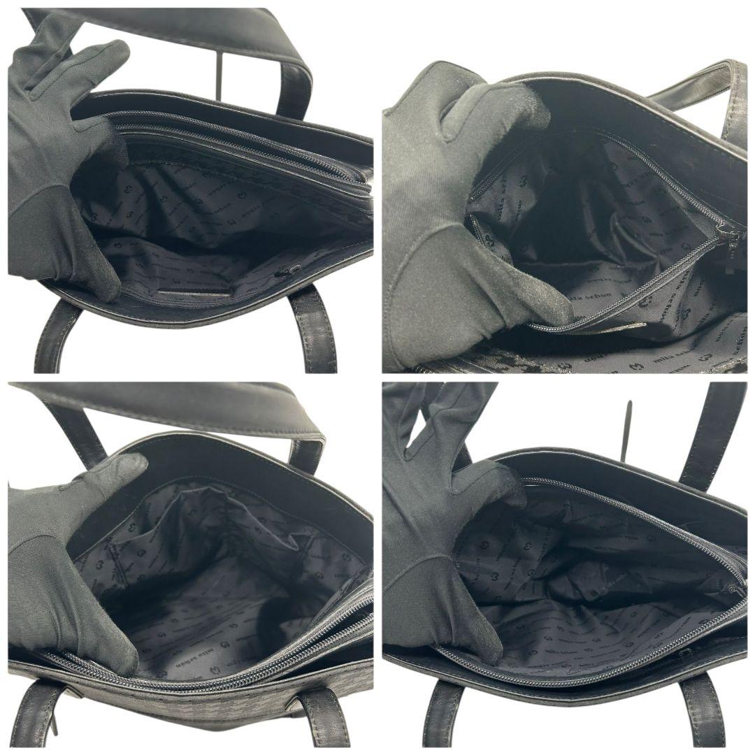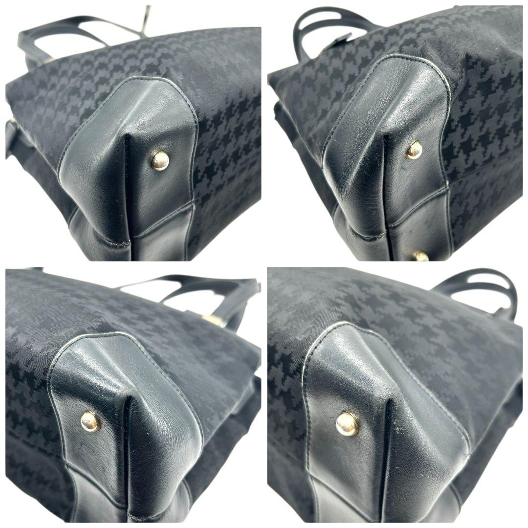 ミラショーン ハンドバッグ 黒 ブラック 千鳥格子 ワンショルダー トートバッグ 自立可 肩掛け可 ナイロン レザー 本革 ゴールド金具 ロゴ s62 mila schon 上品 高級