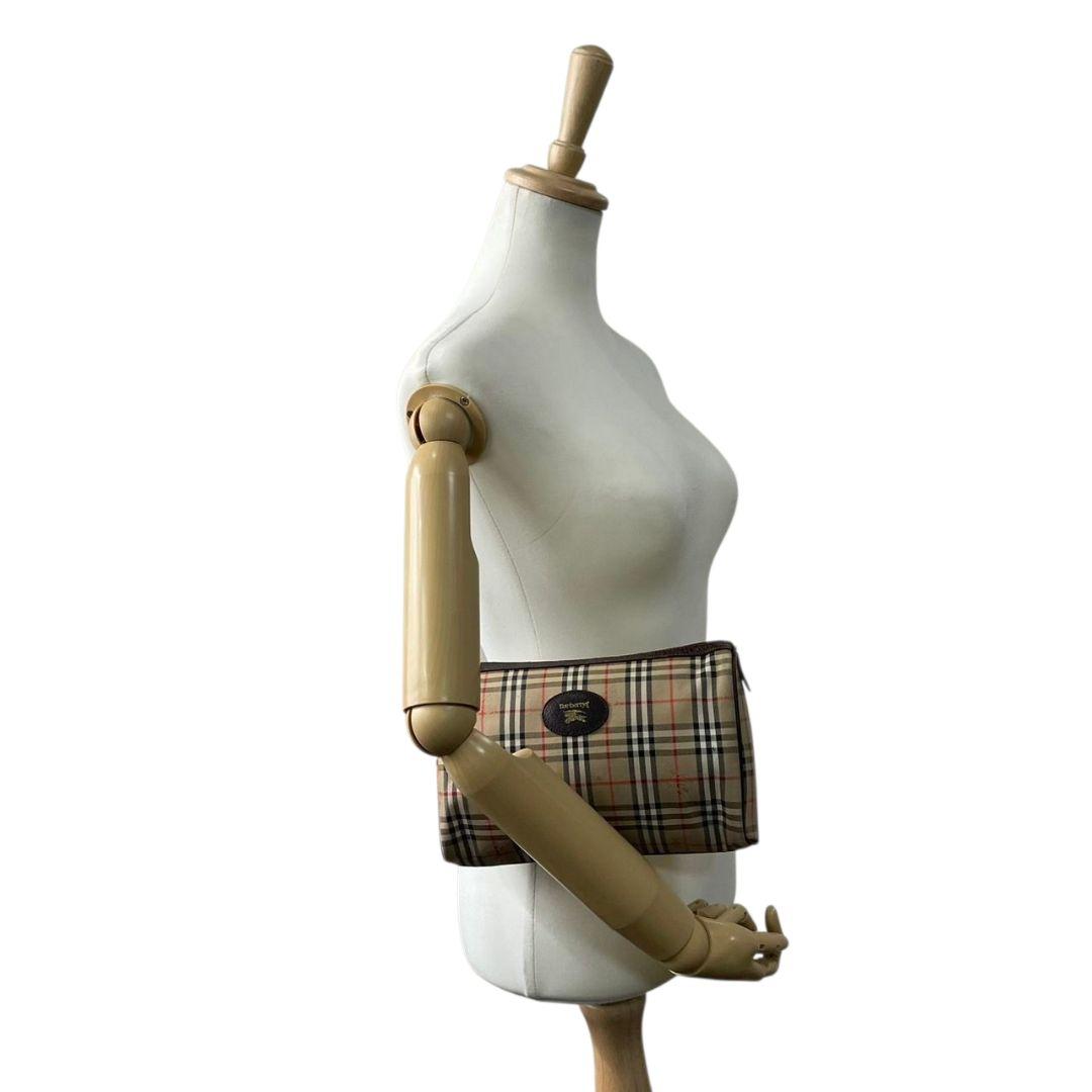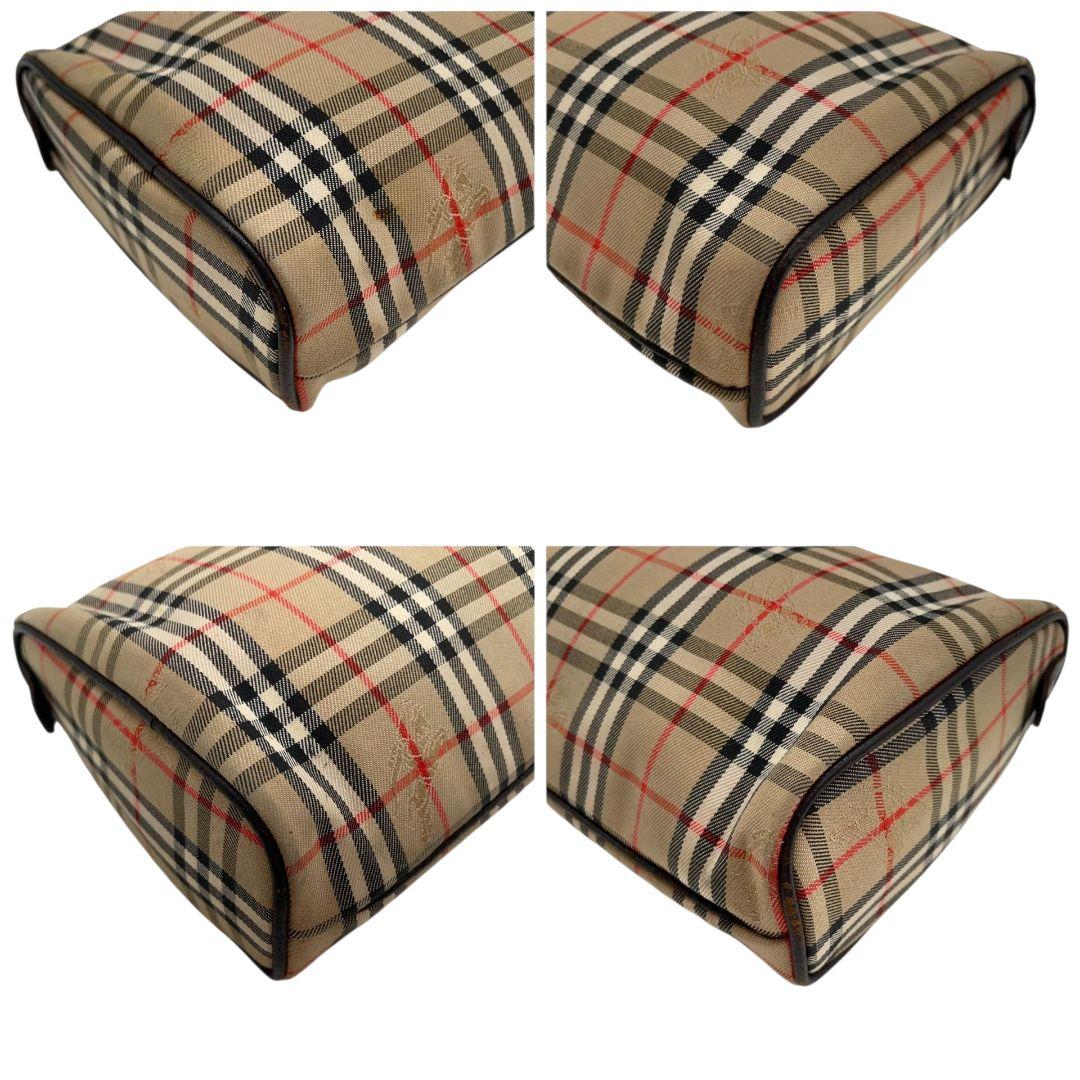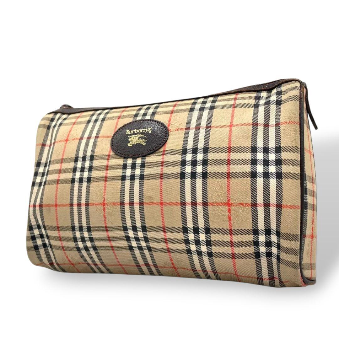 バーバリー Burberrys ポーチ ベージュ ノバチェック ホースロゴ セカンドバッグ クラッチバッグ キャンバス レザー 本革 ロゴプレート T1 レディース