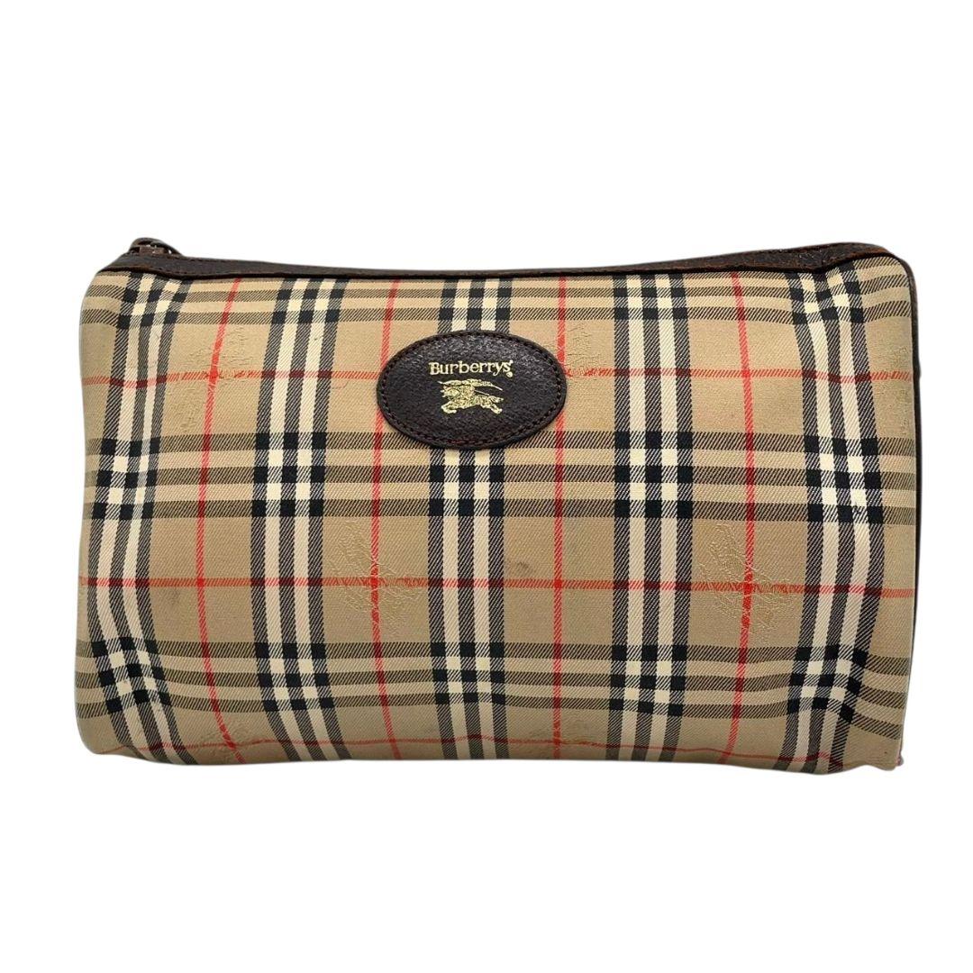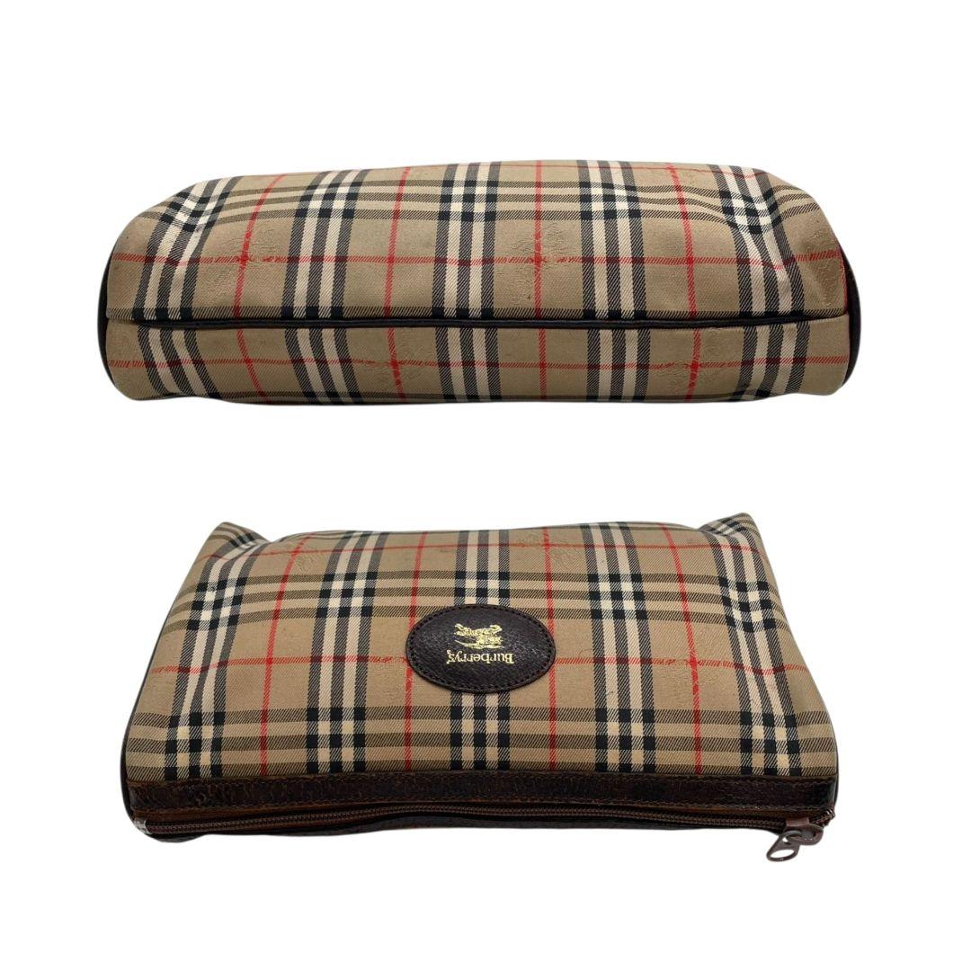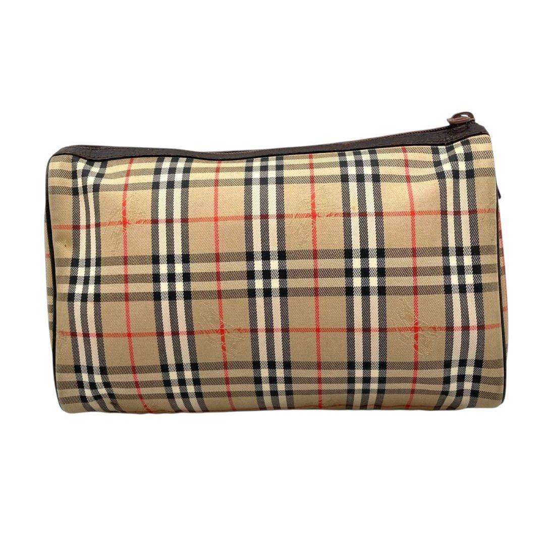 バーバリー Burberrys ポーチ ベージュ ノバチェック ホースロゴ セカンドバッグ クラッチバッグ キャンバス レザー 本革 ロゴプレート T1 レディース
