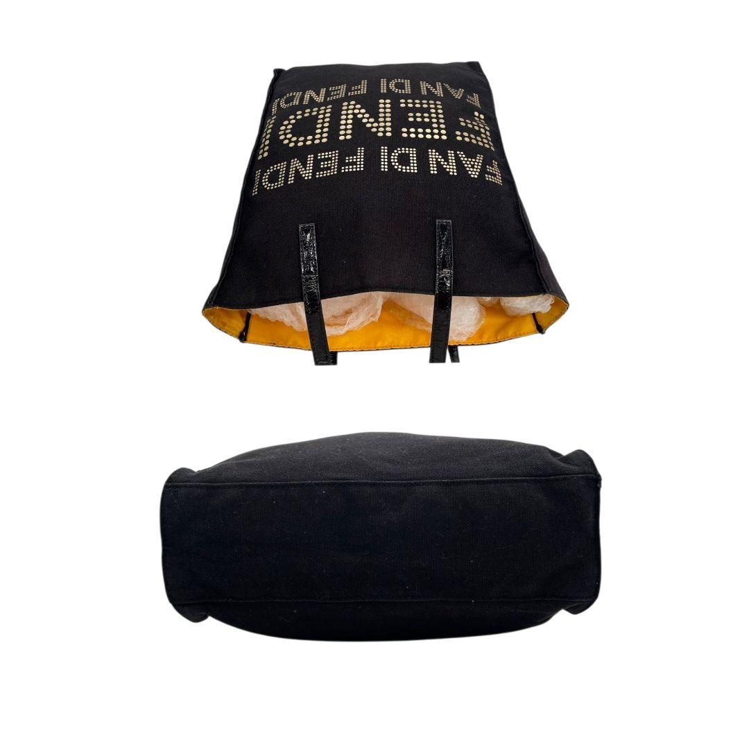 フェンディ FENDI トートバッグ デカロゴ スタッズ ワンショルダー ブラック 黒 キャンバス レザー A4収納可 肩掛け可 ハンドバッグ 本革 ヴィンテージ T1