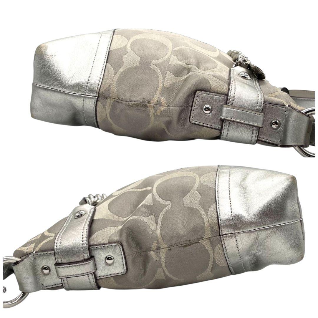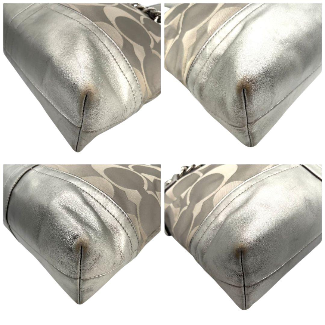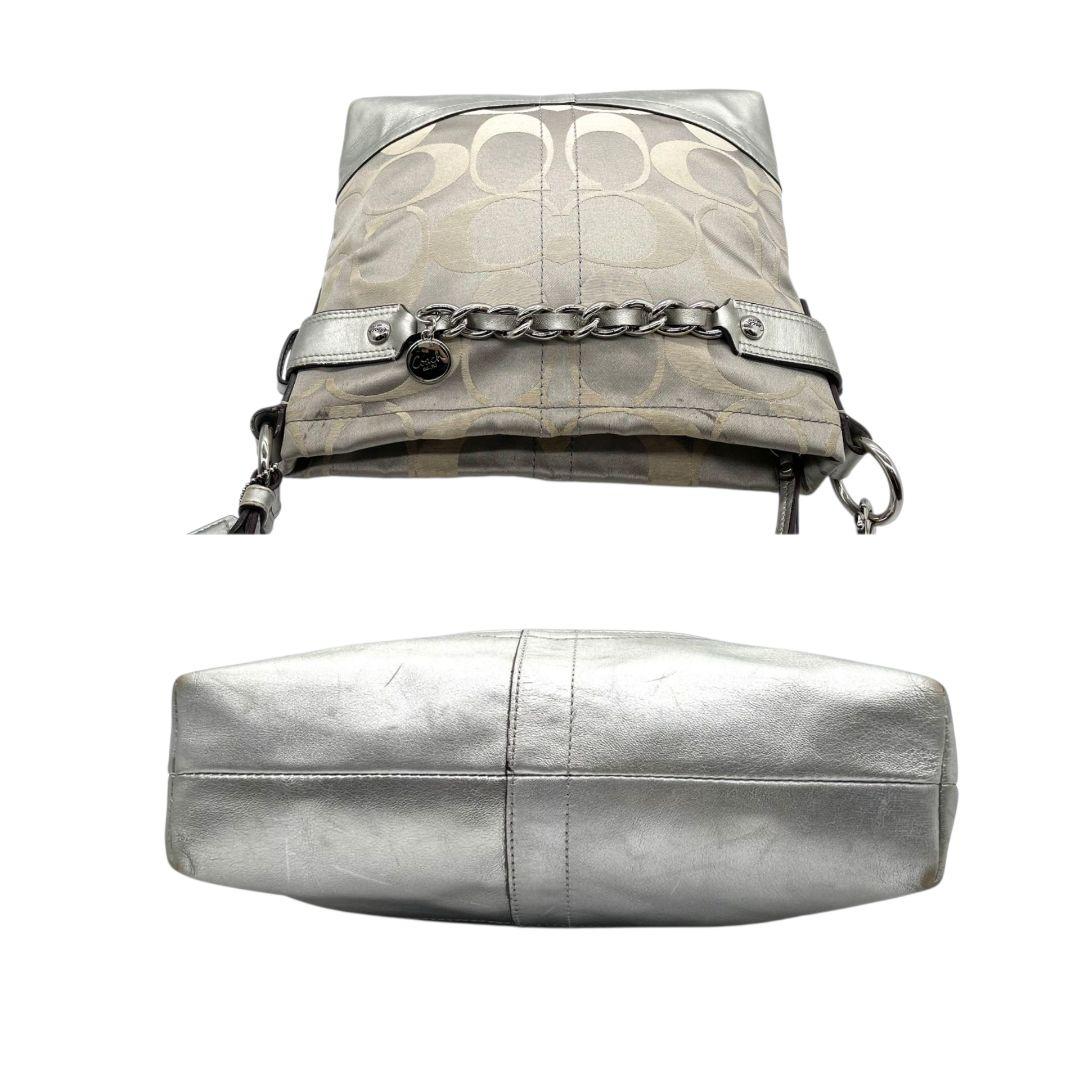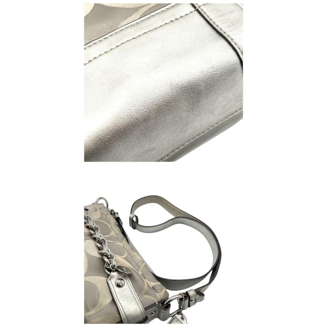 コーチ ショルダーバッグ シルバー グレー シグネチャー チェーン 斜め掛け可 キャンバス レザー 本革 ロゴタグ ロゴプレート チャーム付き COACH F18862 おしゃれ 通勤 通学