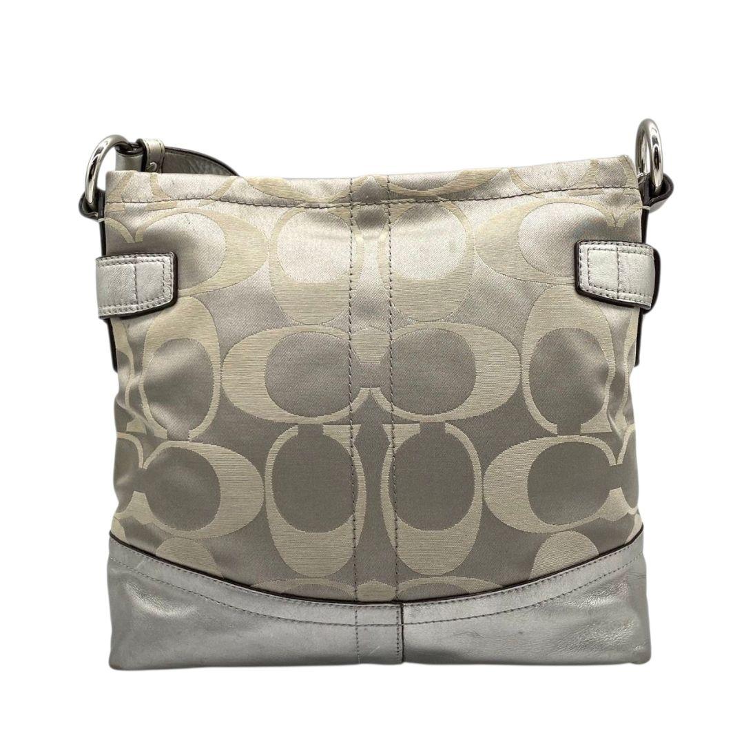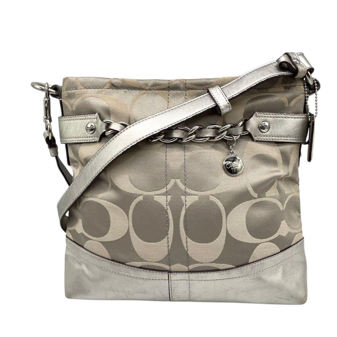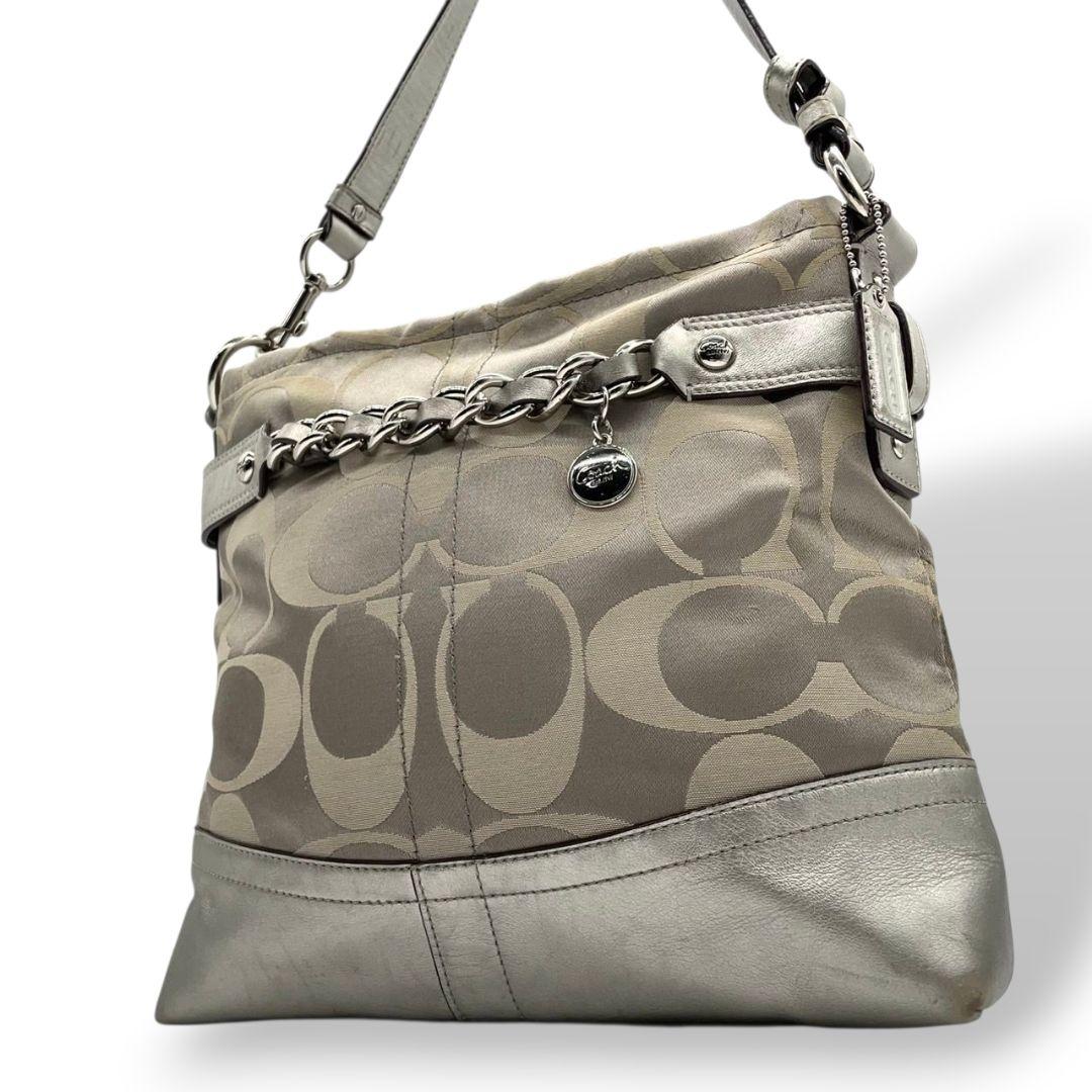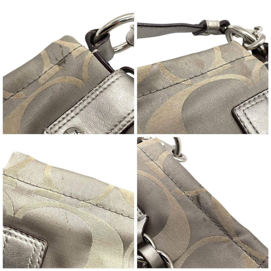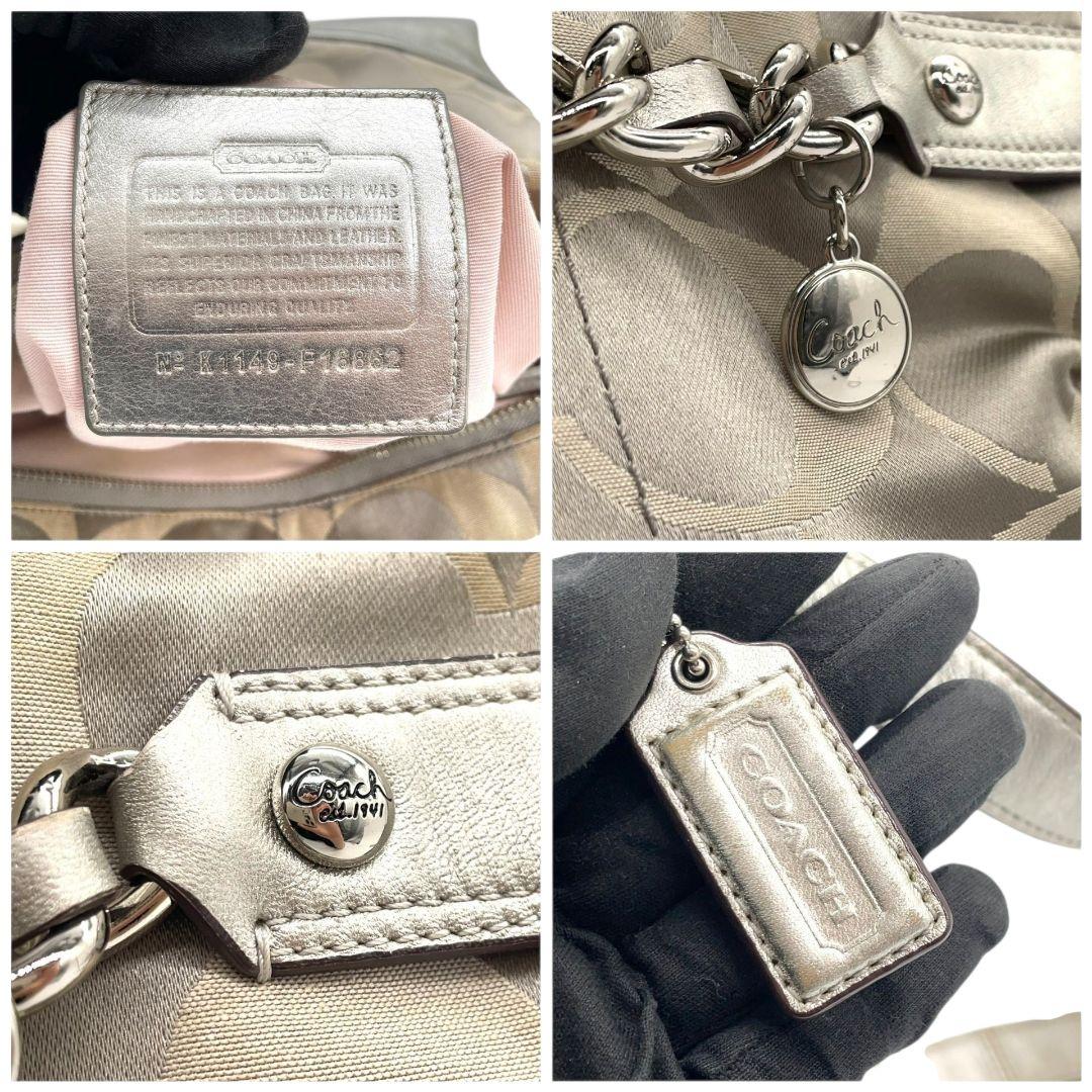 コーチ ショルダーバッグ シルバー グレー シグネチャー チェーン 斜め掛け可 キャンバス レザー 本革 ロゴタグ ロゴプレート チャーム付き COACH F18862 おしゃれ 通勤 通学