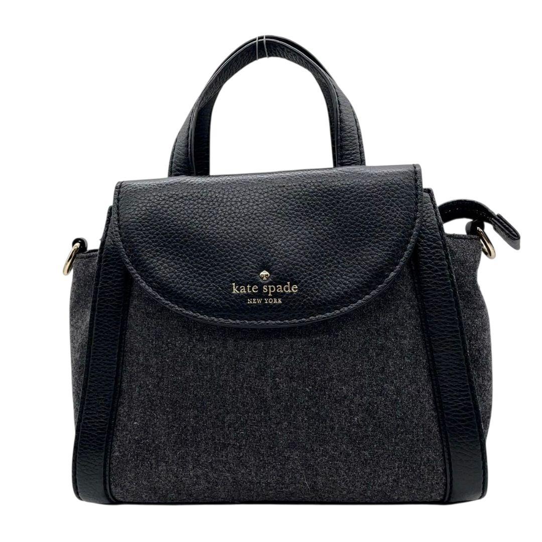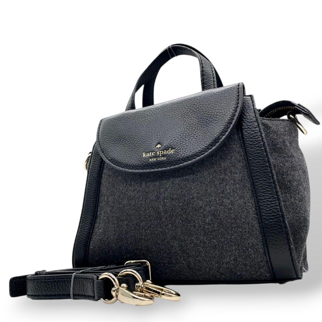 ケイトスペード ハンドバッグ グレー フラップ 2way ショルダーバッグ 斜め掛け可 トートバッグ ウール レザー 本革 ゴールド金具 ロゴ kate spade 上品 おしゃれ 通勤 通学