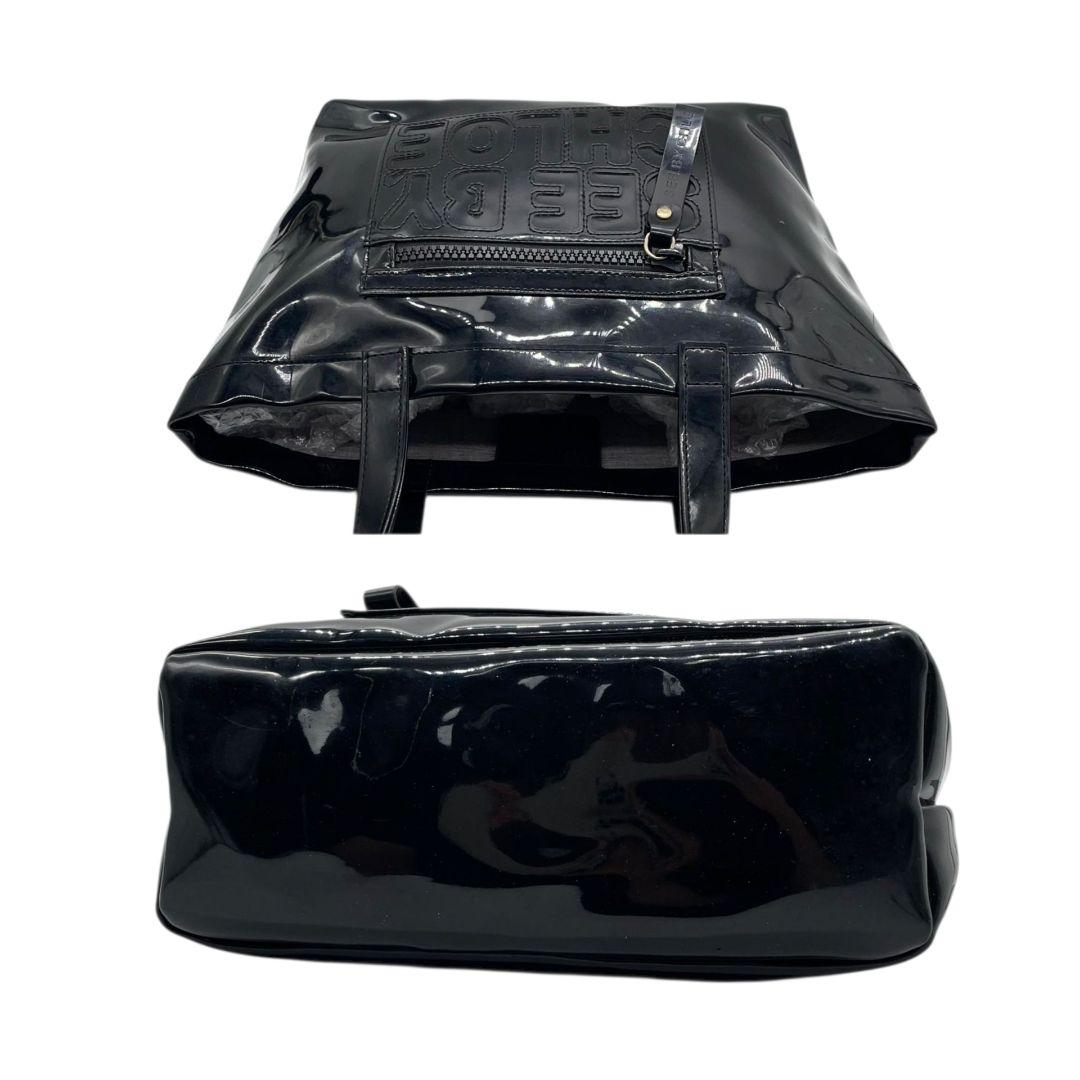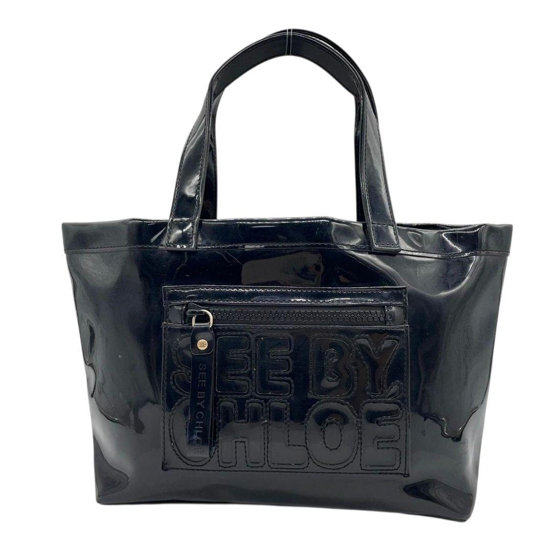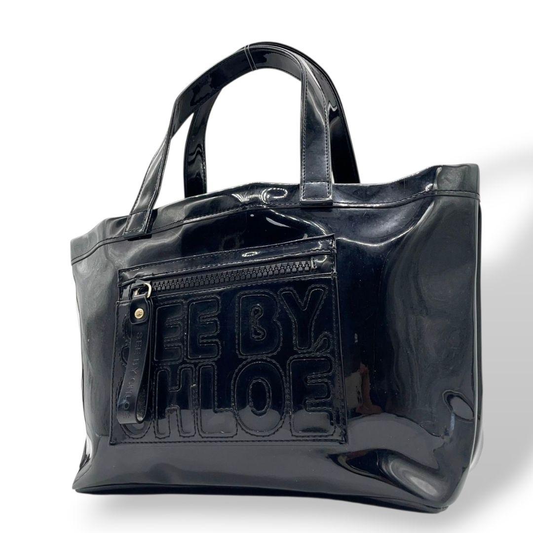 美品 シーバイクロエ トートバッグ 黒 デカロゴ シリコン SEE BY CHLOE u15 ワンショルダー ハンドバッグ ブラック ゴールド金具 肩掛け可 カジュアル モード おしゃれ