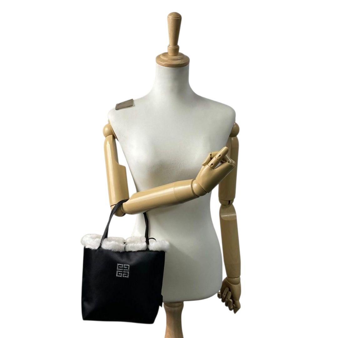 ジバンシー ハンドバッグ 黒 4Gロゴ ファー ラインストーン ナイロン u15 トートバッグ GIVENCHY ブラック エレガント ロゴデザイン コンパクトバッグ