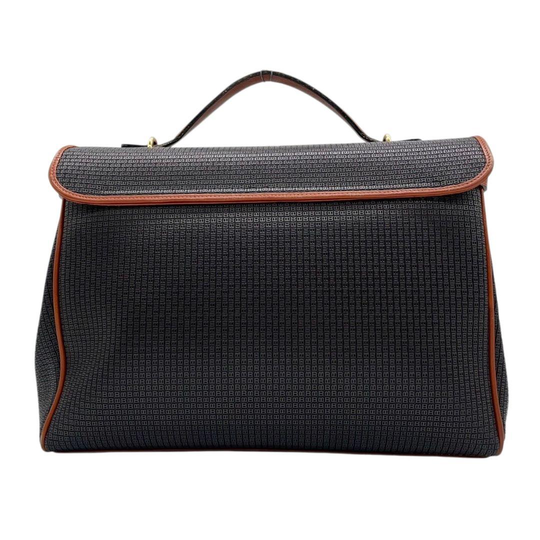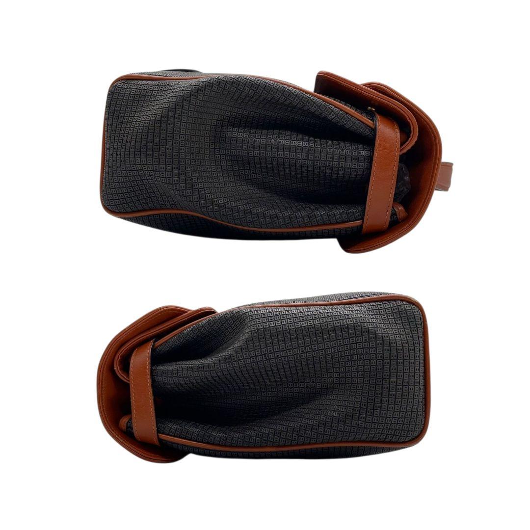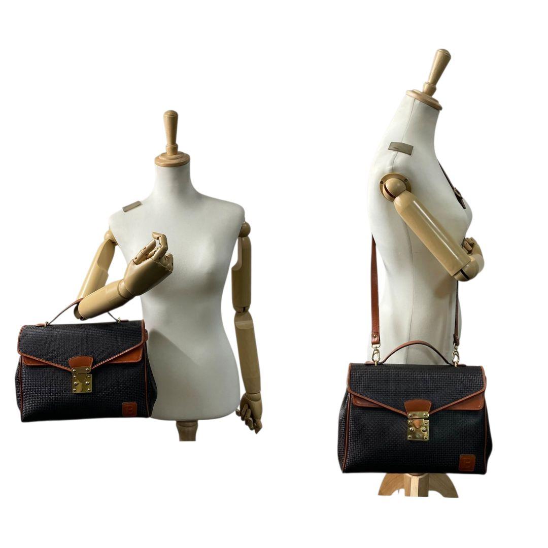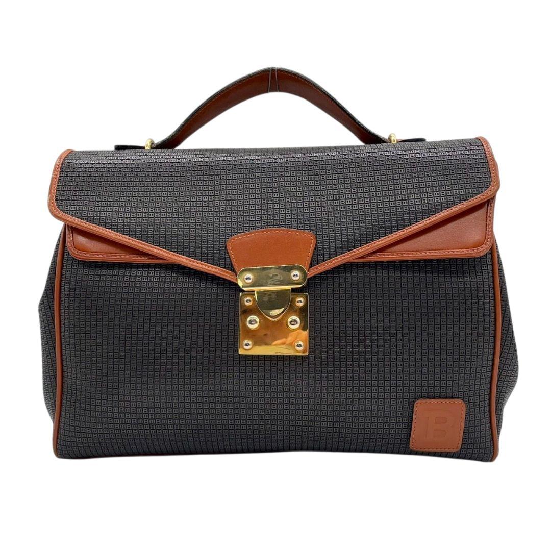 美品 バリー ハンドバッグ 黒 総柄 2WAY フラップ 斜め掛け可 ショルダーバッグ トートバッグ PVC レザー 本革 ゴールド金具 ロゴ ブラック ブラウン BALLY
