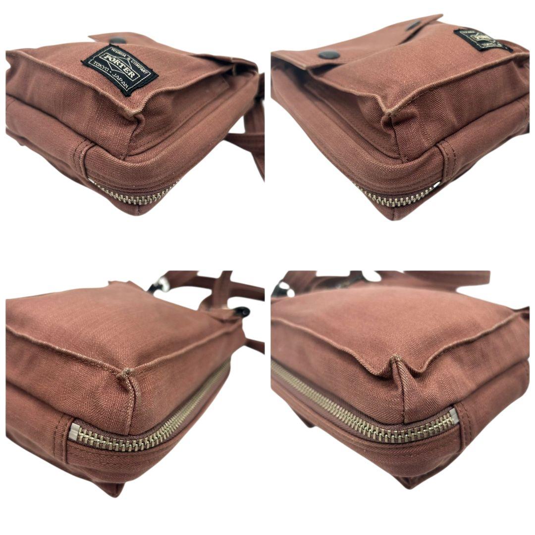 美品 ポーター ショルダーバッグ 茶 ブラウン スモーキー フラップ ロゴタグ キャンバス 斜め掛け可 バーティカルショルダーバッグ カジュアル PORTER s69