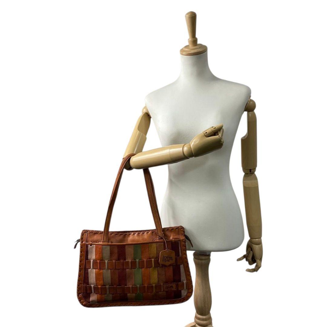 イビザ ハンドバッグ 茶 ブラウン パッチワーク A4収納 ワンショルダー レザー 本革 肩掛け可 マルチカラー ロゴタグ ロゴ トートバッグ 個性派 おしゃれ IBIZA T1