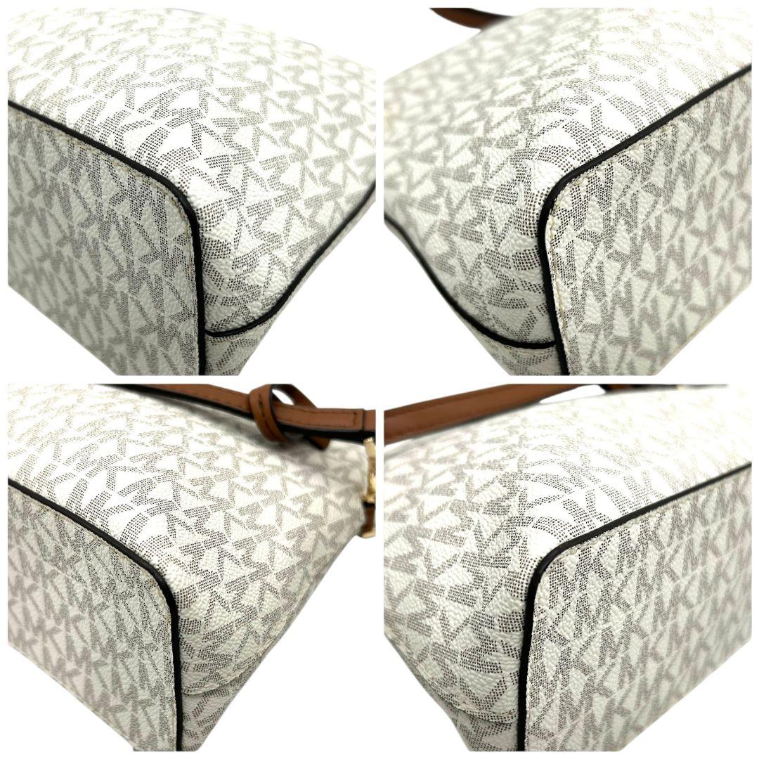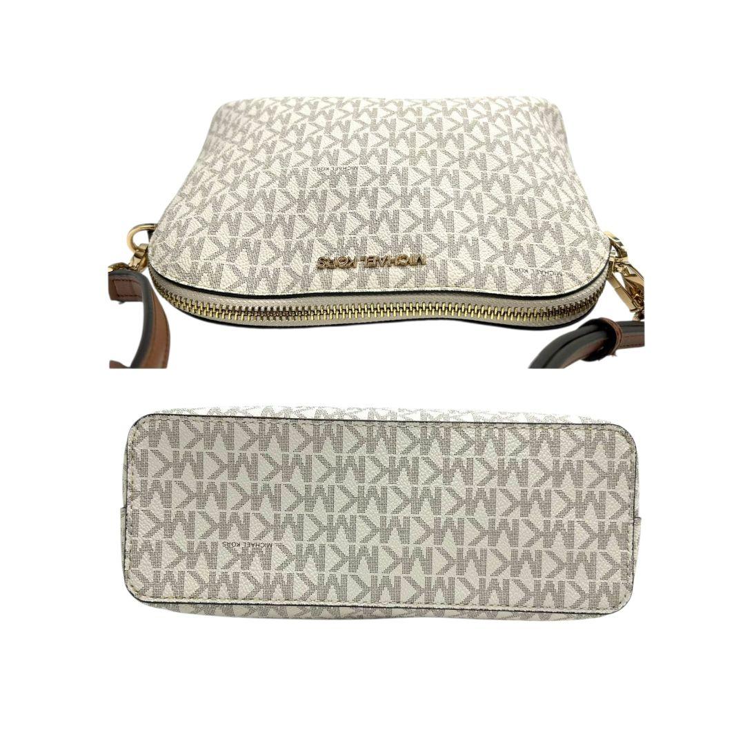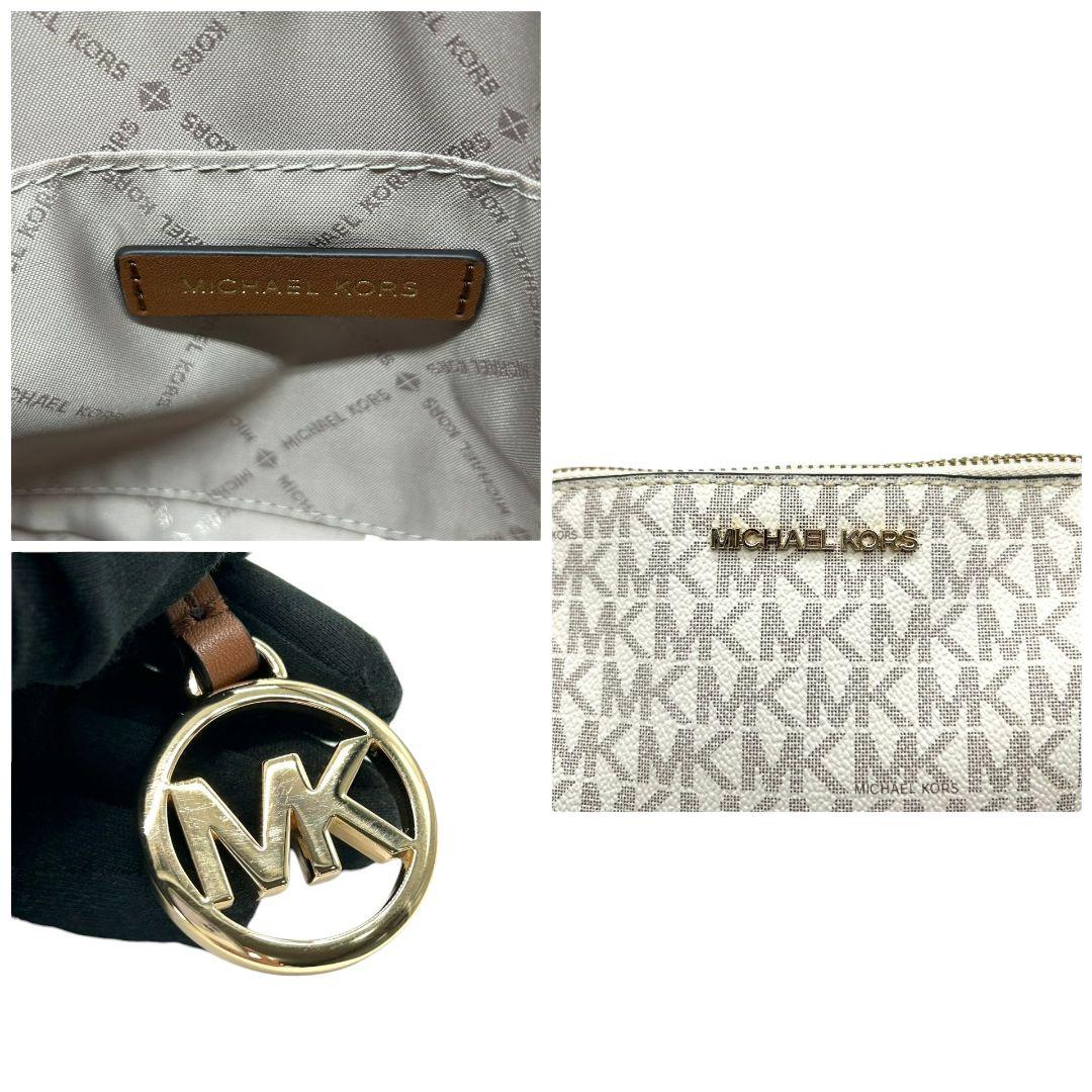 美品 マイケルコース ショルダーバッグ 白 モノグラム 斜め掛け可 s15 PVC レザー 本革 ホワイト ブラウン 自立可 ゴールド金具 ロゴ チャーム付き