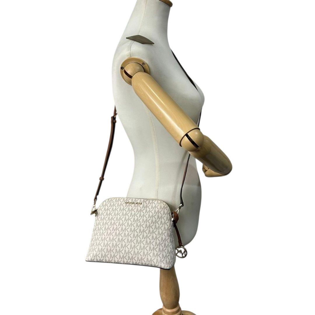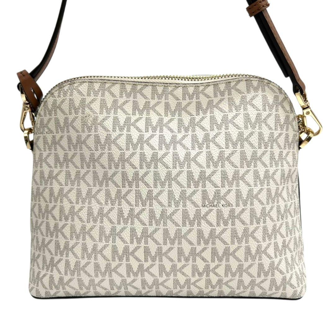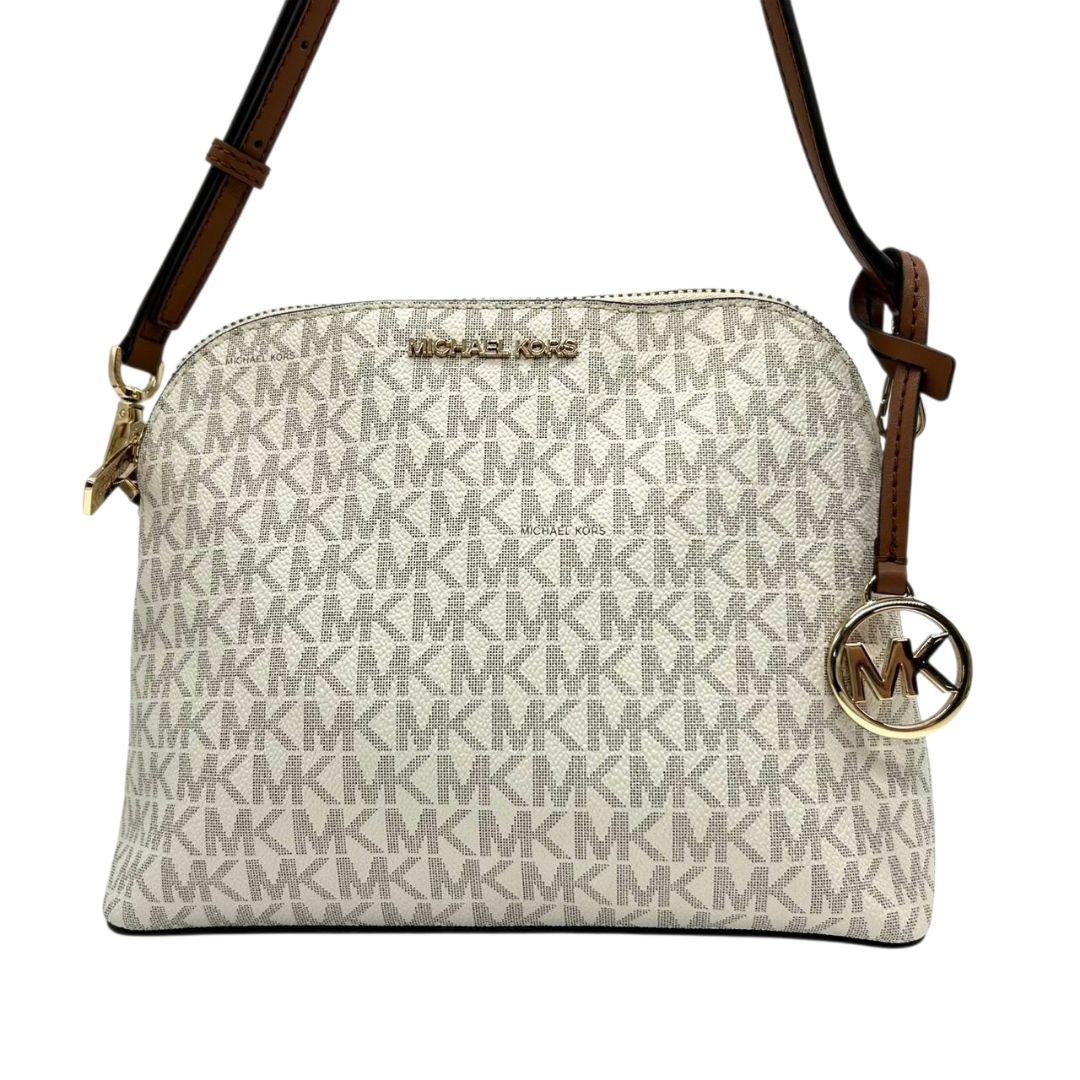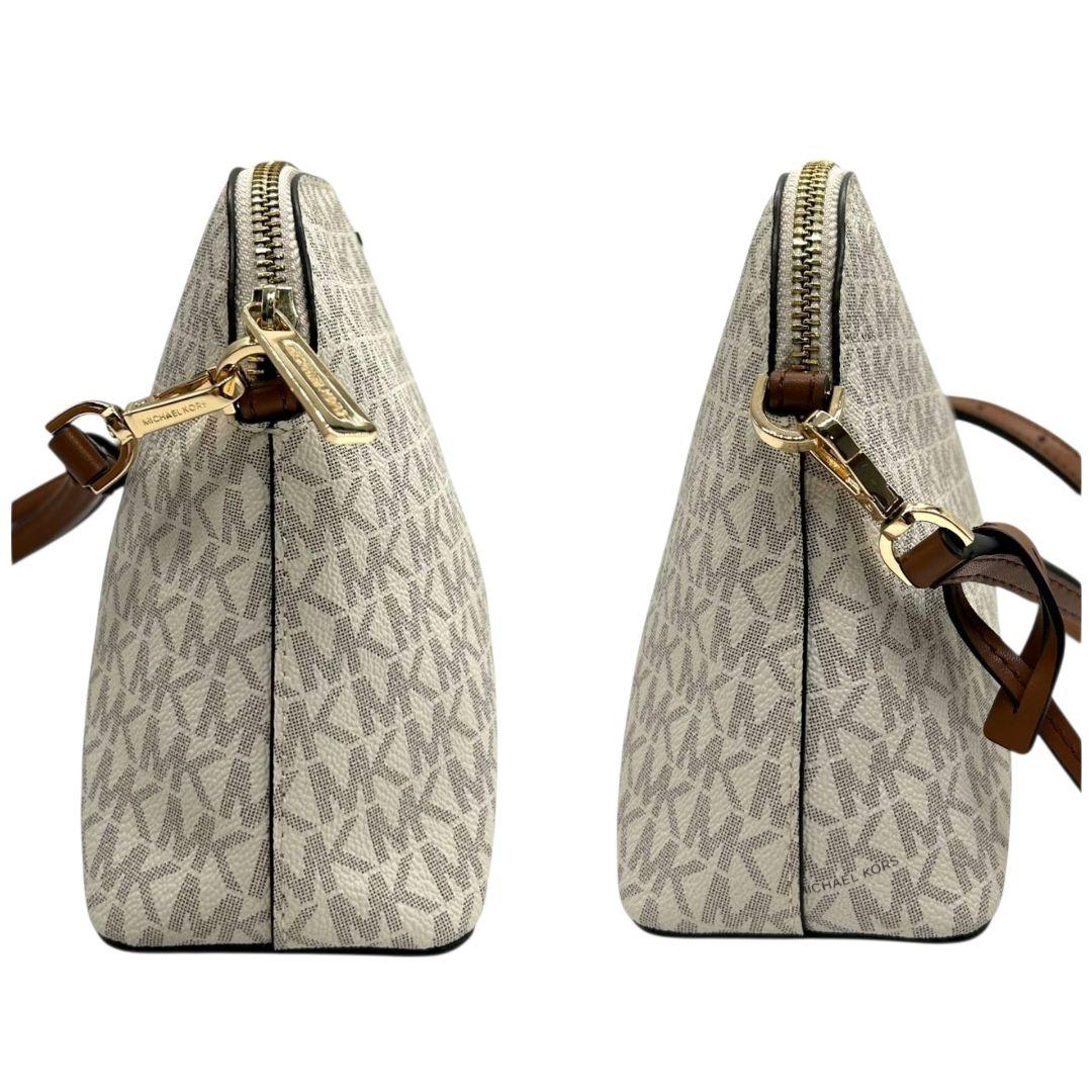 美品 マイケルコース ショルダーバッグ 白 モノグラム 斜め掛け可 s15 PVC レザー 本革 ホワイト ブラウン 自立可 ゴールド金具 ロゴ チャーム付き