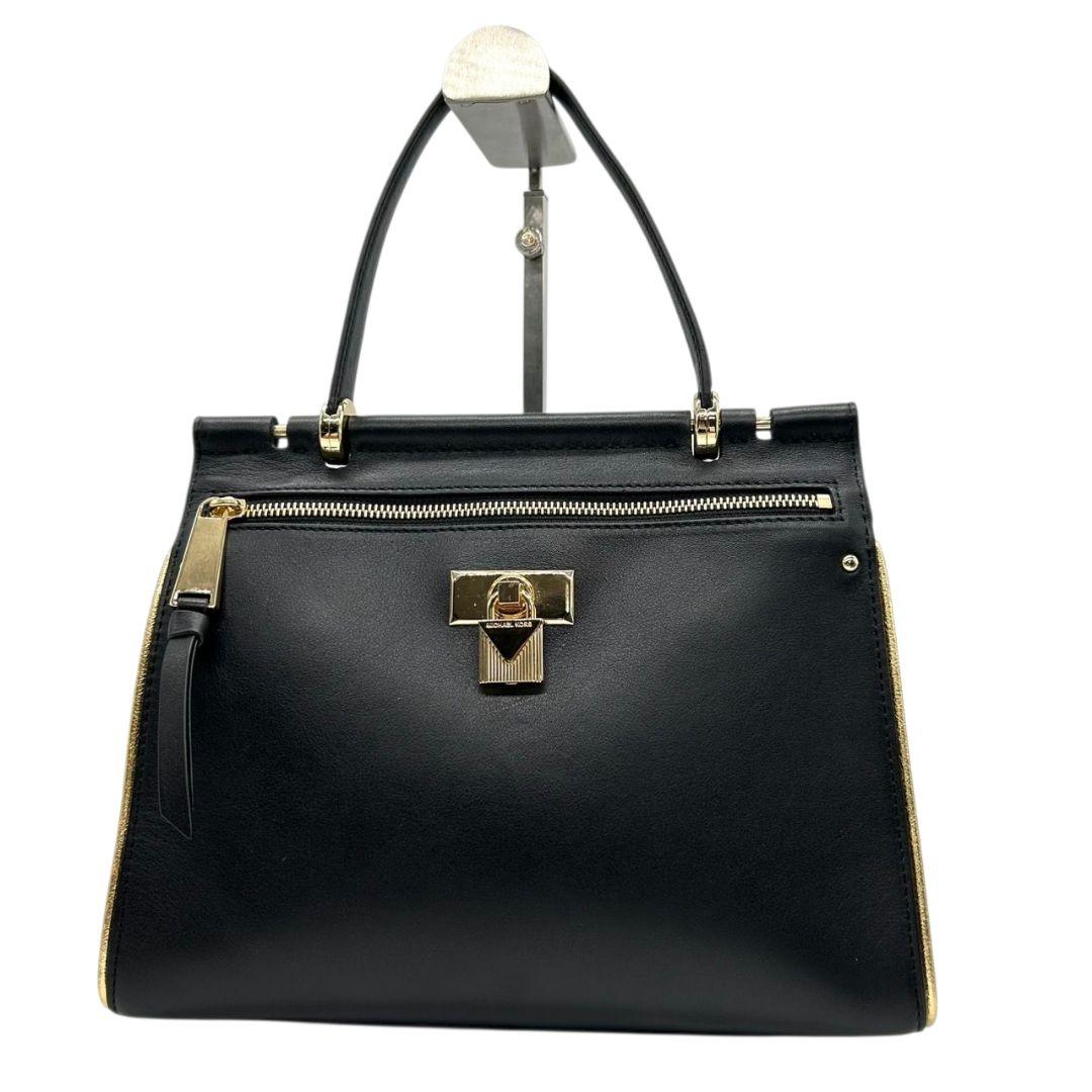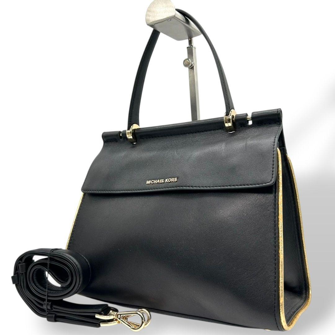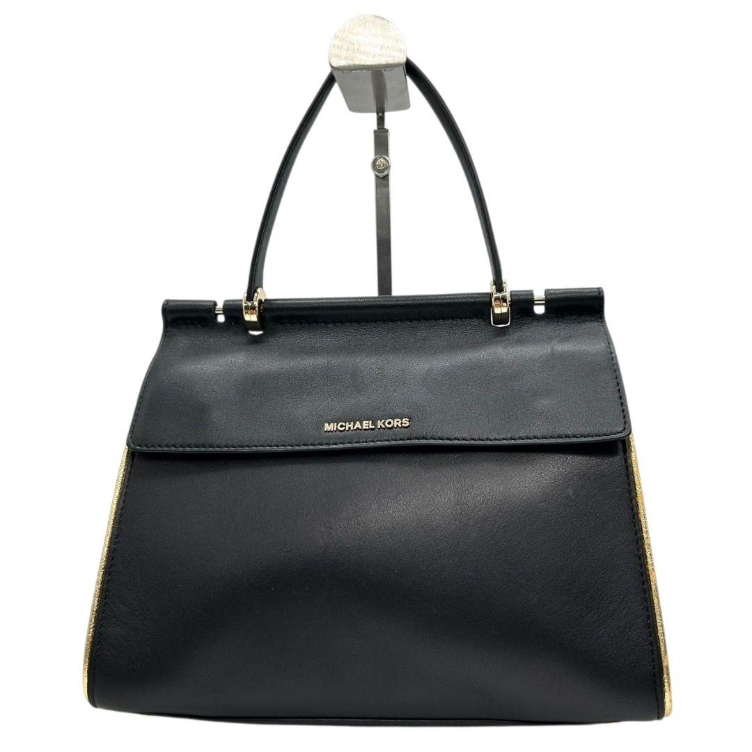 マイケルコース ハンドバッグ 黒 ブラック フラップ 2way トートバッグ ショルダーバッグ 斜め掛け可 レザー 本革 ゴールド金具 ロゴ s15 MICHAEL KORS