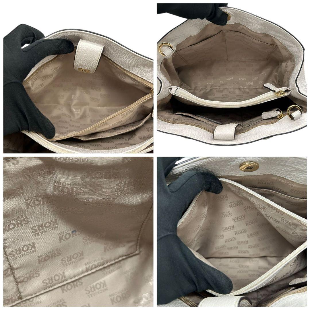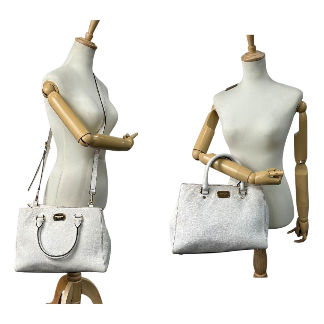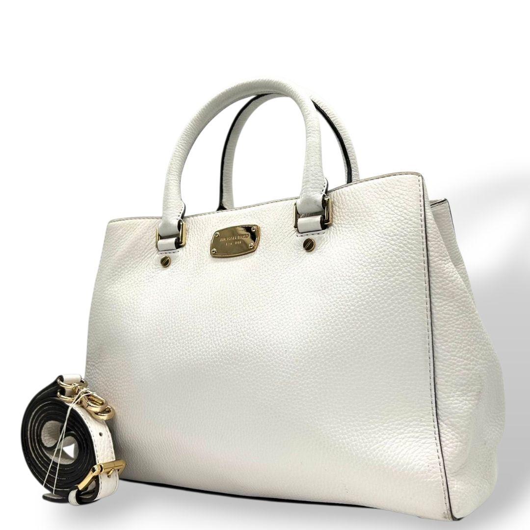 マイケルコース ハンドバッグ 白 ホワイト 2way レザー 本革 自立可 斜め掛け可 ショルダーバッグ トートバッグ A4収納 ゴールド金具 ロゴプレート E2
