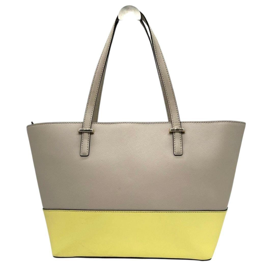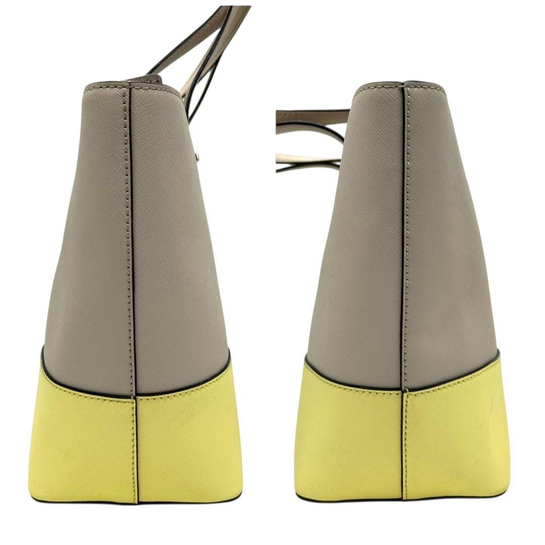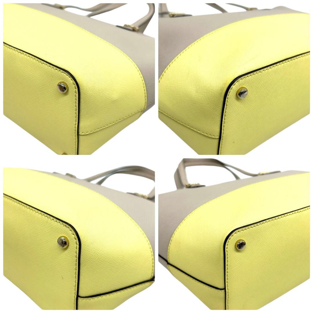 ケイトスペード トートバッグ グレー イエロー 黄 バイカラー PVC 自立可 ワンショルダー 肩掛け可 ハンドバッグ ゴールド金具 ロゴ kate spade E2