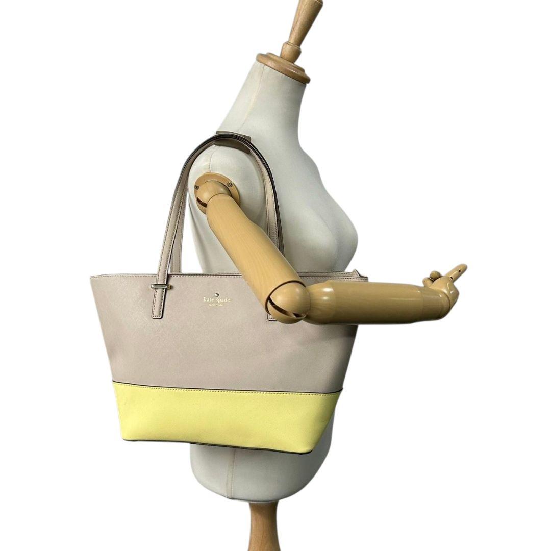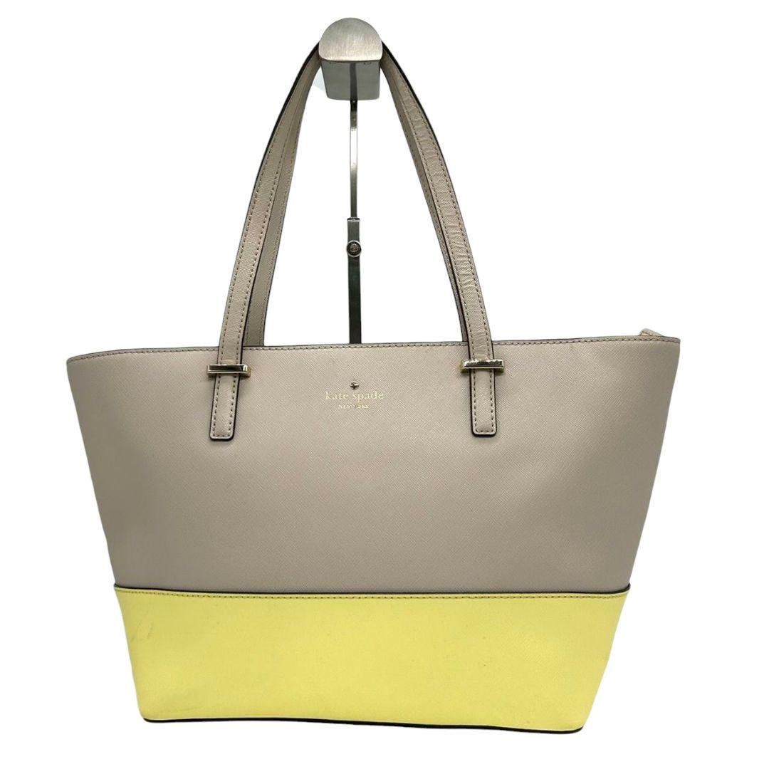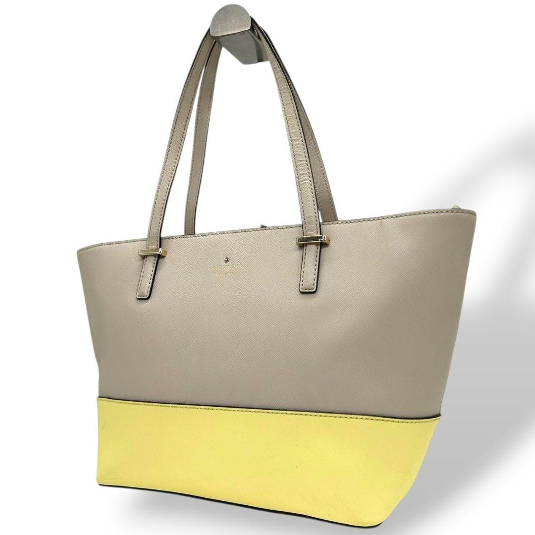 ケイトスペード トートバッグ グレー イエロー 黄 バイカラー PVC 自立可 ワンショルダー 肩掛け可 ハンドバッグ ゴールド金具 ロゴ kate spade E2