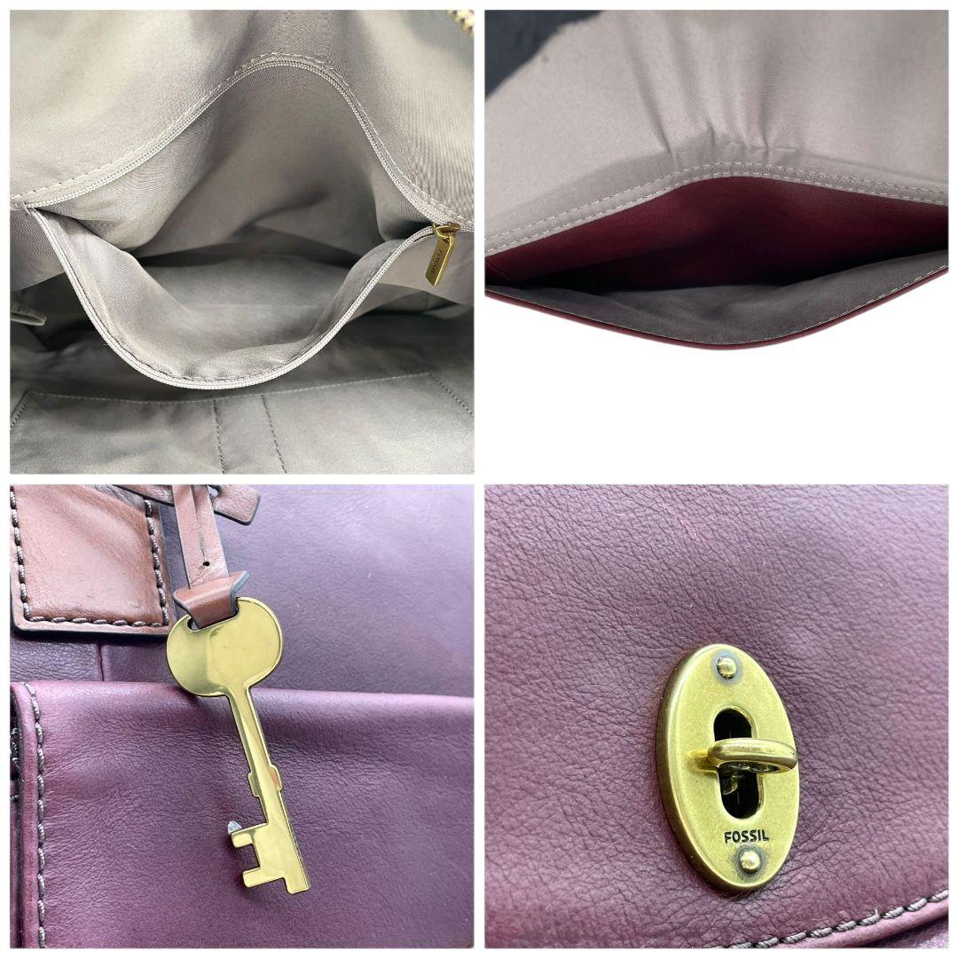 フォッシル FOSSIL トートバッグ 紫 パープル A4収納 ワンショルダー レザー 本革 フラップ 肩掛け可 ハンドバッグ ゴールド金具 ターンロック チャーム付き T1 レディース