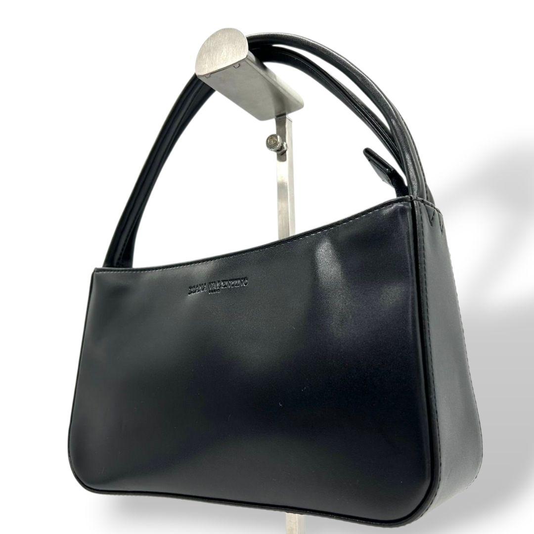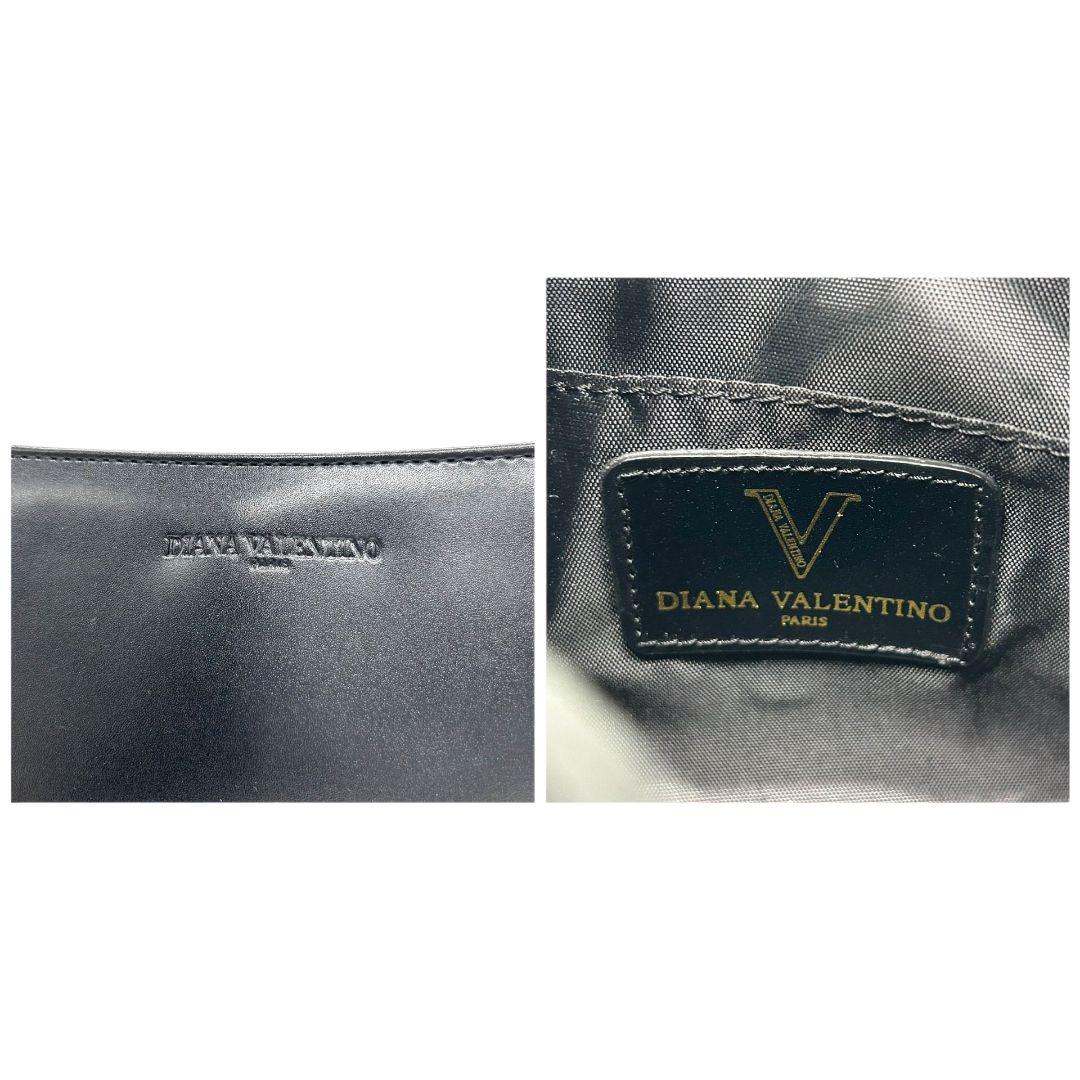 ダイアナバレンチノ ハンドバッグ 黒 ロゴ レザー 自立可 本革 s61 トートバッグ ブラック ゴールド金具