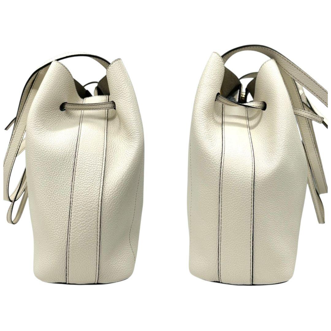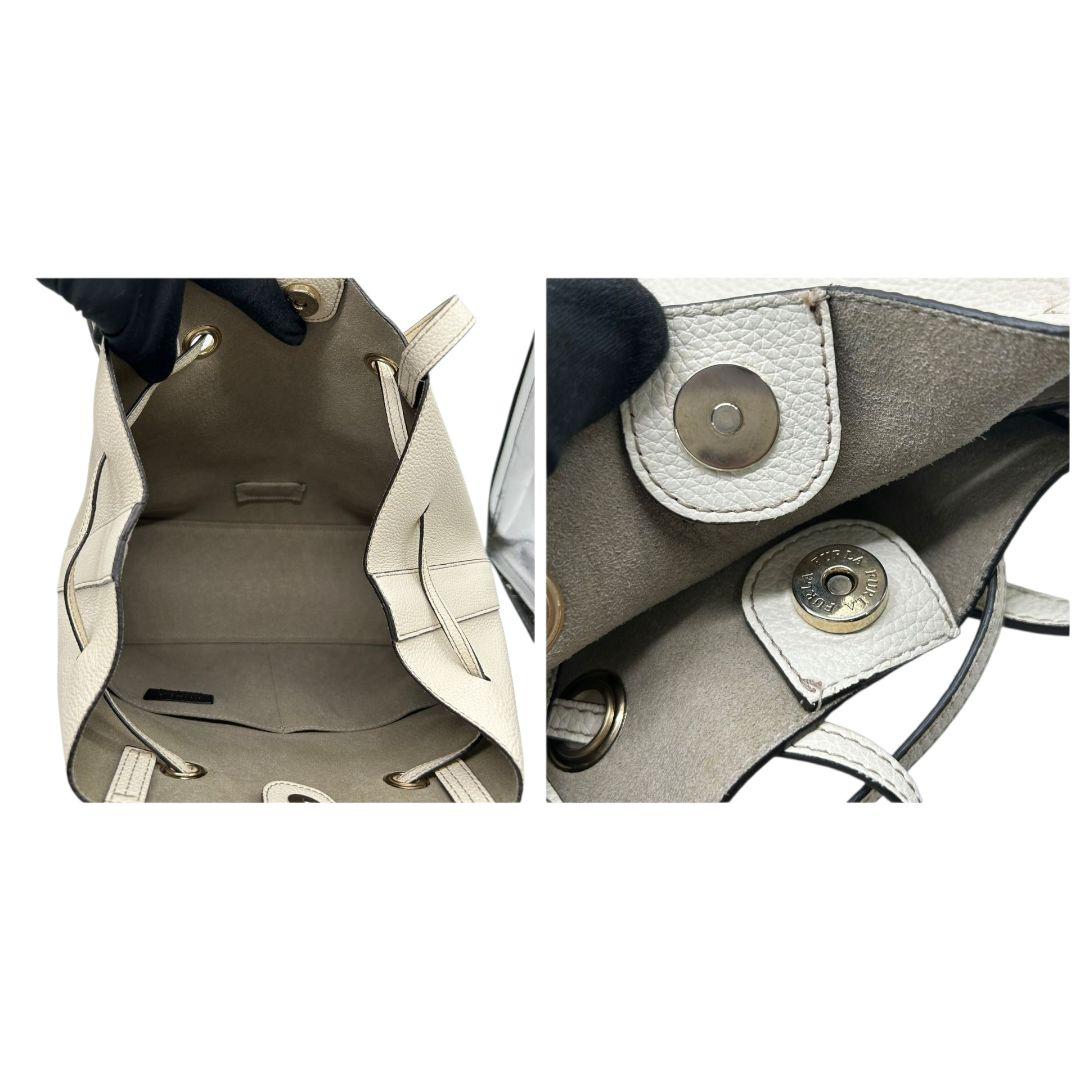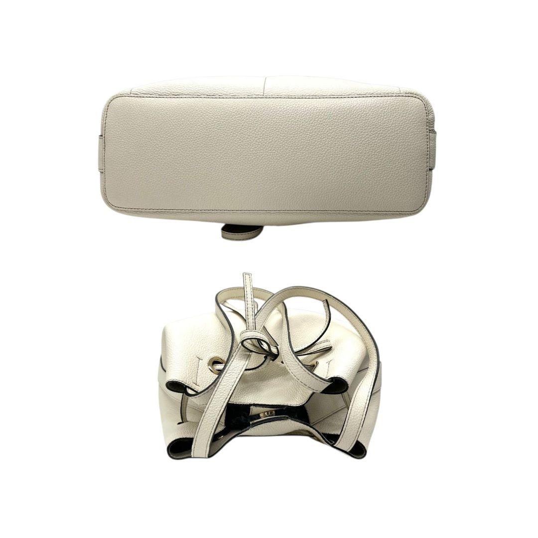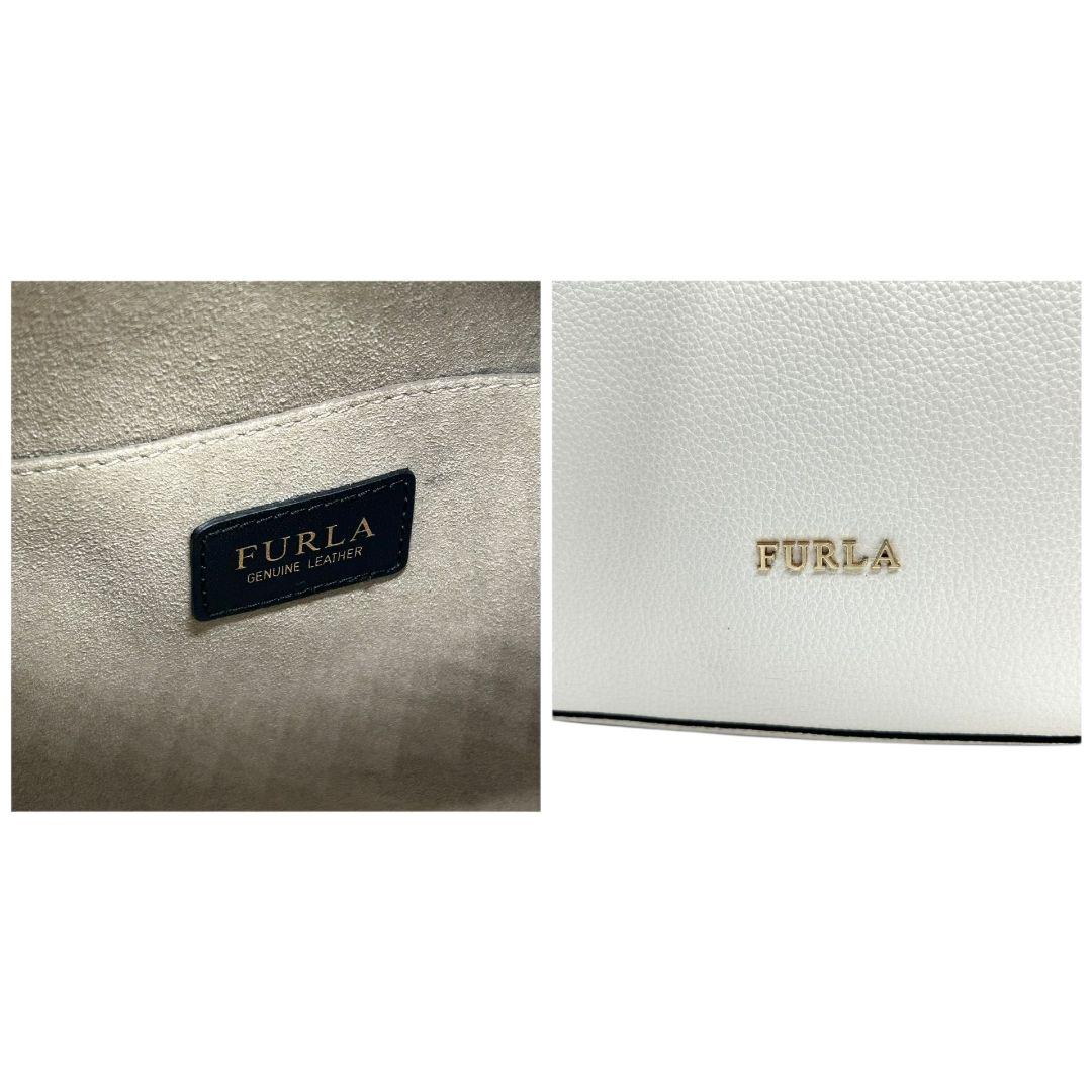 美品 フルラ ショルダーバッグ 白 巾着 レザー 本革 ワンショルダー s9 ハンドバッグ トートバッグ 肩掛け可 肩かけ可 ホワイト ゴールド金具 ロゴ 自立可 FURLA