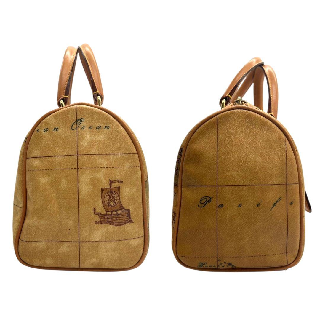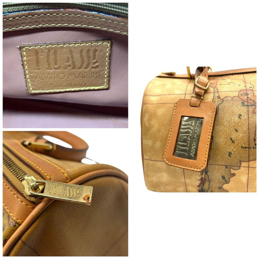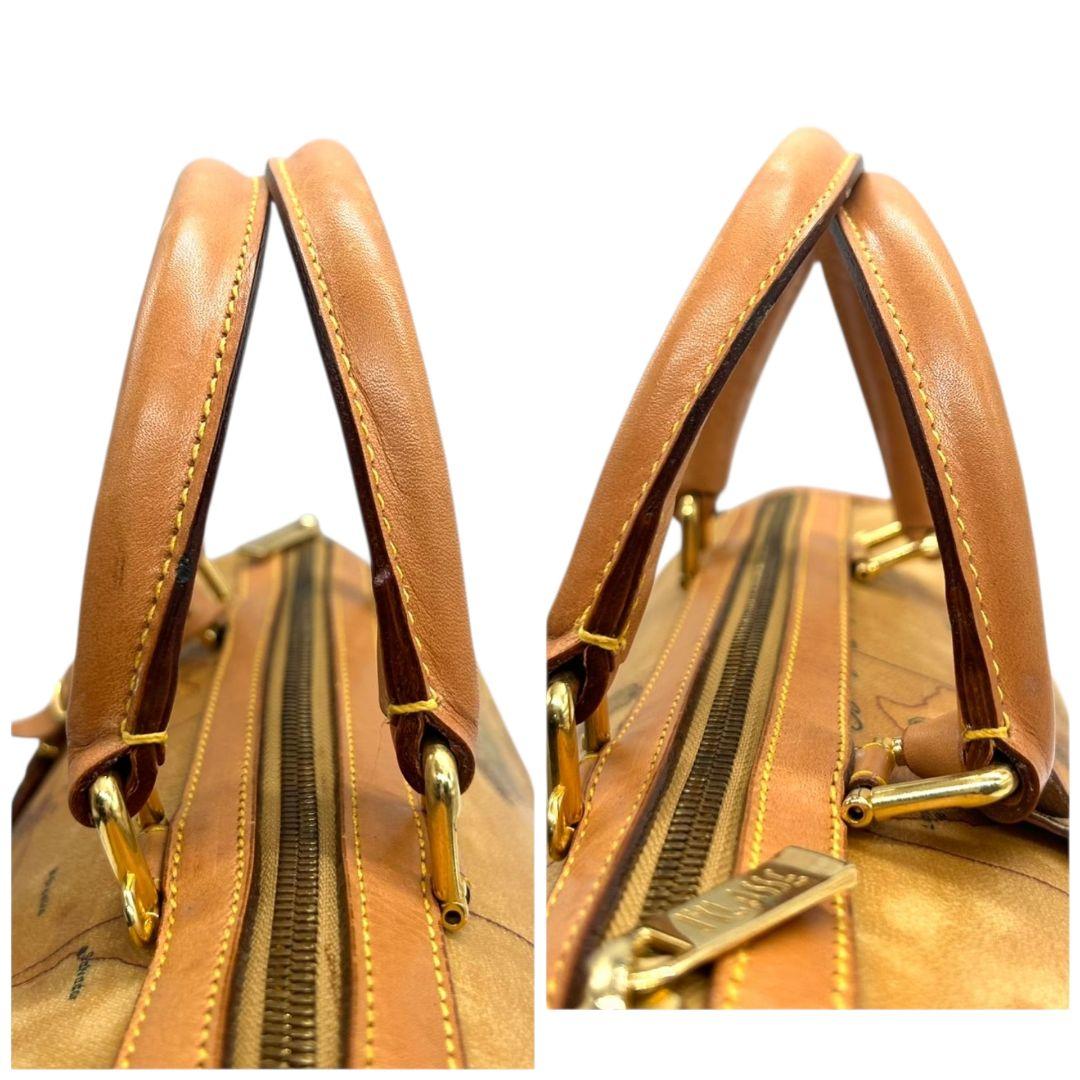 プリマクラッセ ボストンバッグ 茶 ブラウン 地図柄 世界地図 2way ショルダーバッグ ハンドバッグ トートバッグ 斜め掛け可 PVC ロゴタグ s50 PRIMA CLASSE