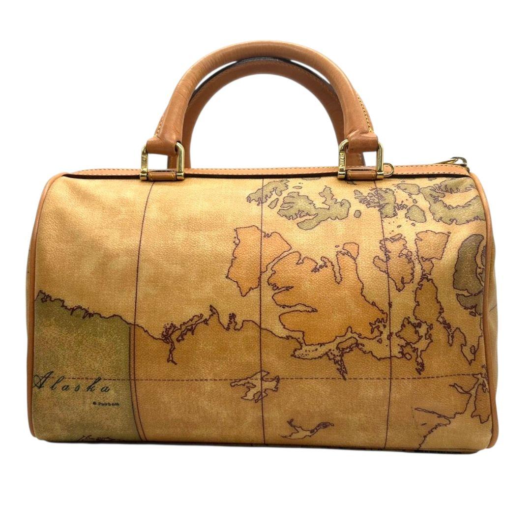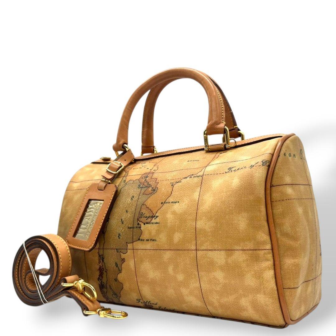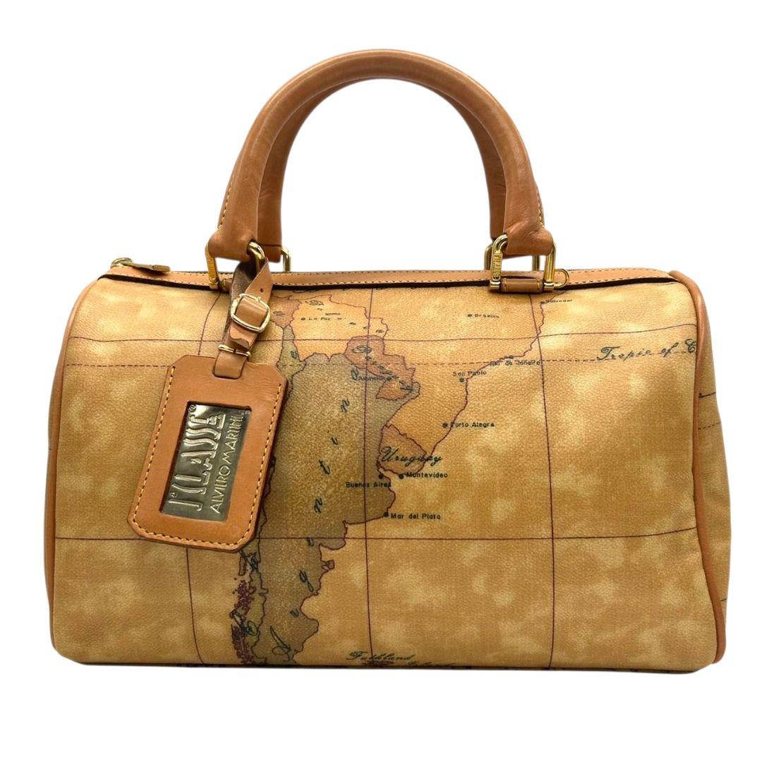 プリマクラッセ ボストンバッグ 茶 ブラウン 地図柄 世界地図 2way ショルダーバッグ ハンドバッグ トートバッグ 斜め掛け可 PVC ロゴタグ s50 PRIMA CLASSE