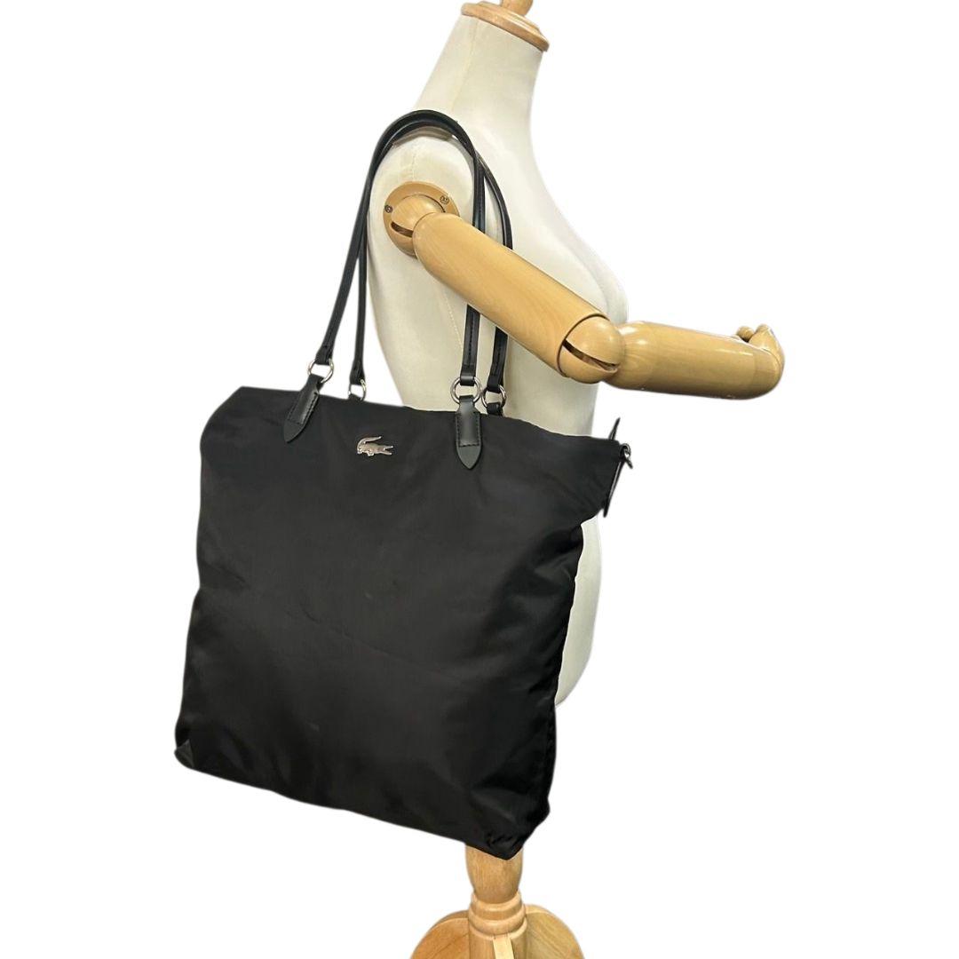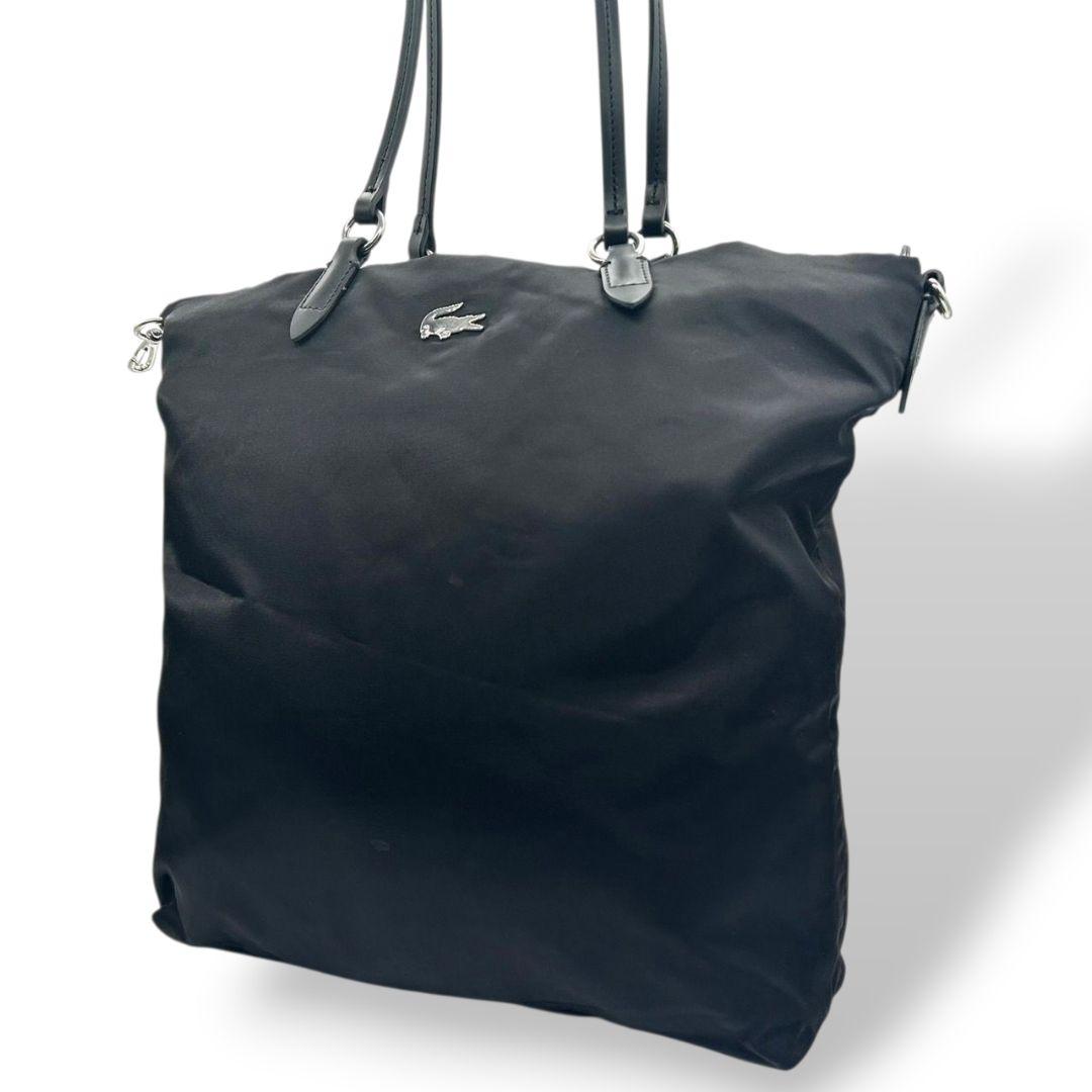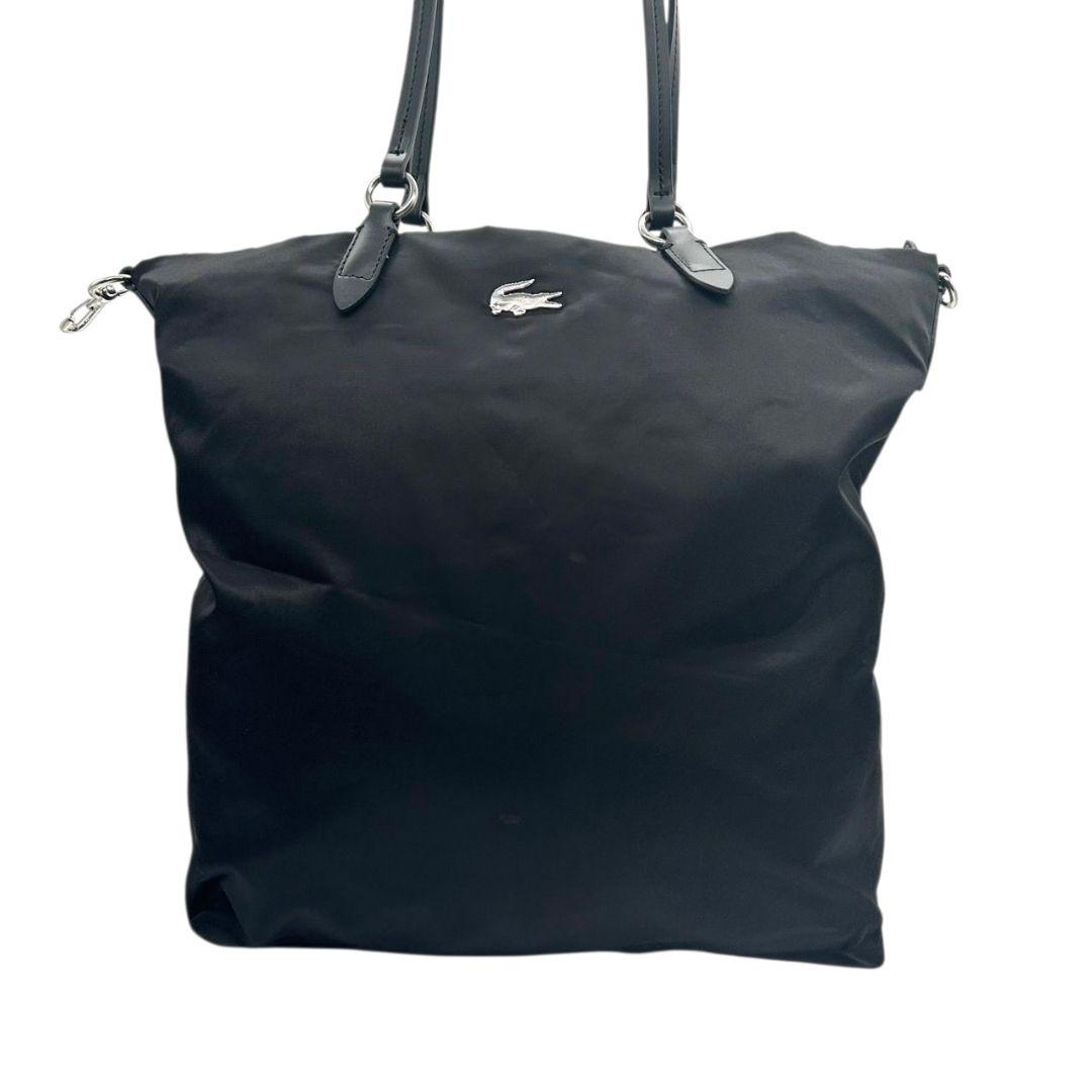 ラコステ トートバッグ 黒 ブラック ワニロゴ A4収納 ワンショルダー ナイロン ハンドバッグ 肩掛け可 シルバー金具 T7 LACOSTE 軽量 通勤 通学 おしゃれ