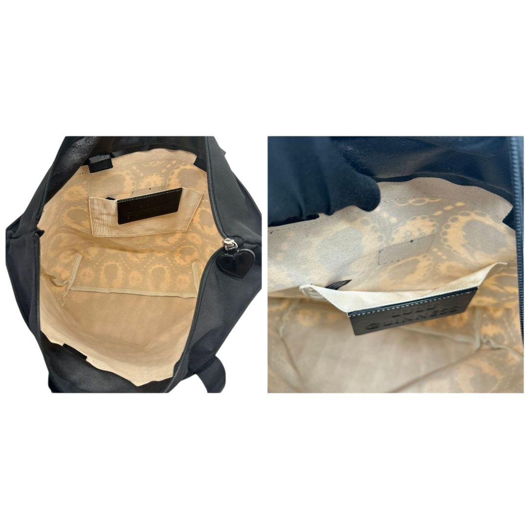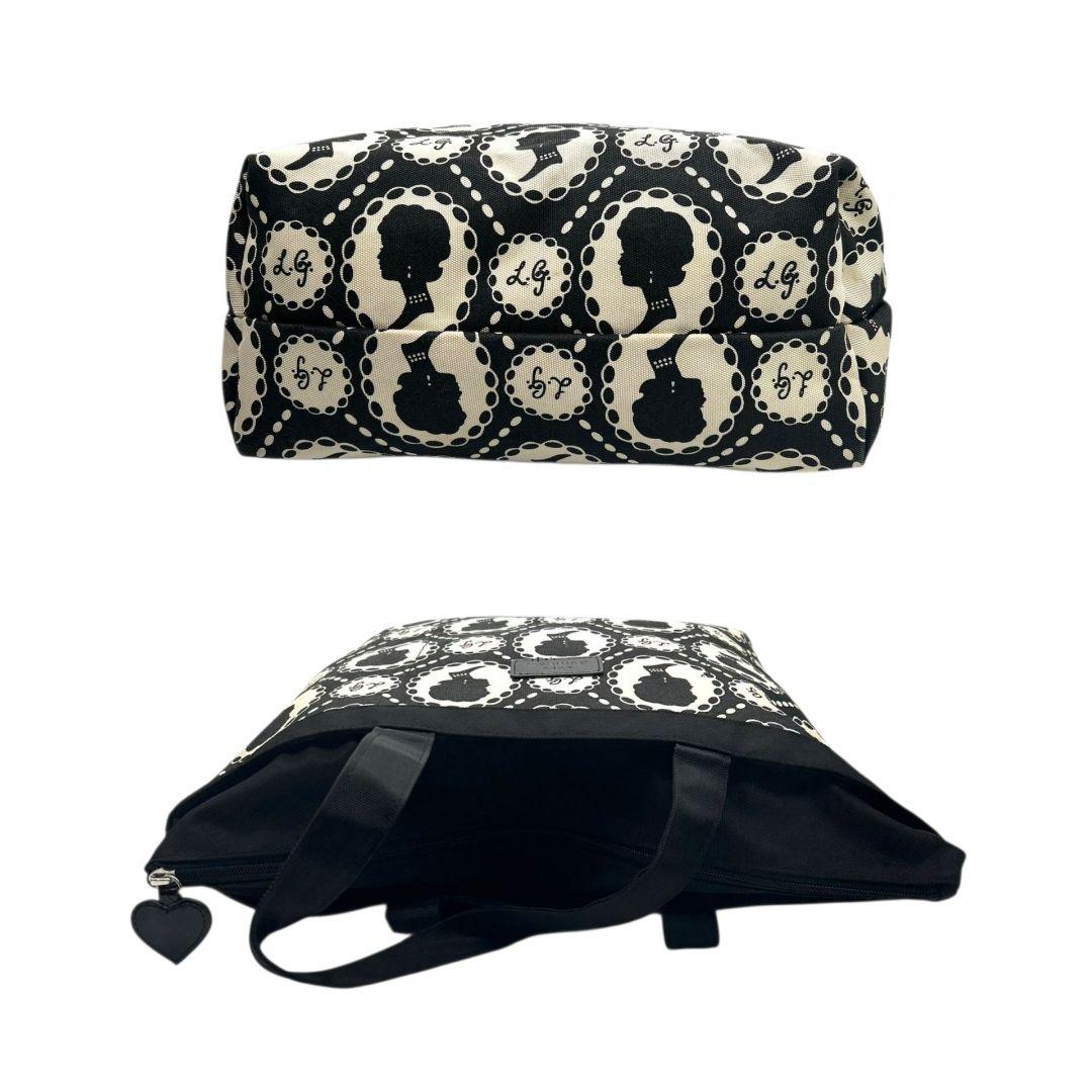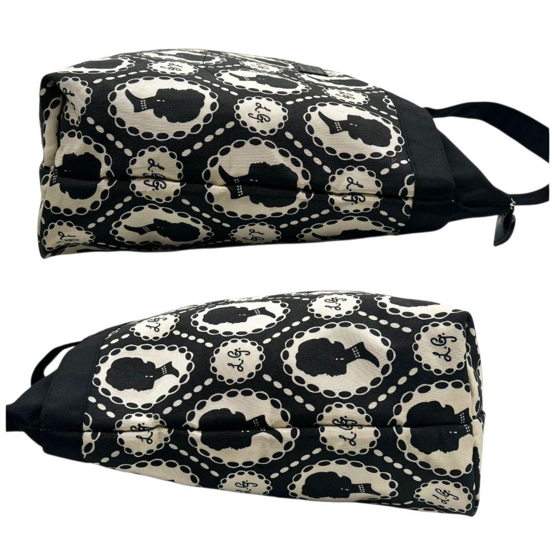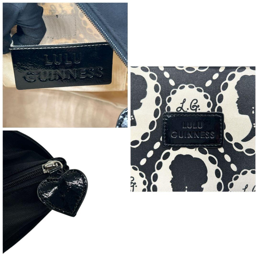 美品 ルルギネス トートバッグ 黒 白 総柄 キャンバス ワンショルダー T7 A4収納 ハンドバッグ ブラック ホワイト 肩掛け可 肩かけ可 ロゴプレート LULU GUINNESS