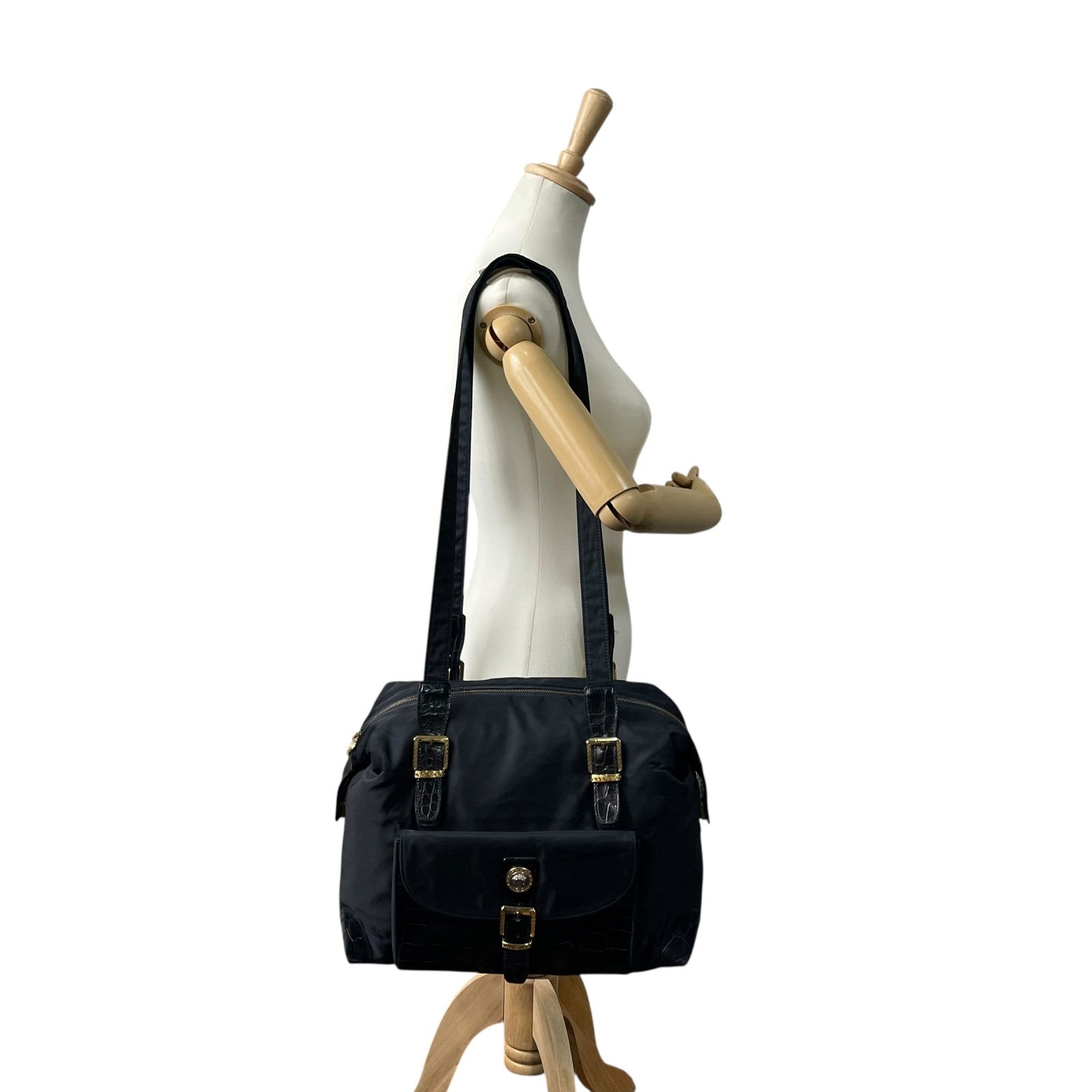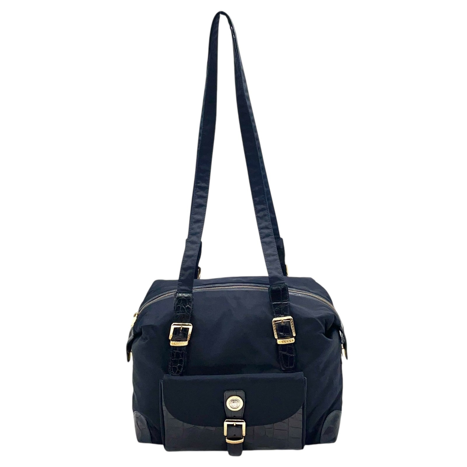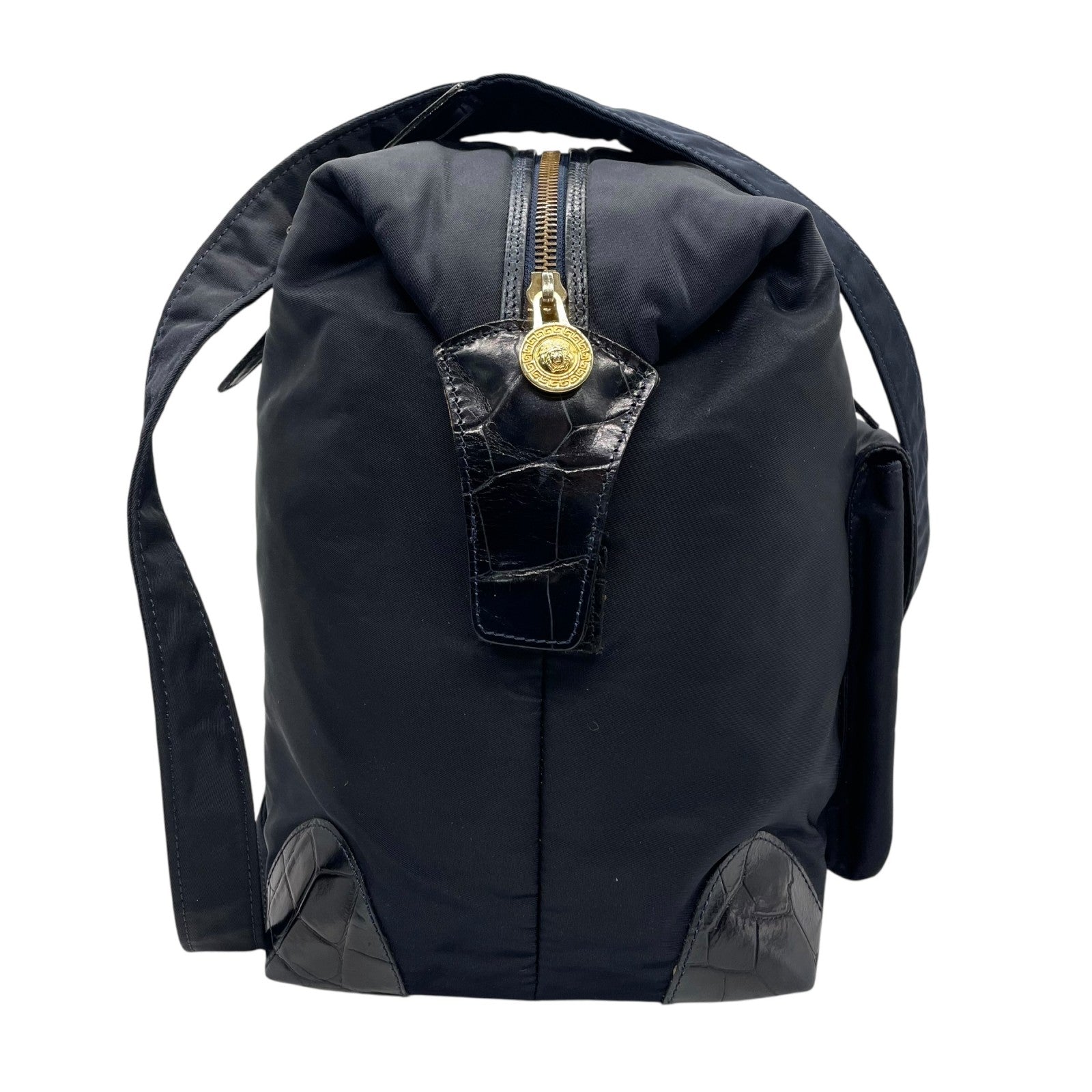 美品 GIANNNI VERSACE ジャンニヴェルサーチェ ショルダーバッグ ボストンバッグ メデューサ ブラック 黒 ナイロン×エンボスレザー ゴールド金具 ユニセックス A4