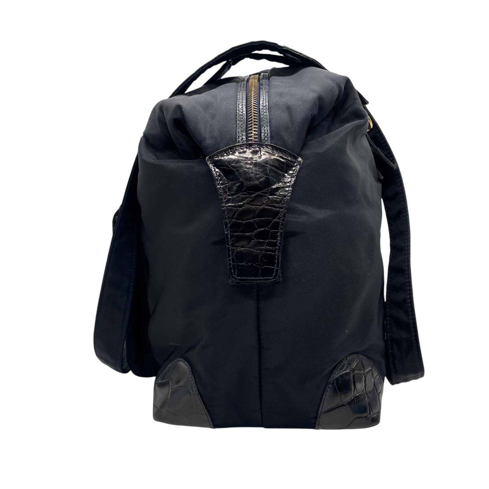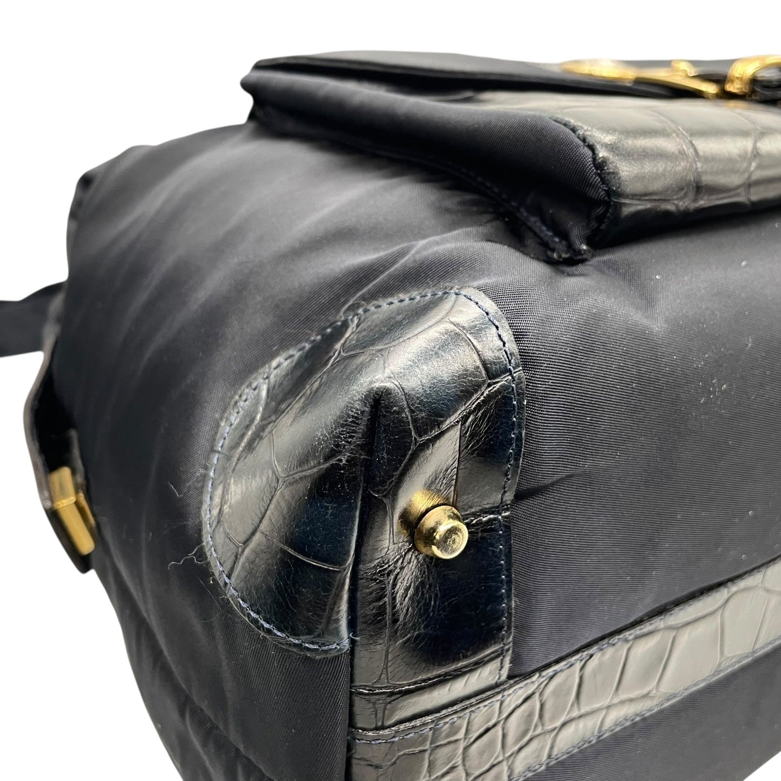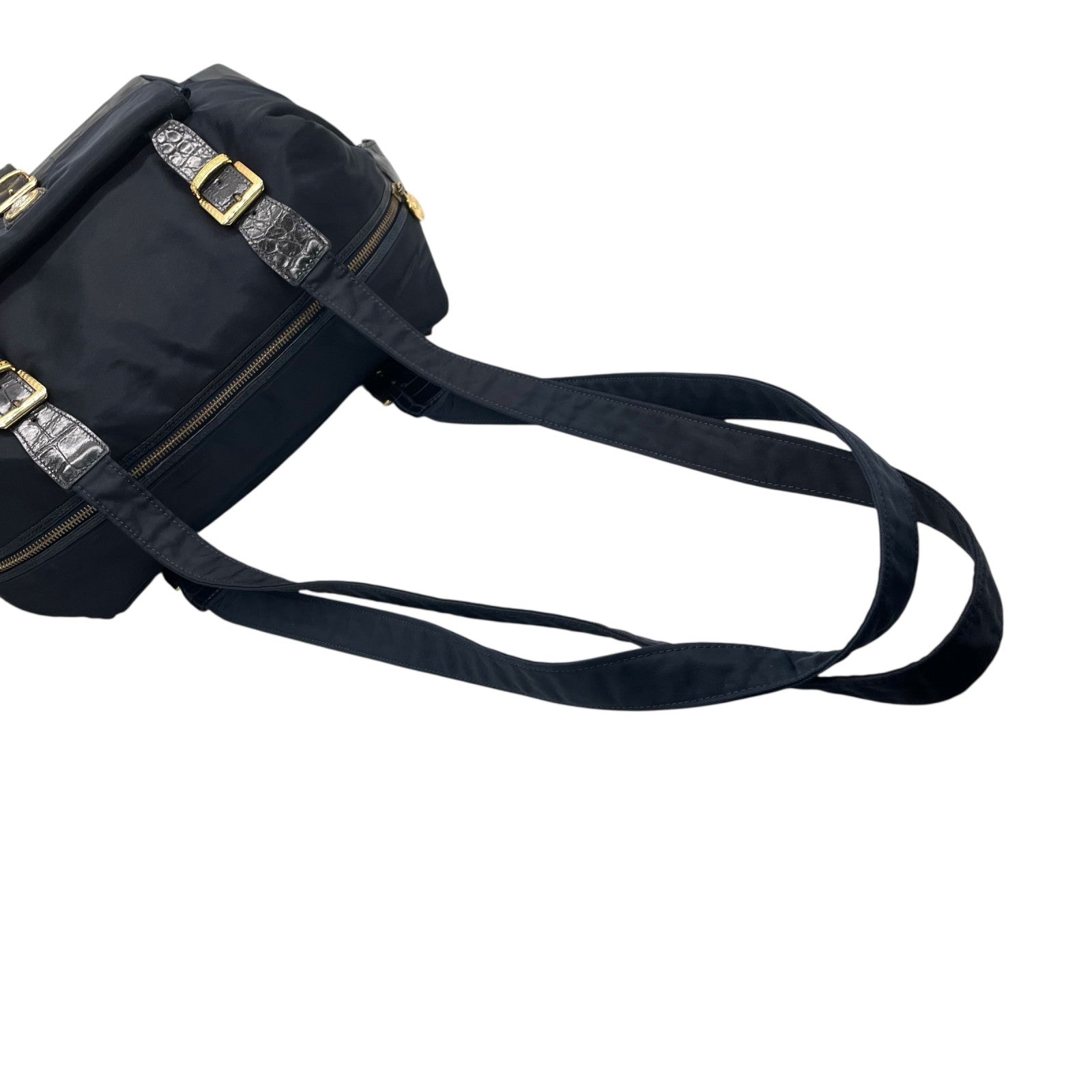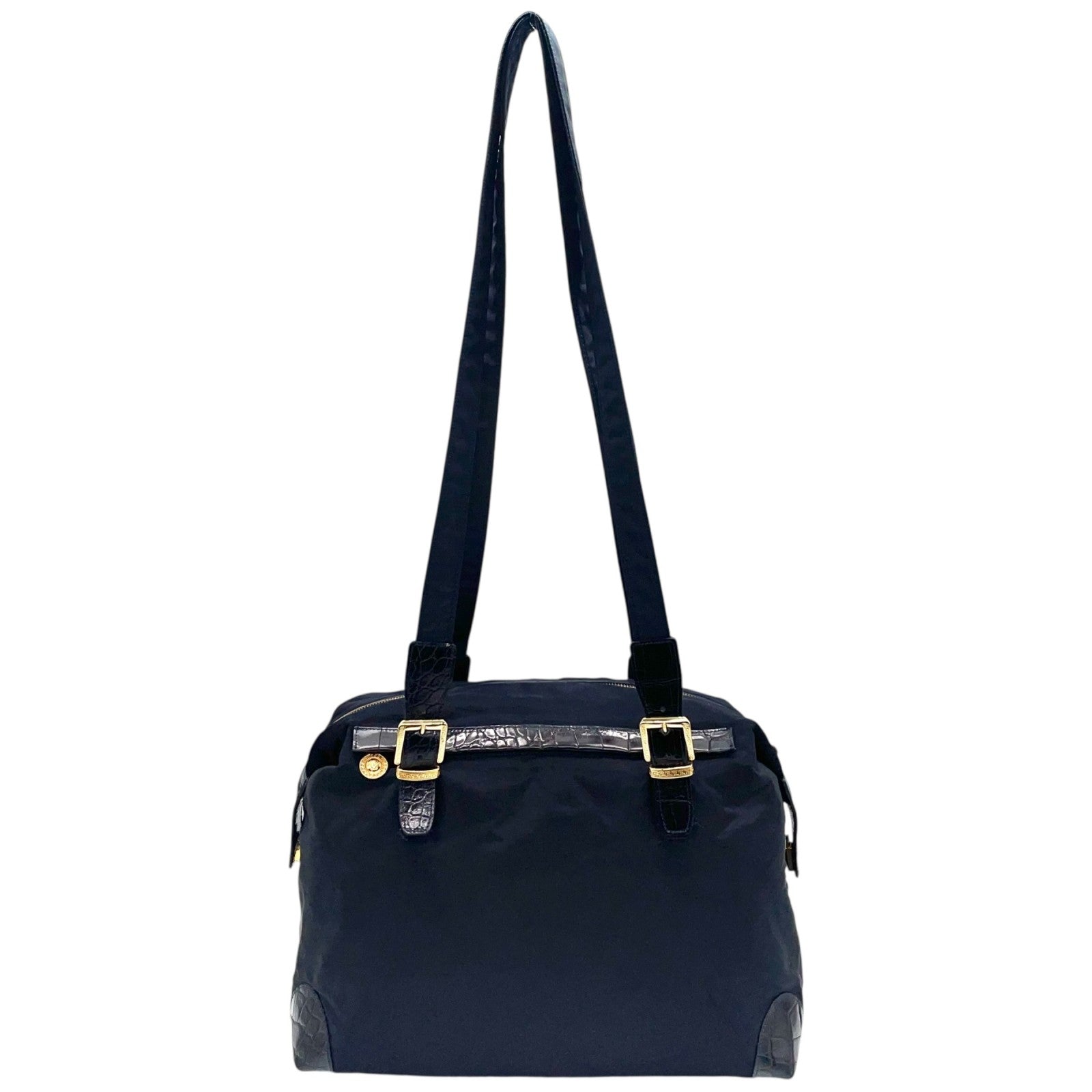 美品 GIANNNI VERSACE ジャンニヴェルサーチェ ショルダーバッグ ボストンバッグ メデューサ ブラック 黒 ナイロン×エンボスレザー ゴールド金具 ユニセックス A4