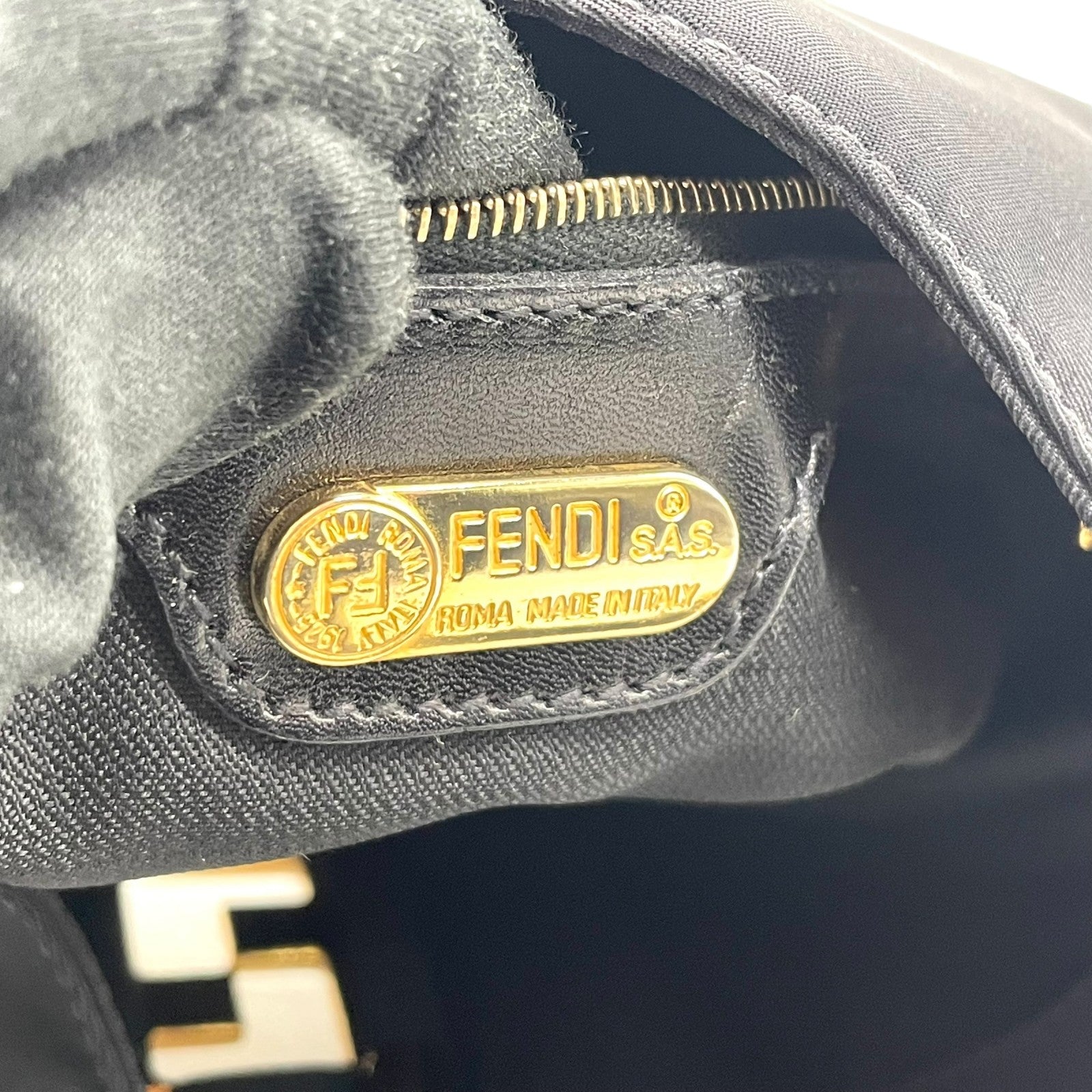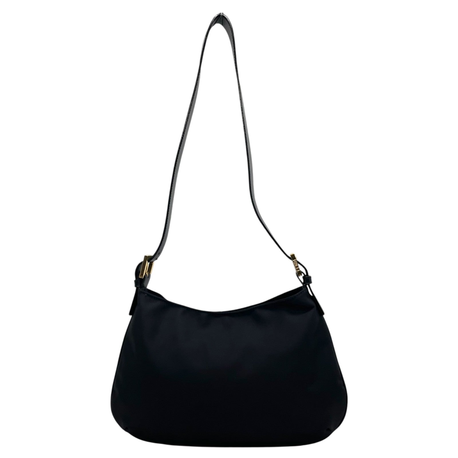 【未使用級】 FENDI フェンディ FFモチーフ ナイロン ショルダーバッグ ブラック ヴィンテージ オールド FF金具 ゴールド金具 ロゴ C3 美品