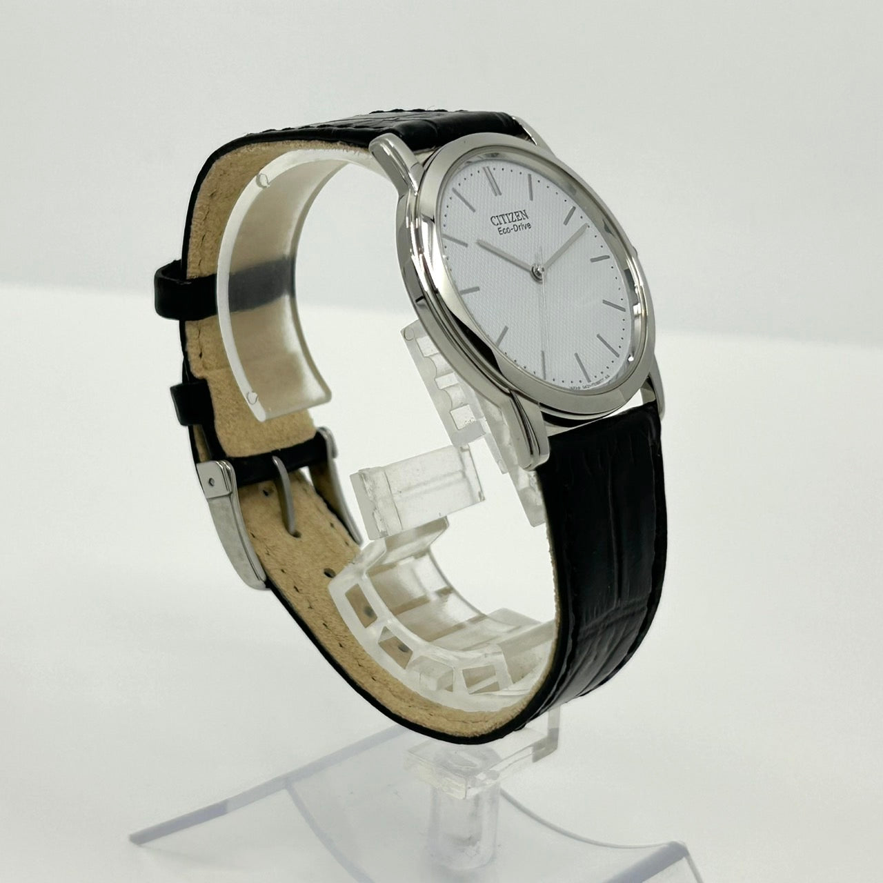 【稼働品/極美品/箱付】CITIZEN シチズン STILETTO G431-T011683 エコドライブ メンズ 腕時計 ソーラー 薄型 シルバー 白文字盤 ブラックレザーベルト ドレスウォッチ エレガント クラシック ビジネス クリーニング済 G